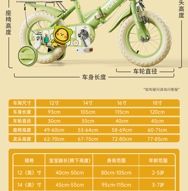 FOREVER (FOREVER) children's bicycle baby bicycle children's folding bicycle 3-8 years old stroller 14 inches