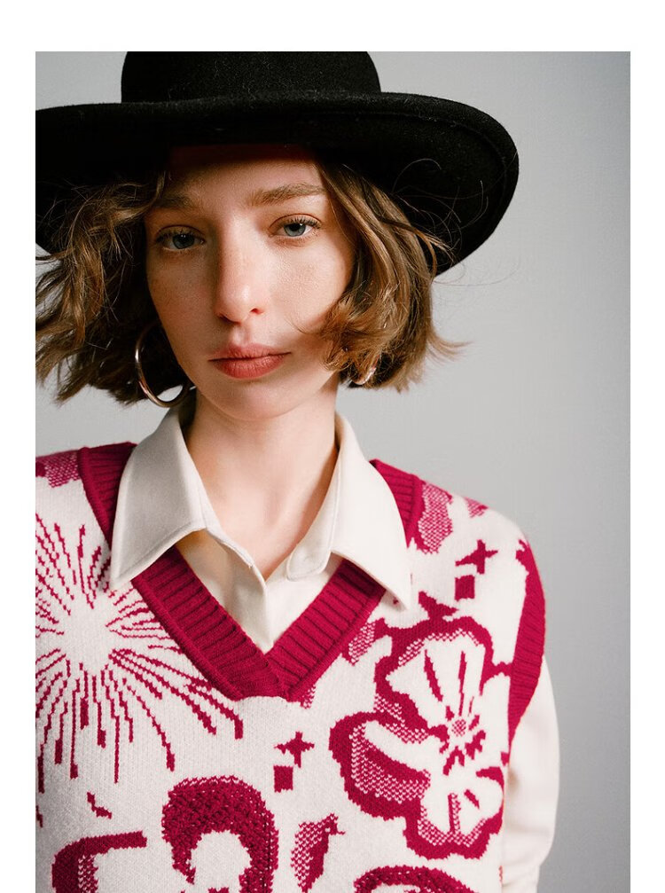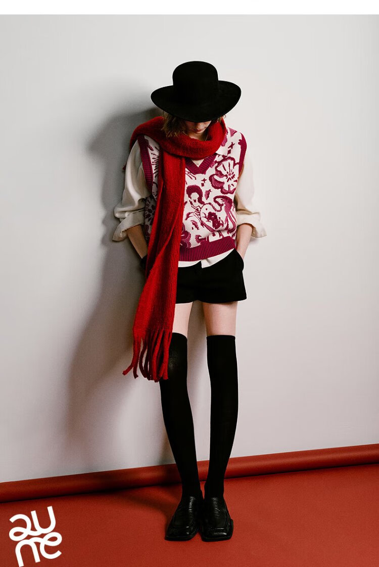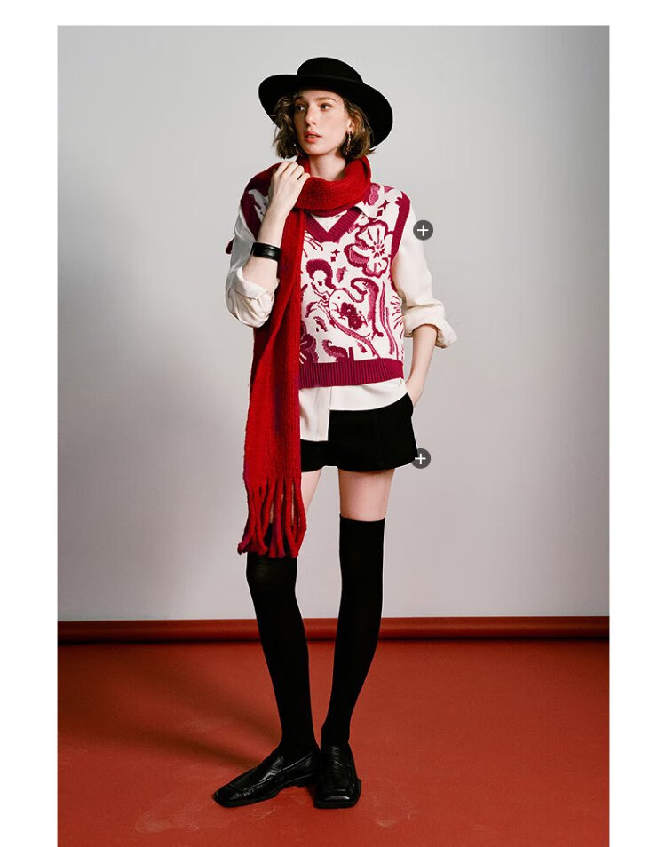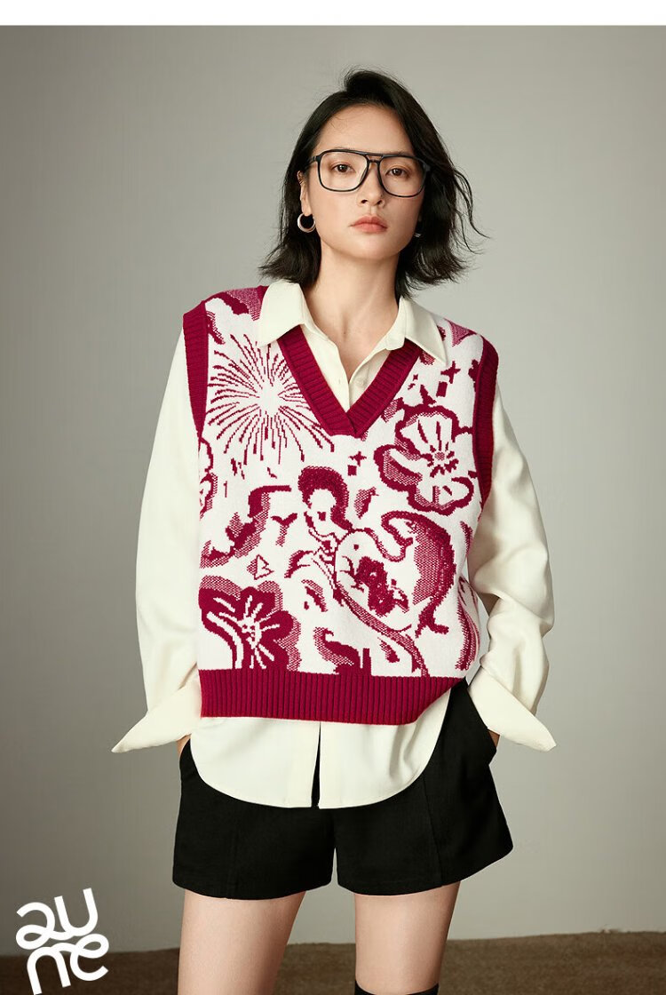 Chuyu Mengzhu Daji co-branded New Year's knitted vest for women 2025 Winter Art Year of the Horse Totem Top New Year Red M