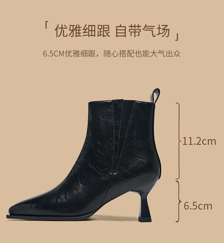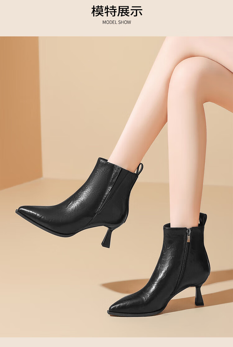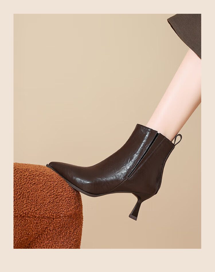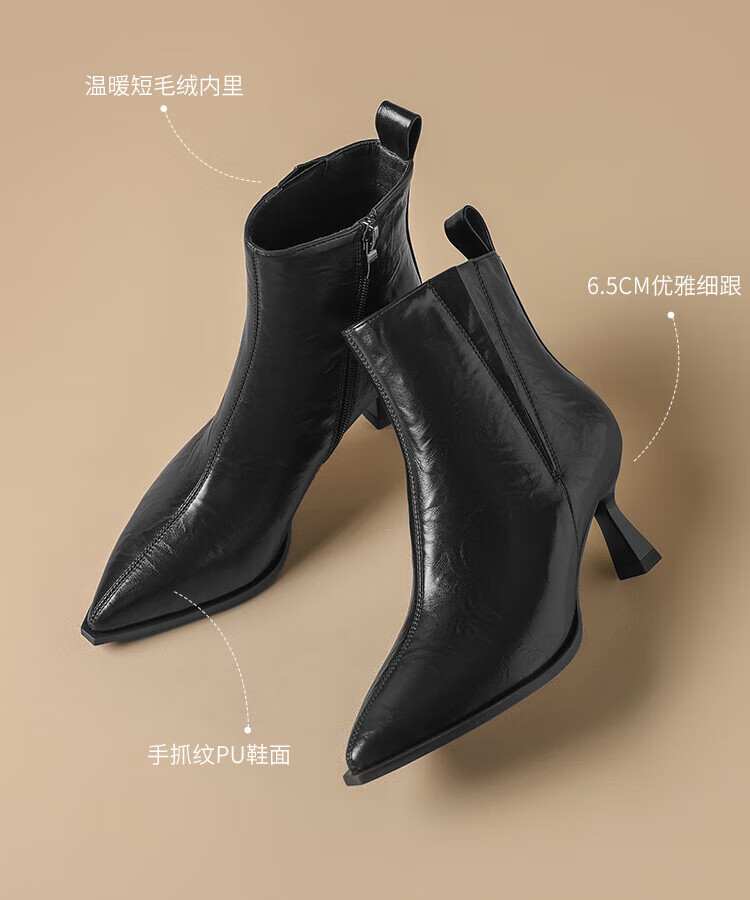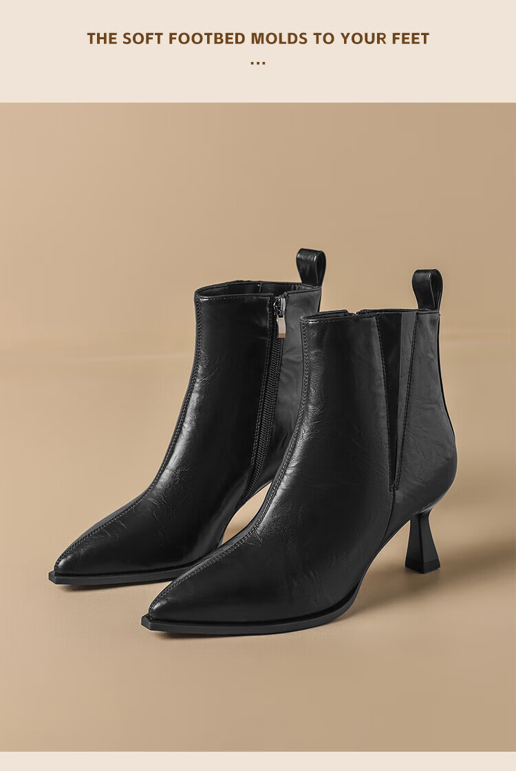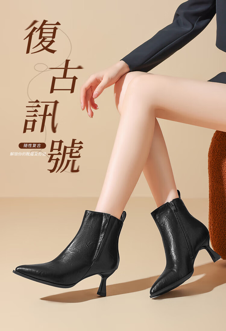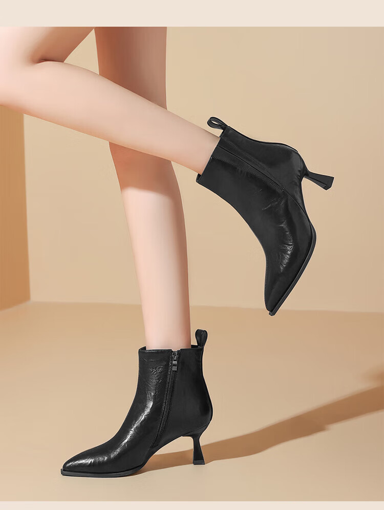 ZHR stiletto short boots winter women's shoes retro temperament high heels increased pointed toe ankle boots BQ150A black 36