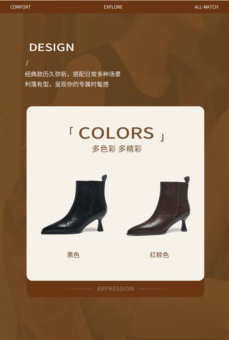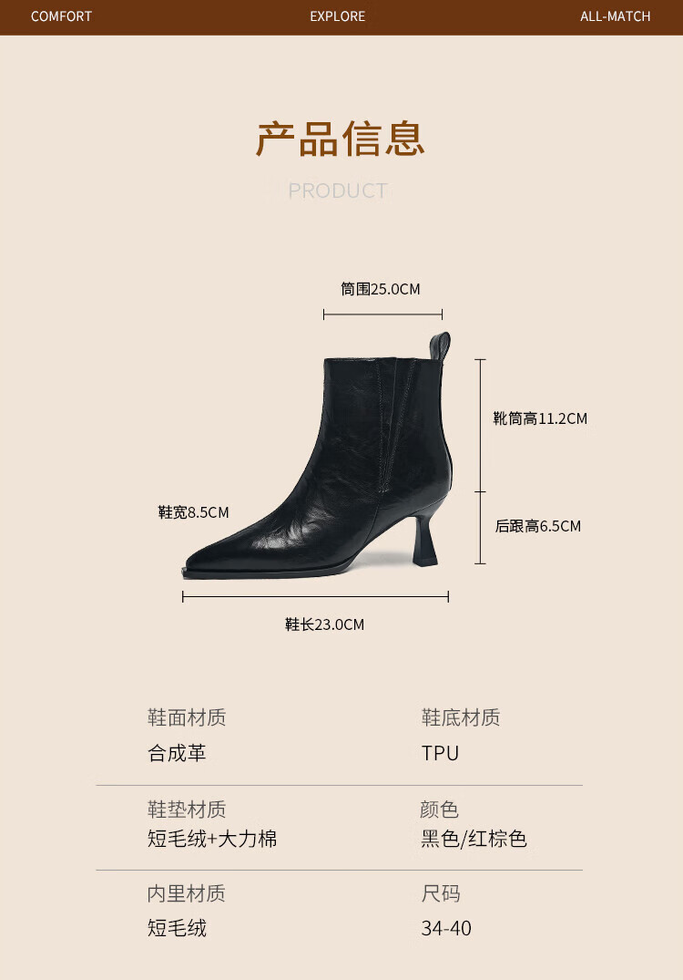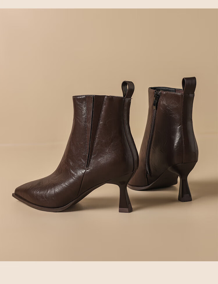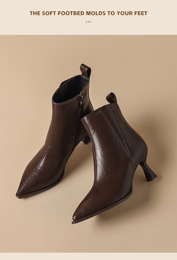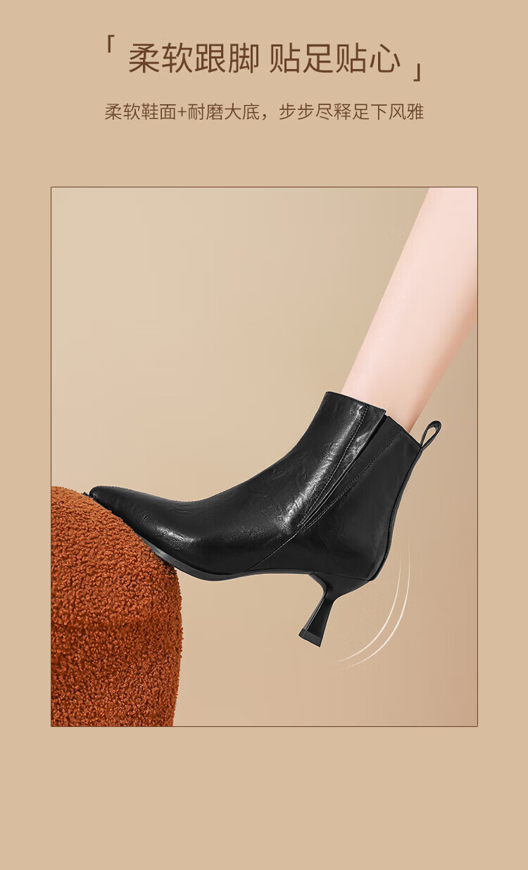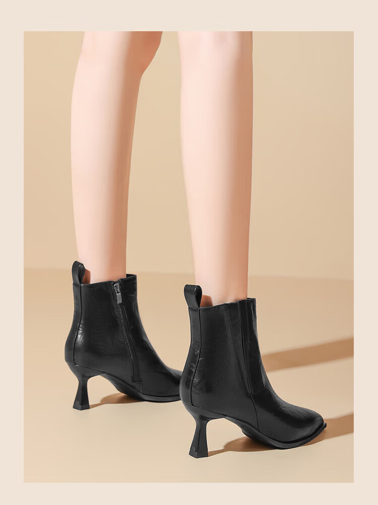 ZHR stiletto short boots winter women's shoes retro temperament high heels increased pointed toe ankle boots BQ150A black 36