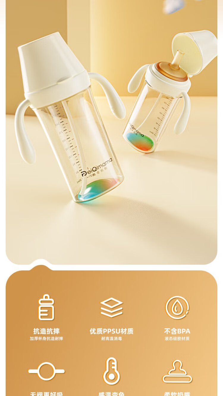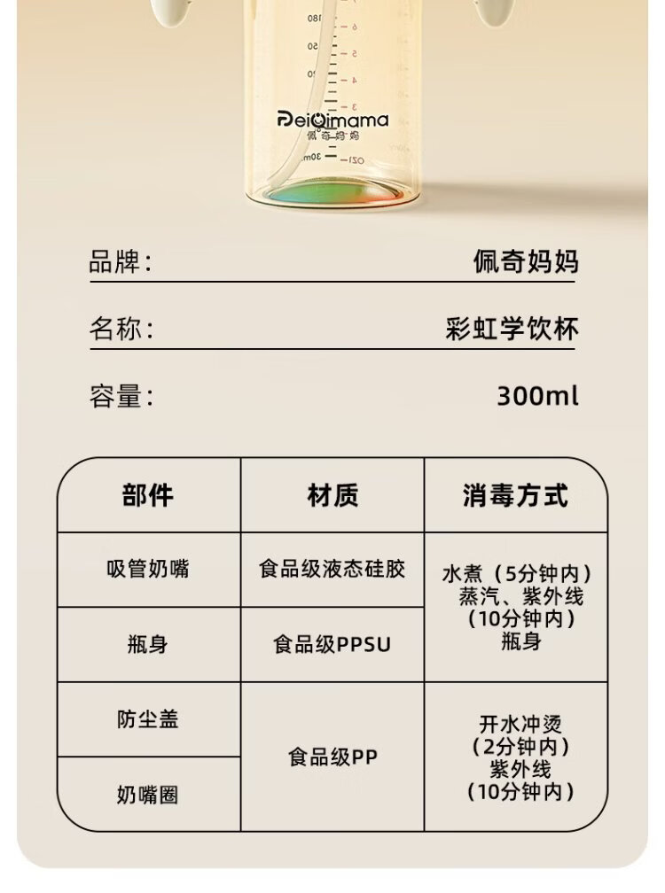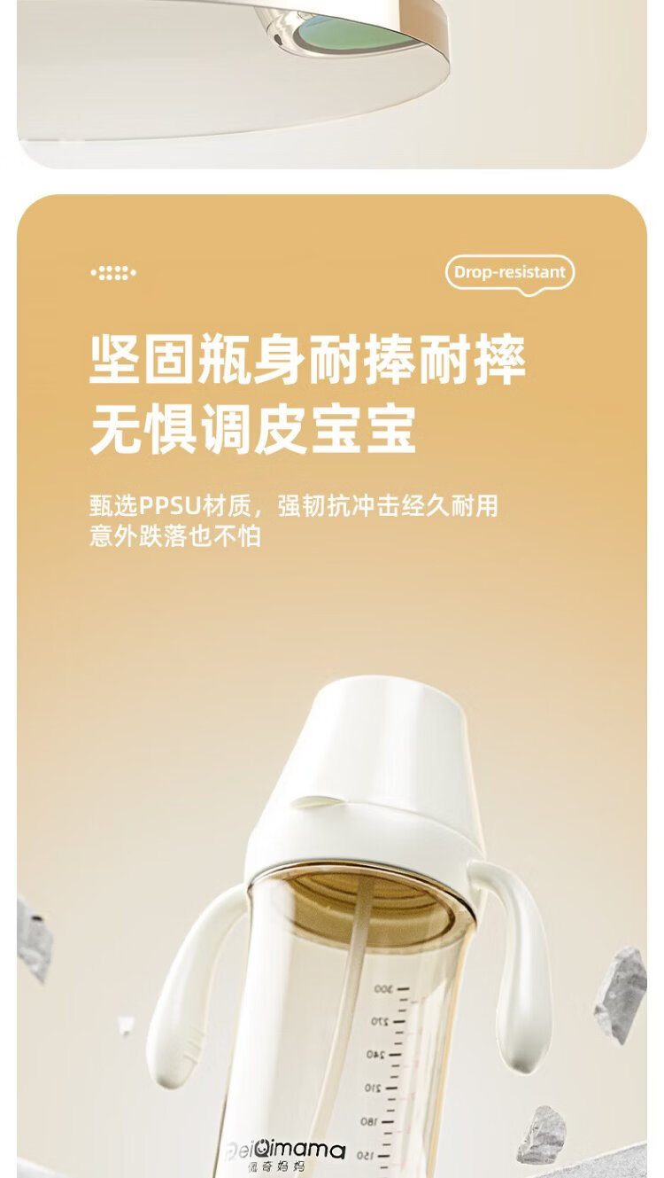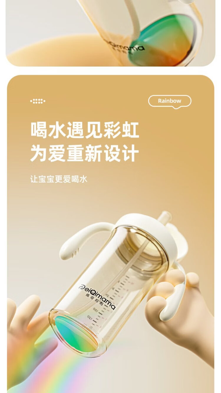 PEIQIMAMA direct-drinking straw bottle for babies in July 1-2-3 years old and above drinking water learning cup PPSU children's milk cup 300ml