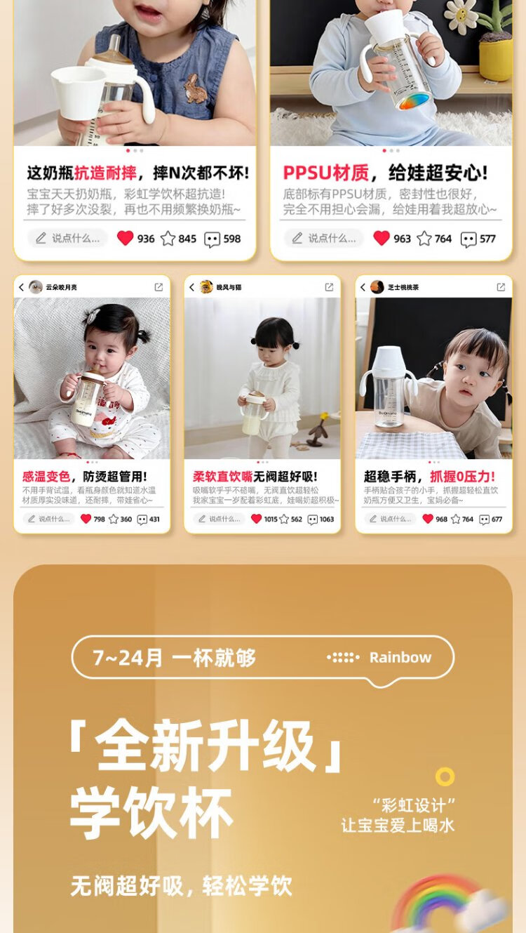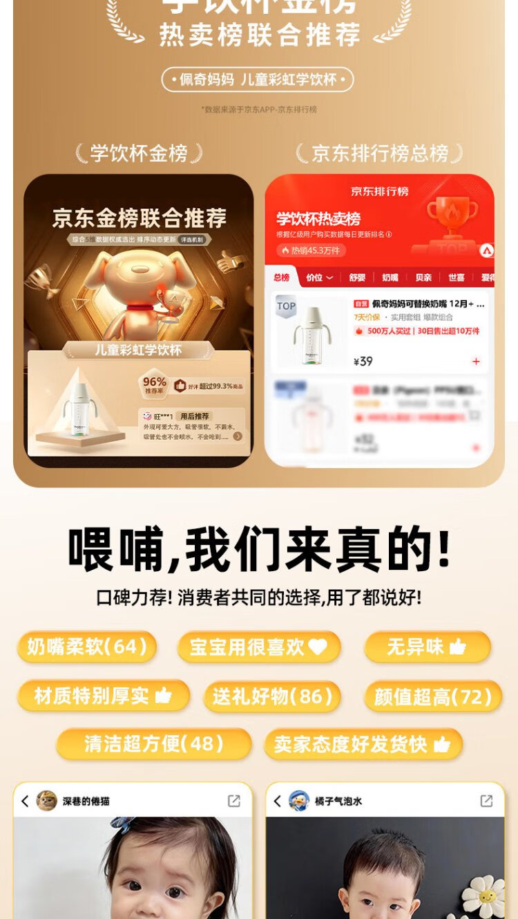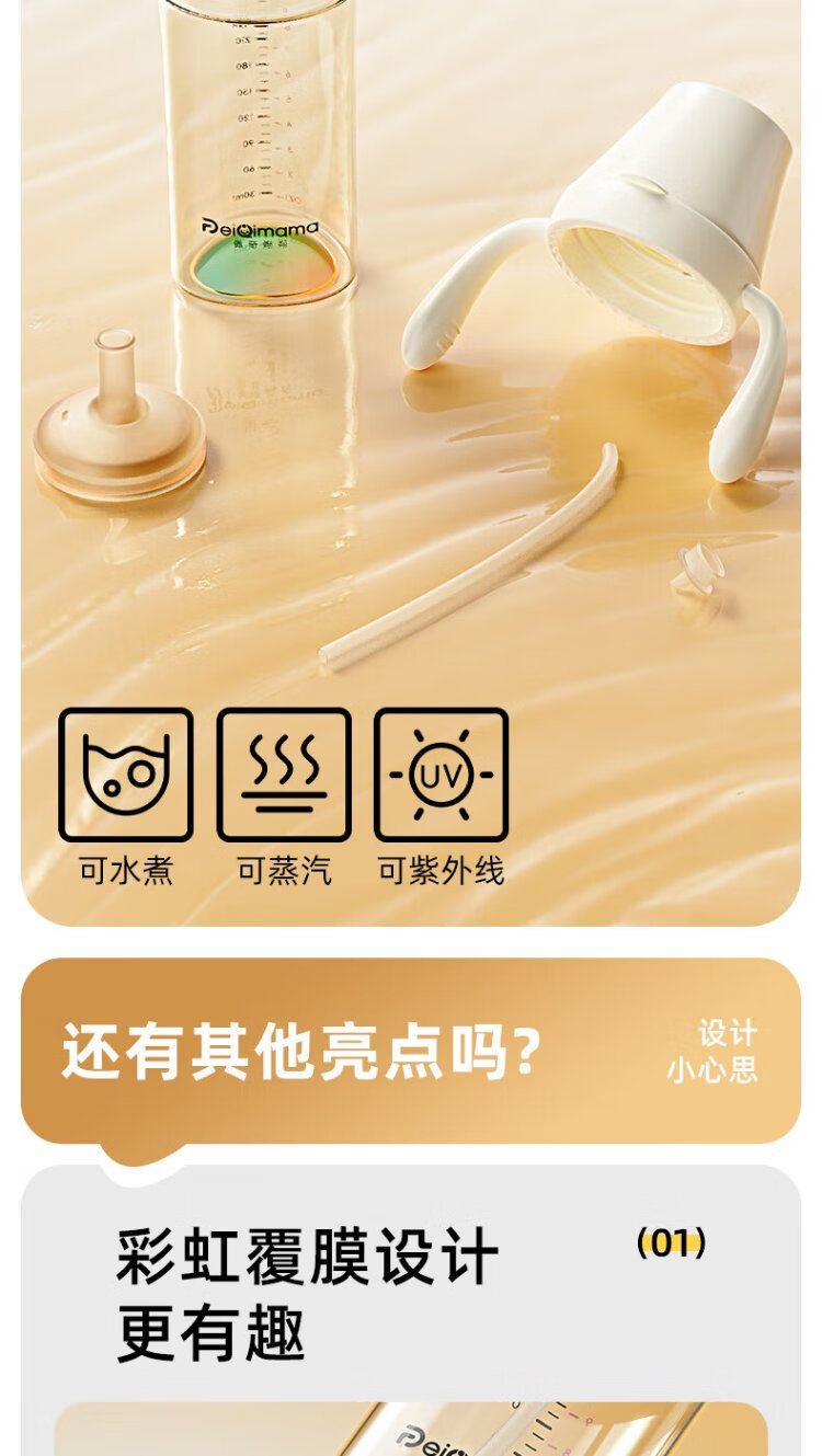 PEIQIMAMA direct-drinking straw bottle for babies in July 1-2-3 years old and above drinking water learning cup PPSU children's milk cup 300ml