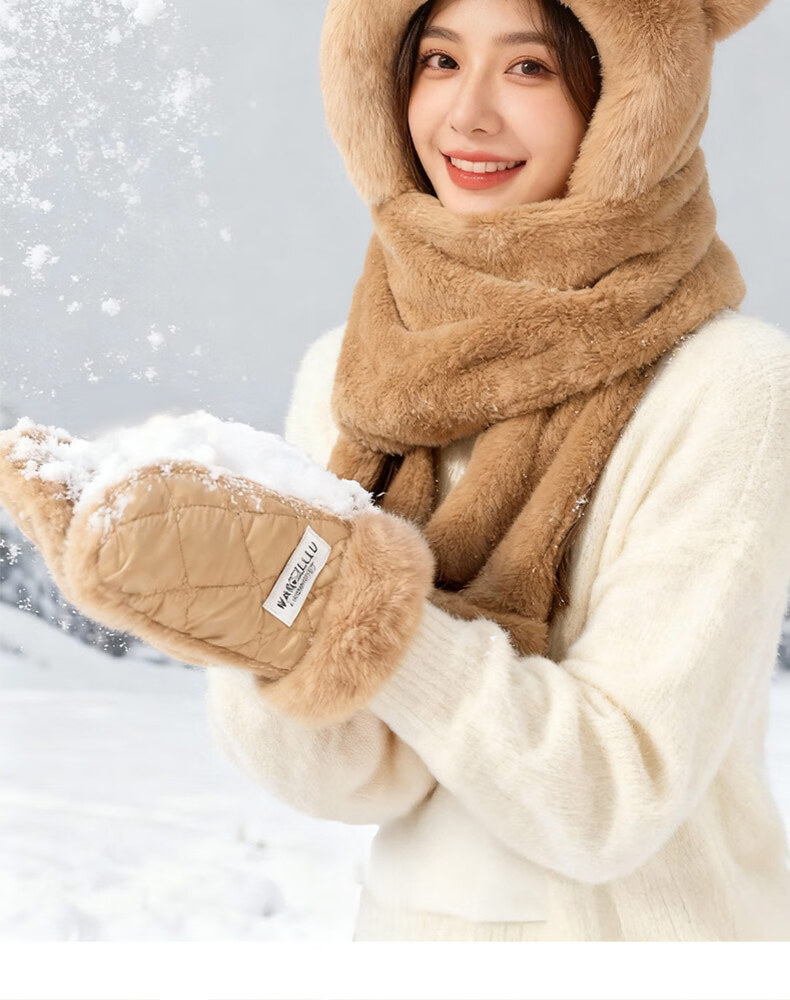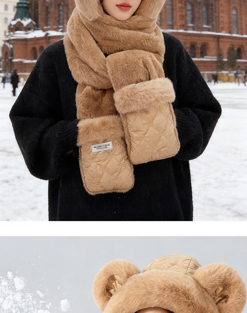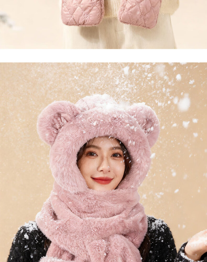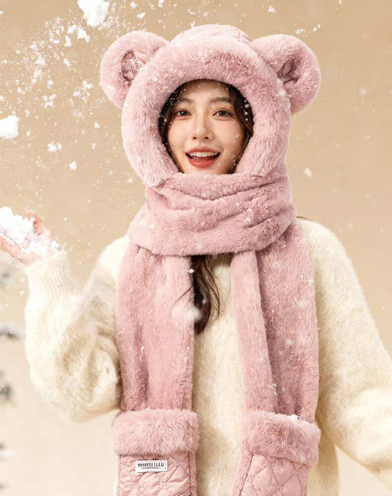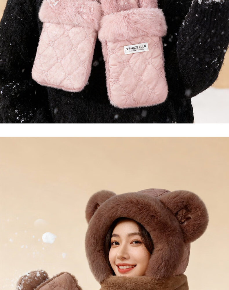 Style Mansion Bear Hat Women's Cute Korean Version Versatile Winter Scarf Gloves One-piece Three-piece Set Winter Warm Scarf