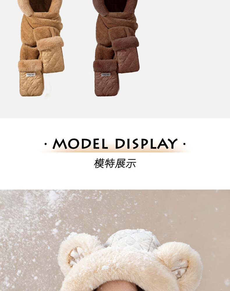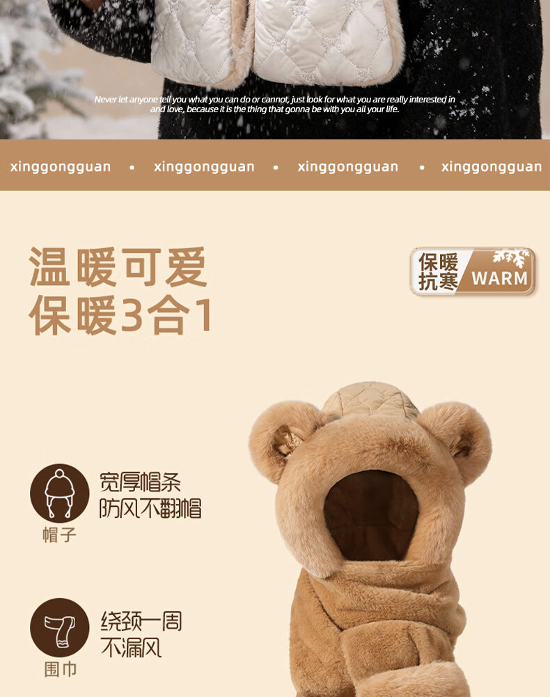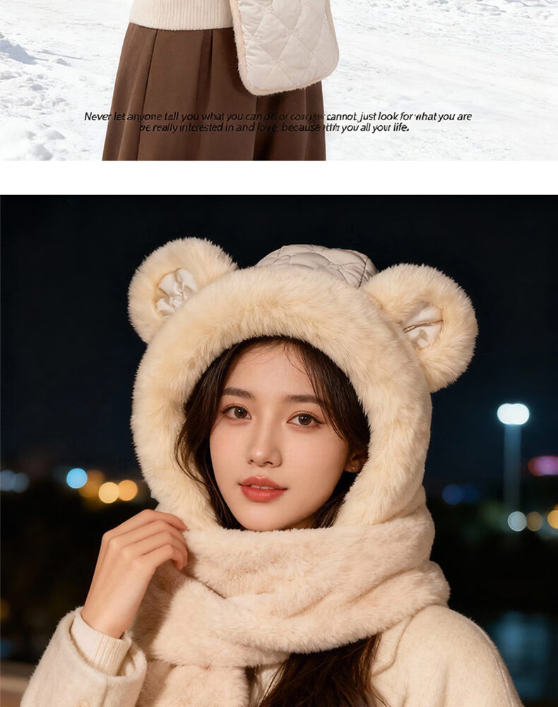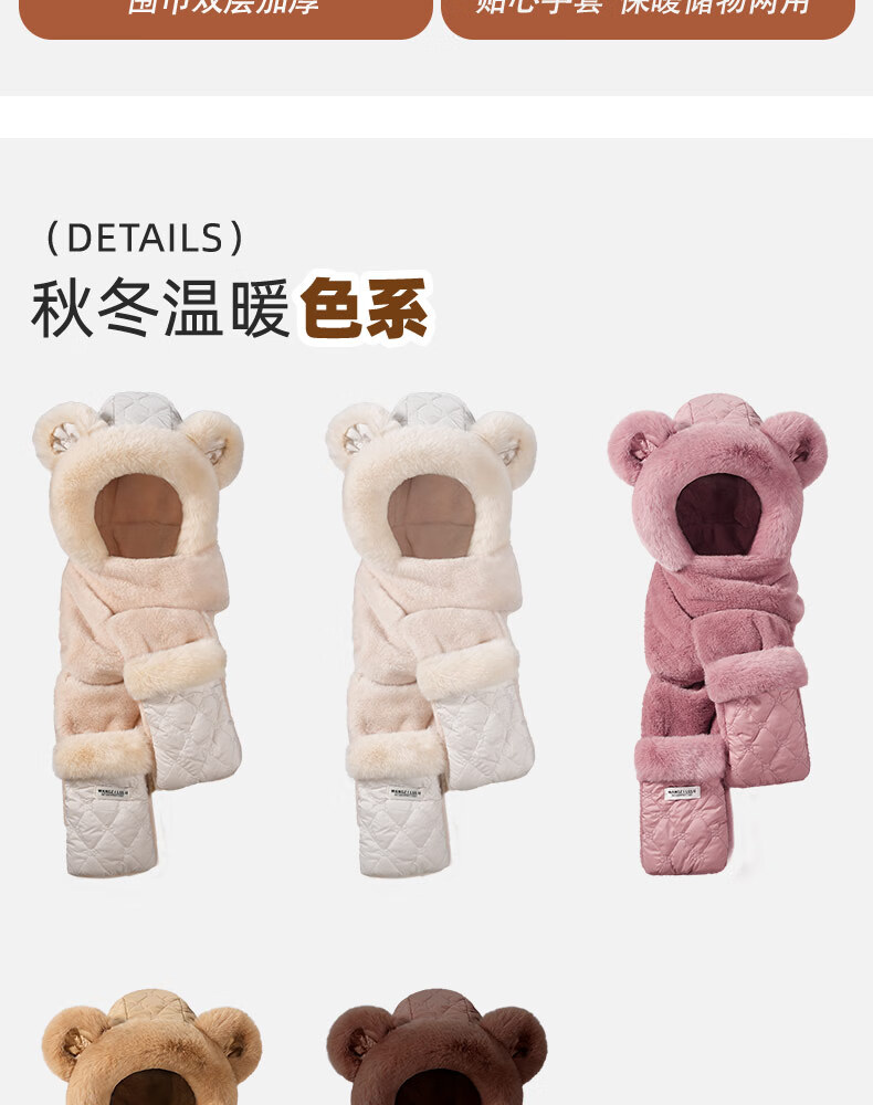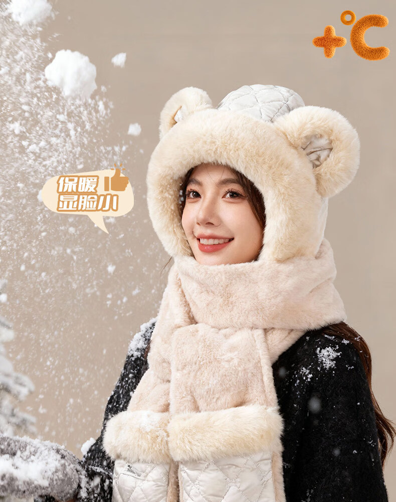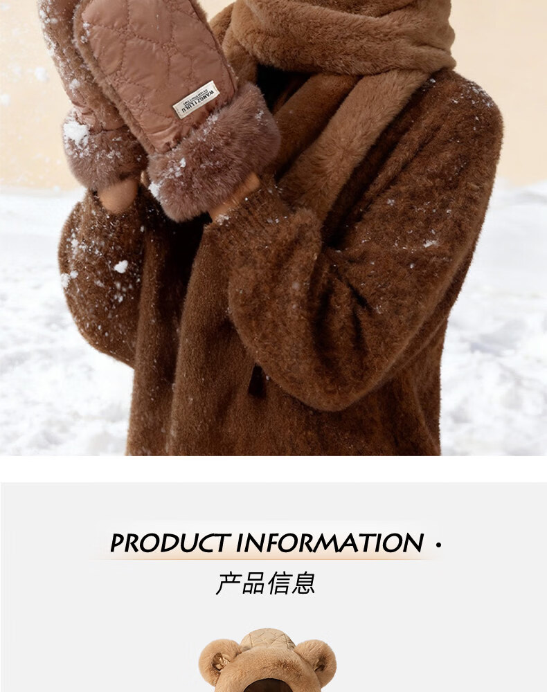 Style Mansion Bear Hat Women's Cute Korean Version Versatile Winter Scarf Gloves One-piece Three-piece Set Winter Warm Scarf