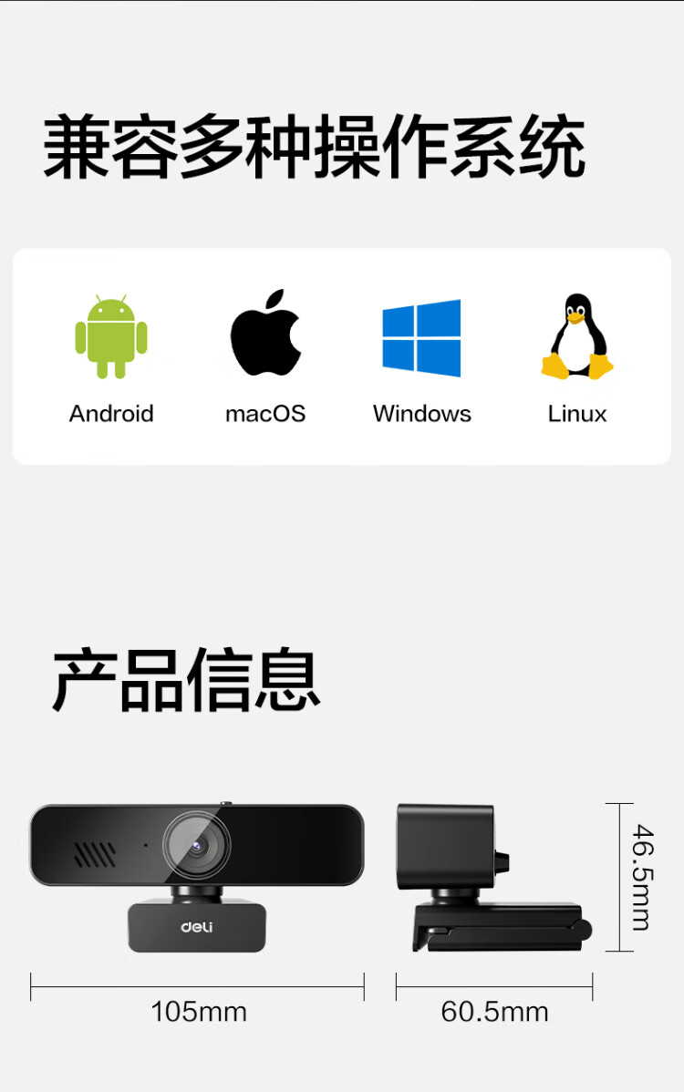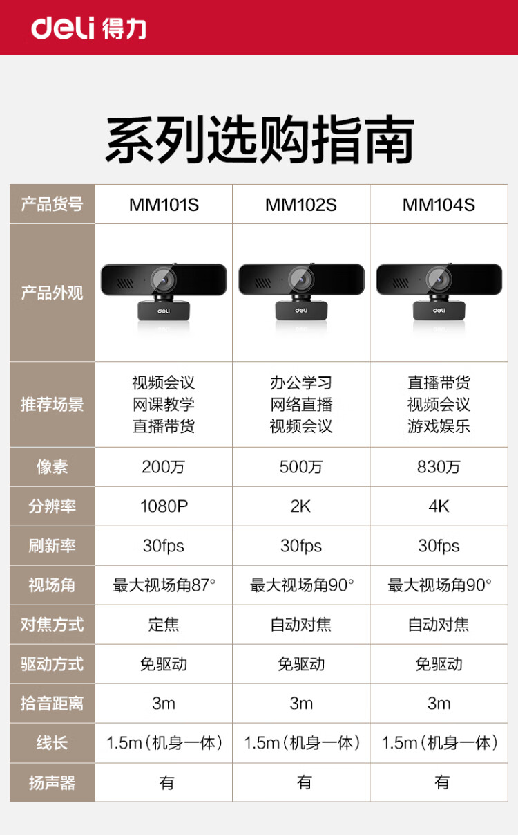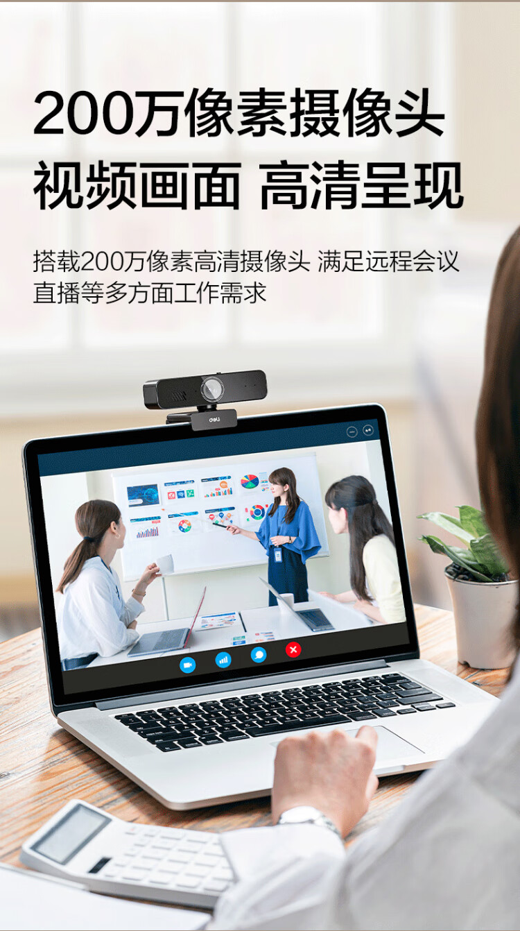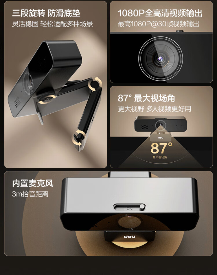 Deli Computerkamera mit Mikrofonlautsprecher 1080P HD Notebook Desktop USB externe Kamera Videoanruf Büro Online-Kurs Live-Konferenz MM101S