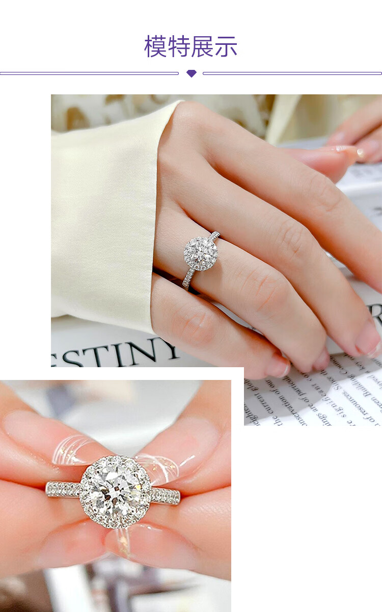 Dianzhijia cultivated diamond platinum 50-point diamond ring round inlaid light luxury ring as a wedding gift for my wife NGTC certificate