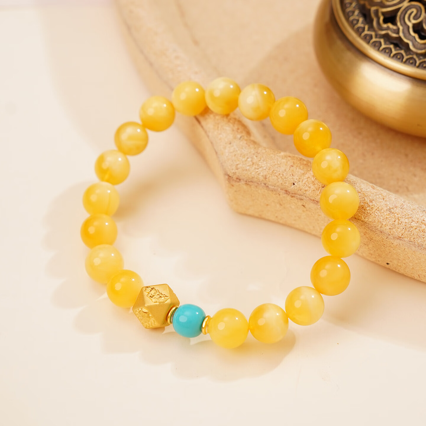 Potala Palace's unique pure gold beeswax bracelet, Bai Yi's father's eight-edge bead turquoise bracelet, men's and women's birthday gift for the year of birth