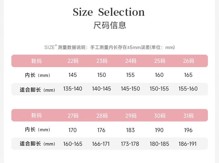 China (cm) 36 - 37 38 - 39 40 - 42 43 - 44 45 - 47