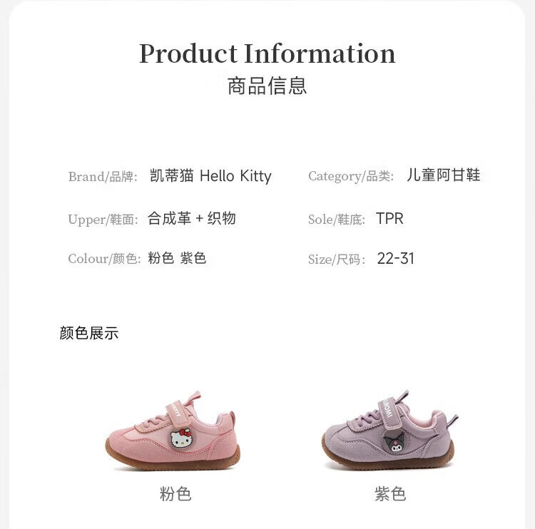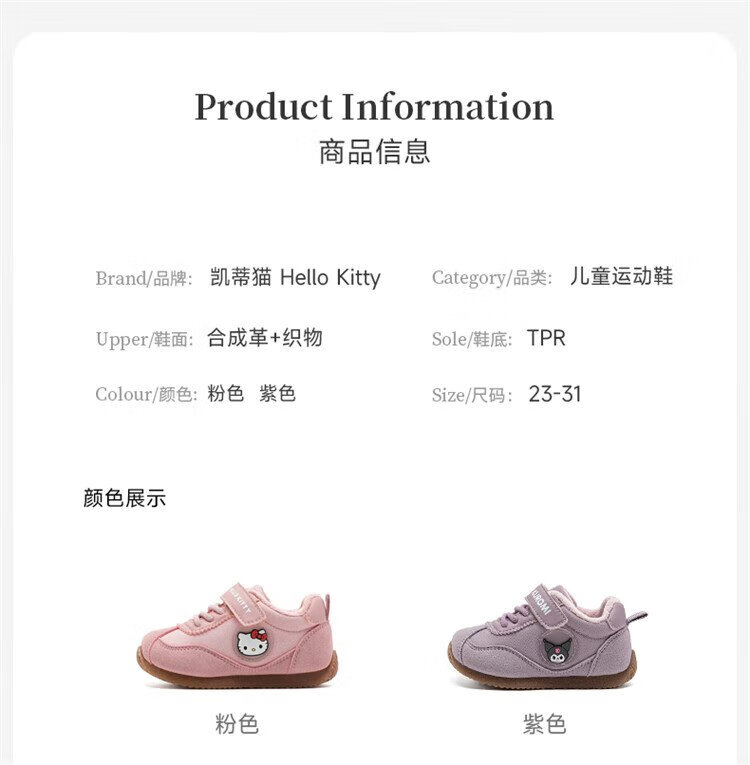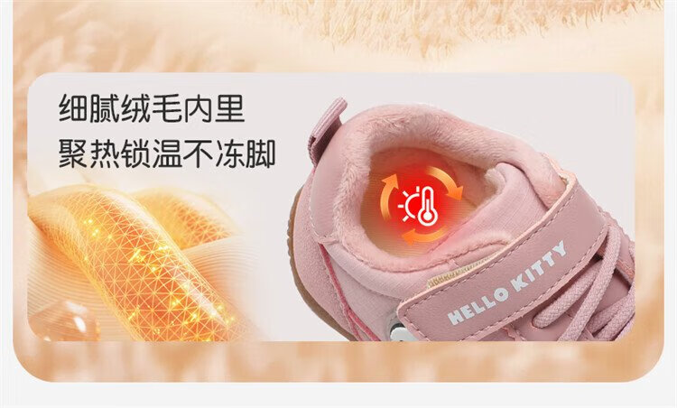 Hello Kitty children's shoes girls toddler shoes children's baby winter short velvet warm and comfortable two-cotton sneakers 6103 pink 26