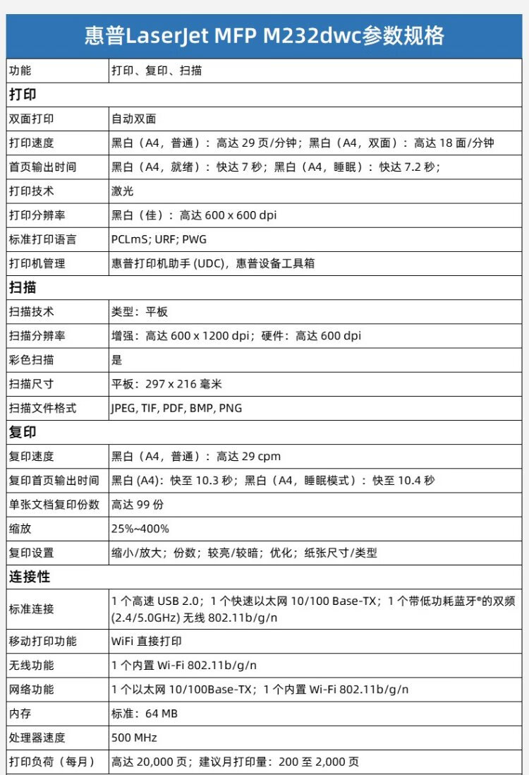 HP (HP) 232dwc/233sdw wireless laser printer automatic double-sided printing, copying and scanning all-in-one multi-functional home office learning mobile phone with 1188w double-sided model 232dwc (automatic double-sided printing + scanning and copying + mobile phone wireless)