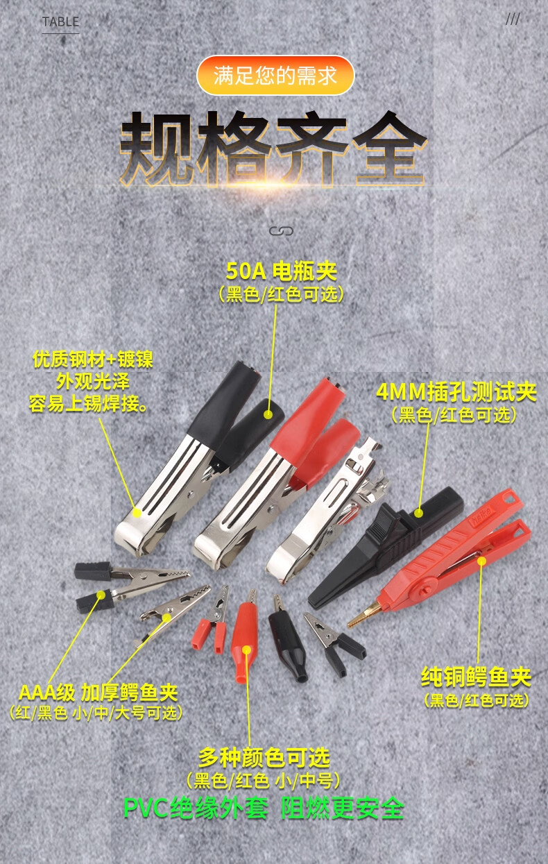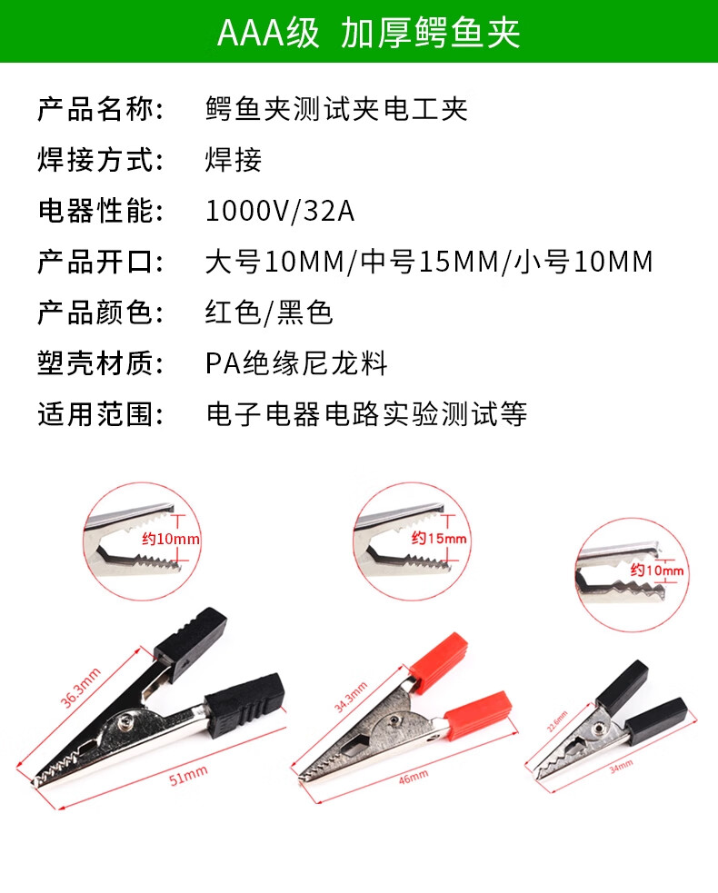 ZAVE AAA grade large, medium and small thickened crocodile clips black large size AAA grade (10 pieces)