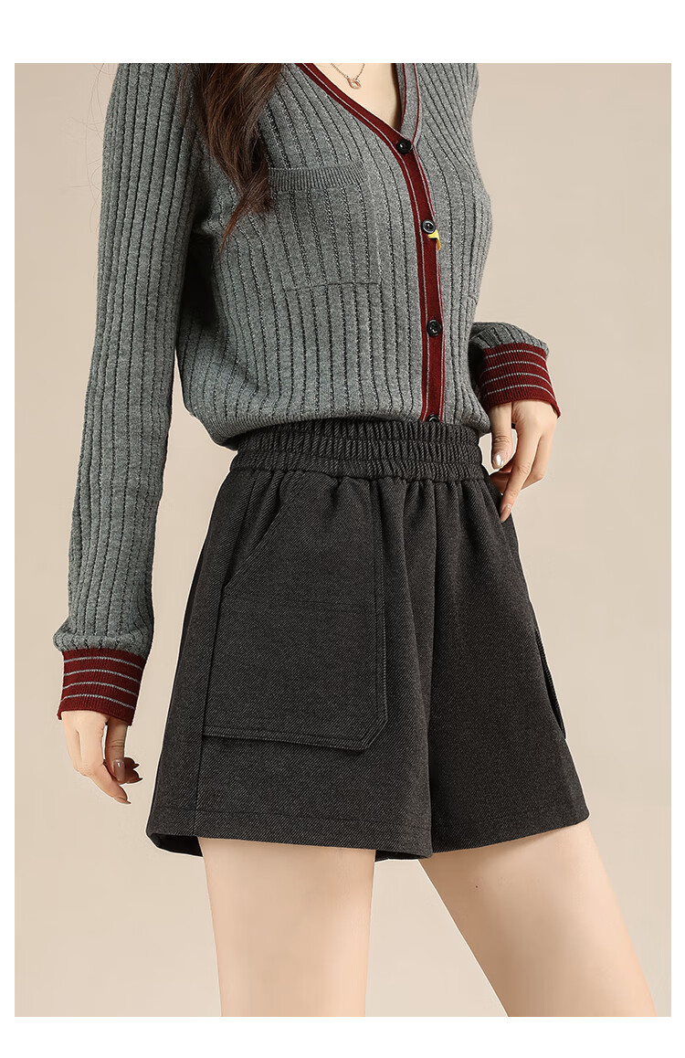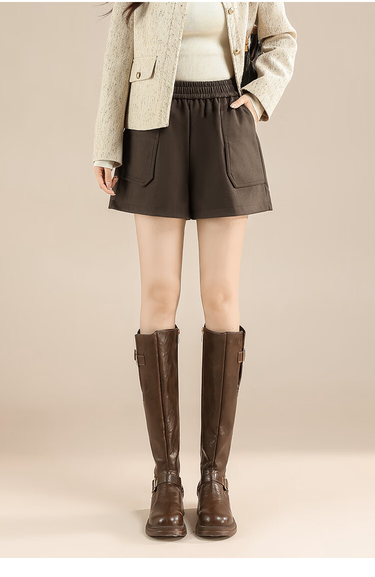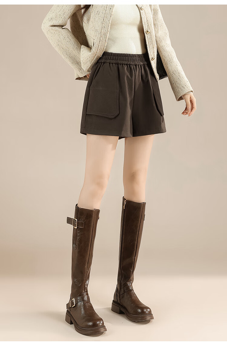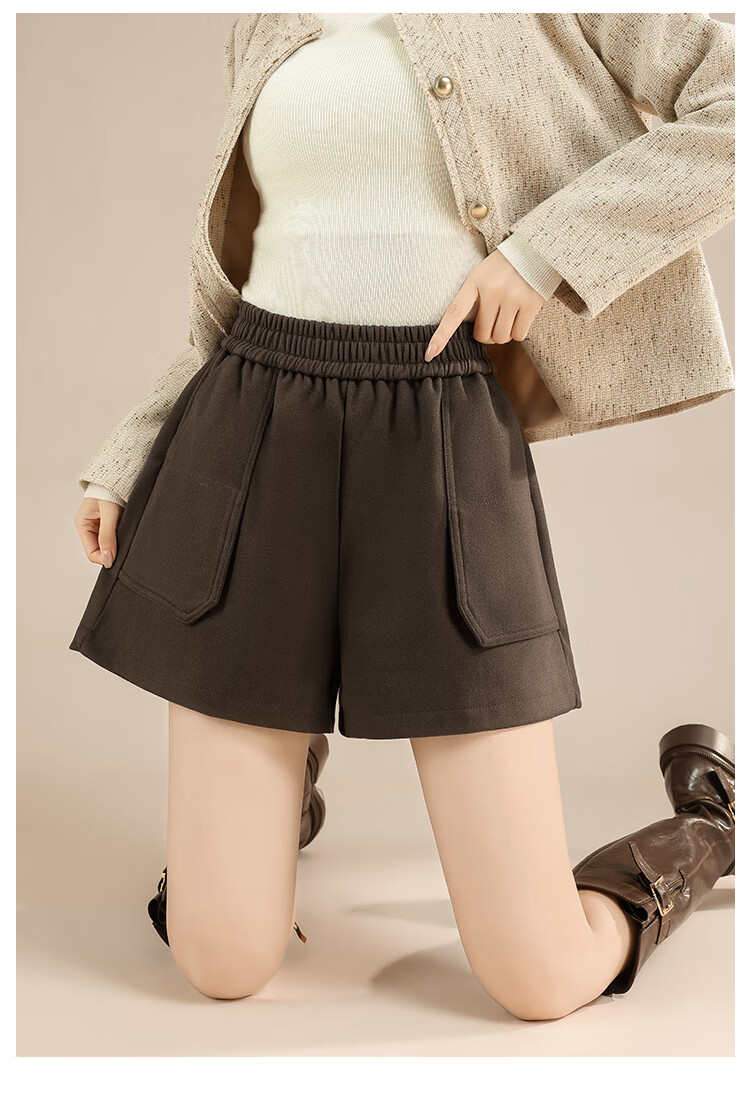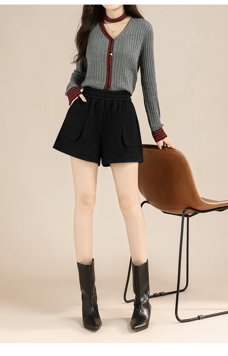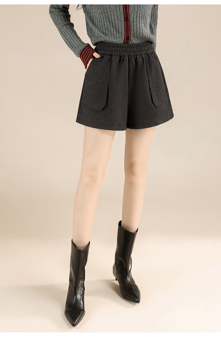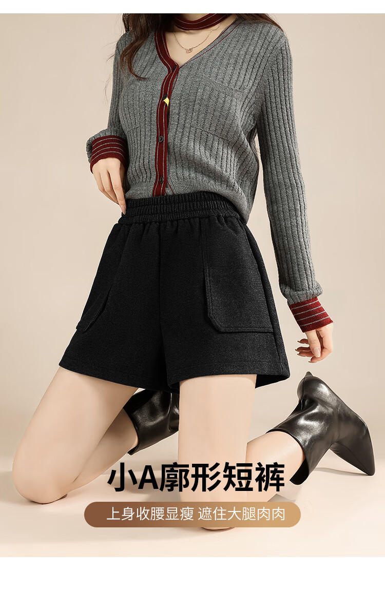 TERRE BLEUE High Waisted Woolen Shorts Retro Style 2025 Autumn and Winter New Women's Elastic Waist Suit Shorts Black M
