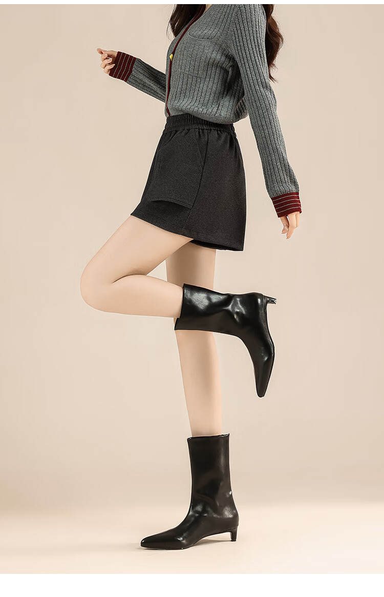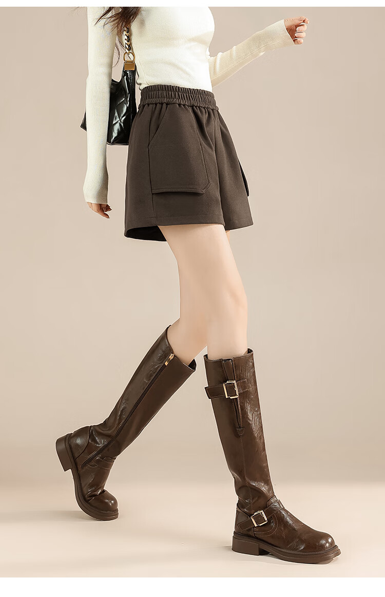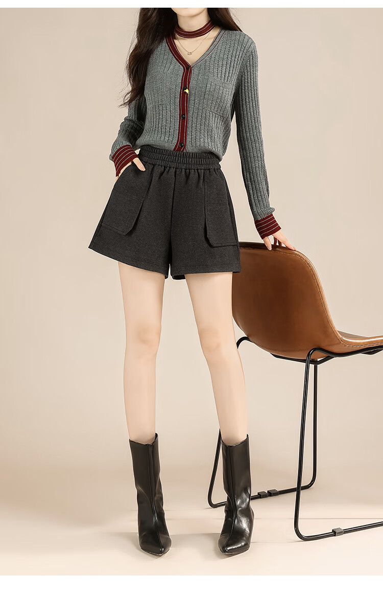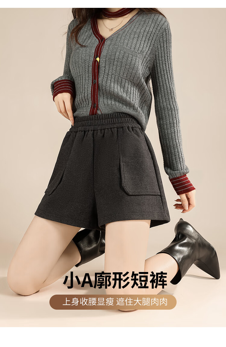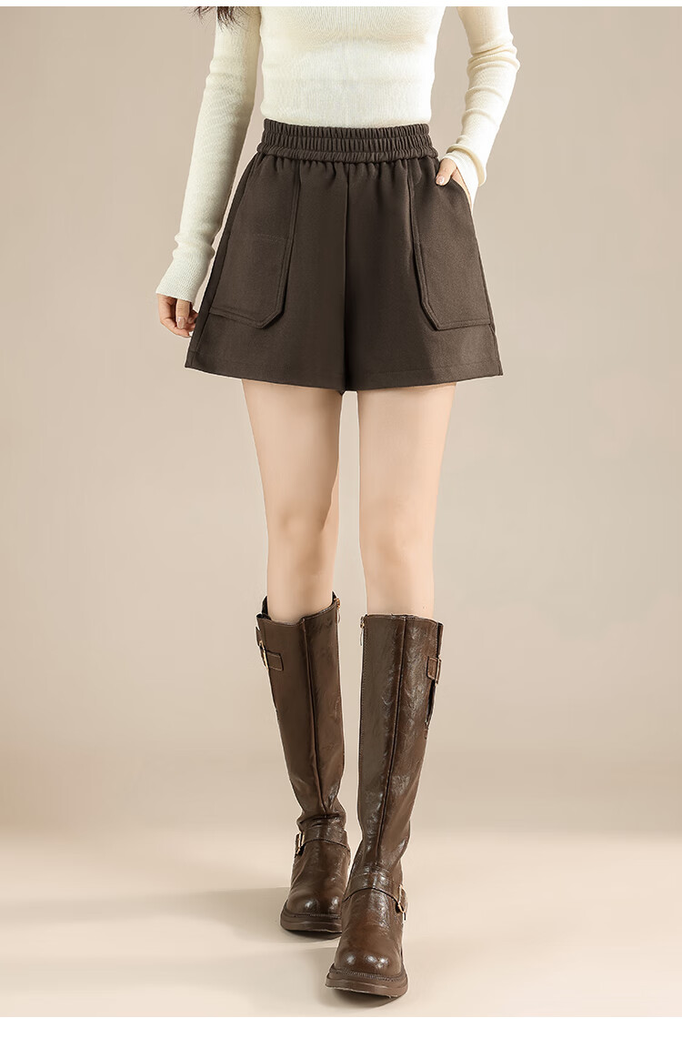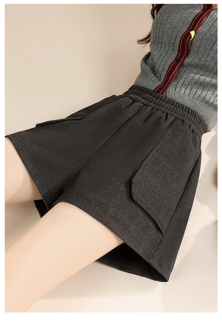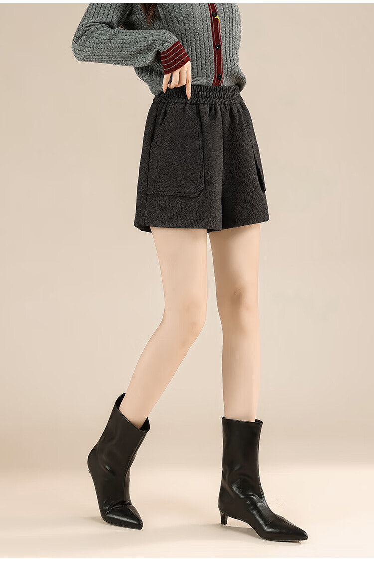TERRE BLEUE High Waisted Woolen Shorts Retro Style 2025 Autumn and Winter New Women's Elastic Waist Suit Shorts Black M