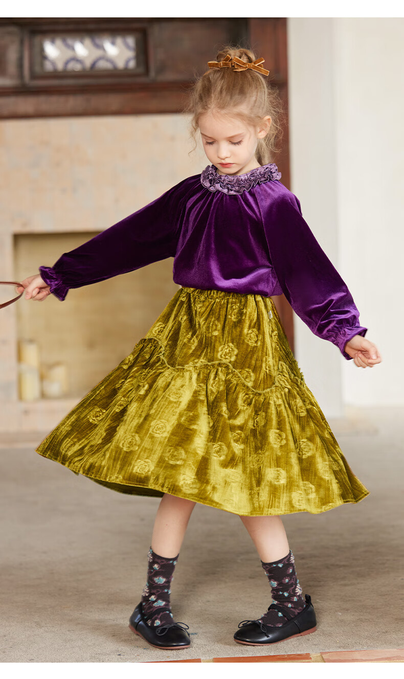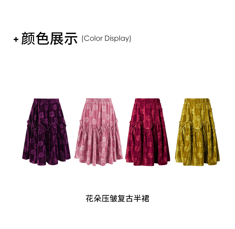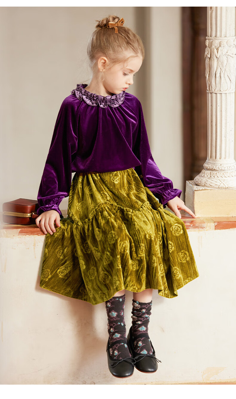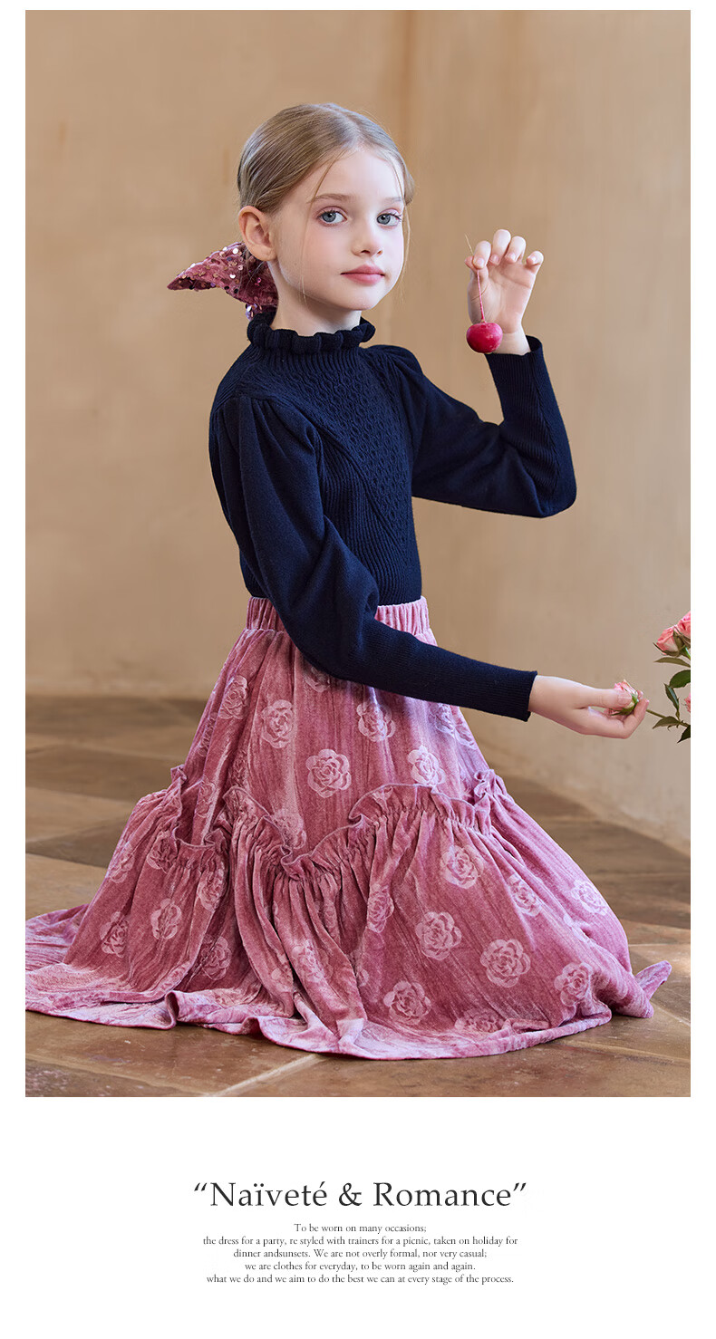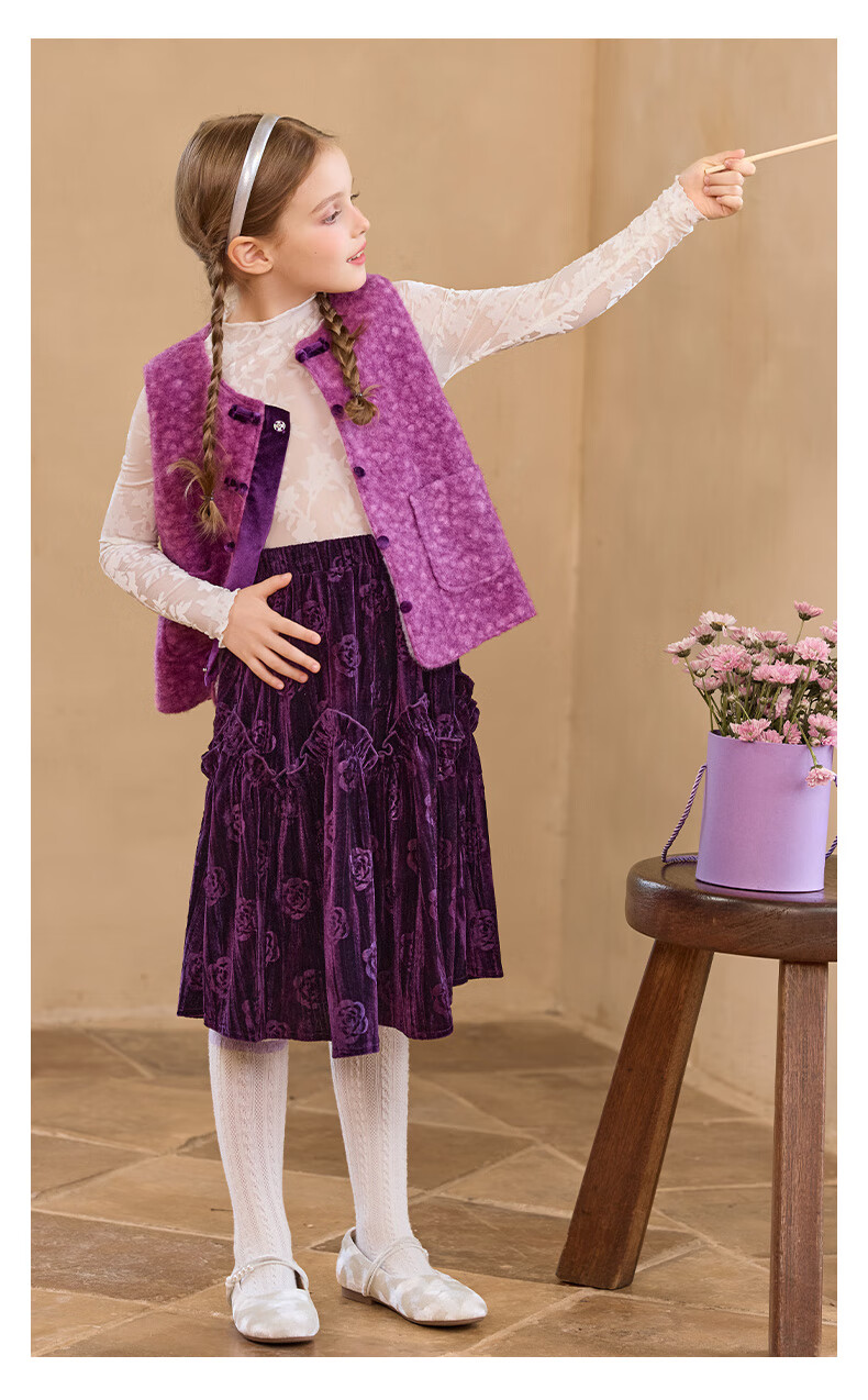 Little Naive Girls Skirt Autumn and Winter New Children's Flower Crumpled Retro Velvet Skirt Burgundy 130 New Year's Eve Clothes