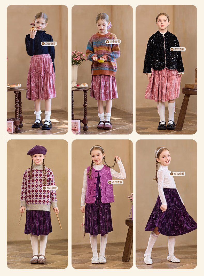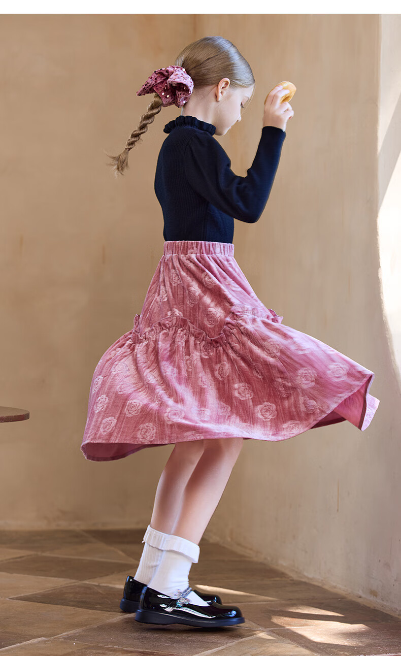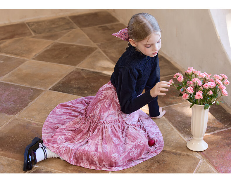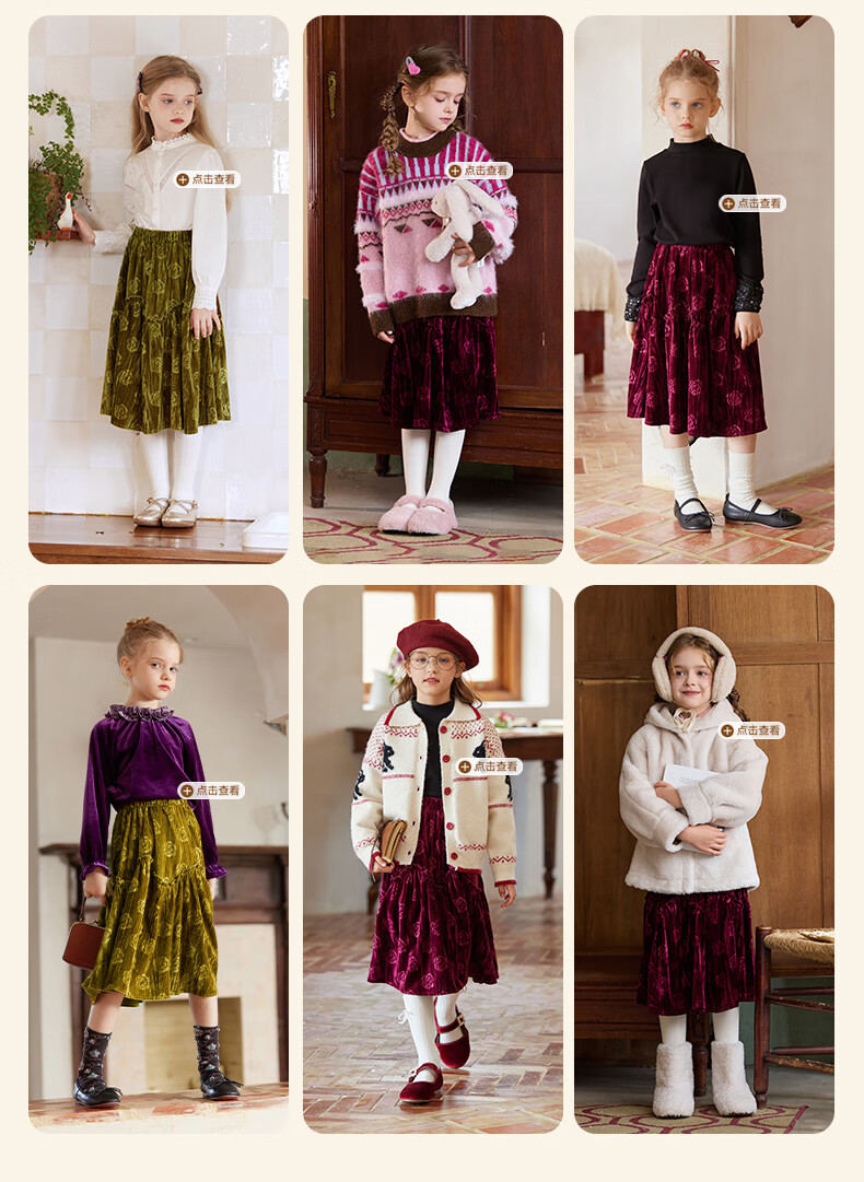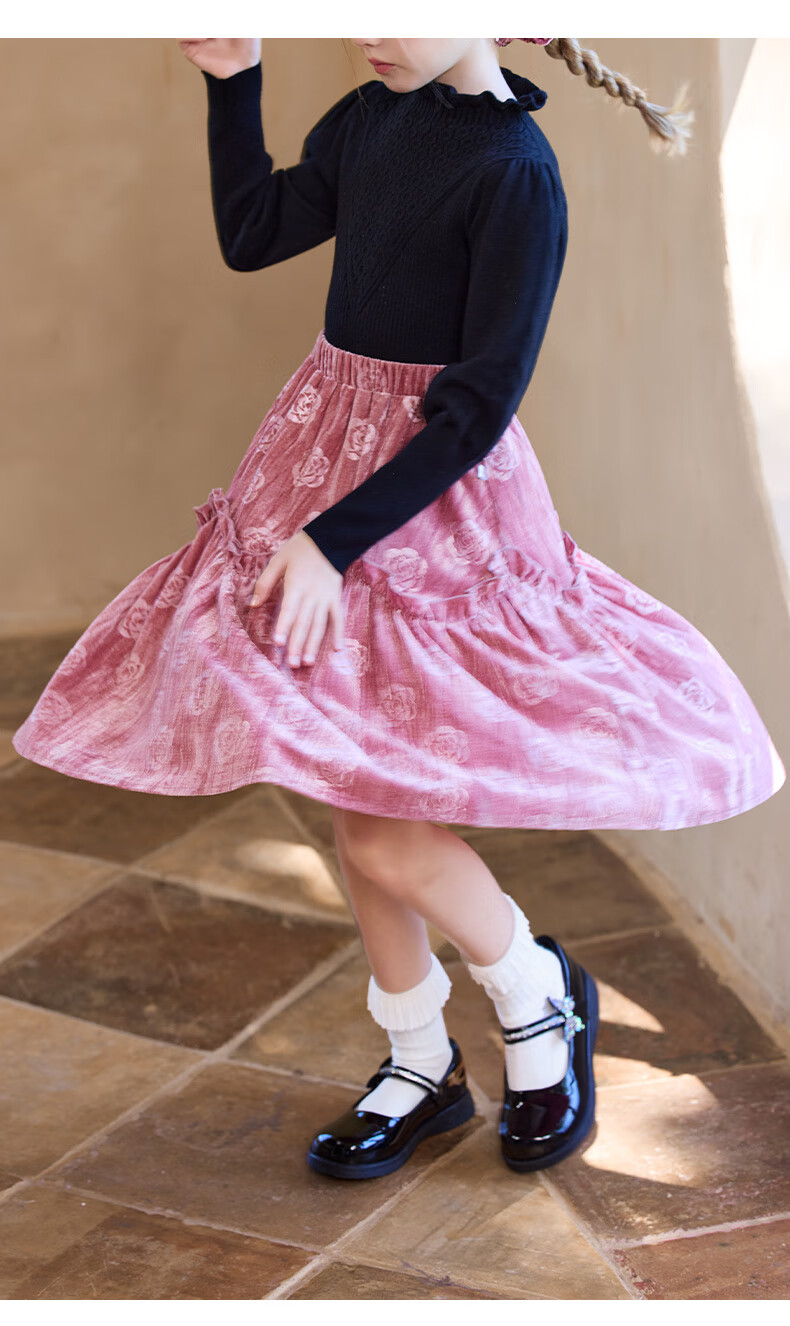 Little Naive Girls Skirt Autumn and Winter New Children's Flower Crumpled Retro Velvet Skirt Burgundy 130 New Year's Eve Clothes