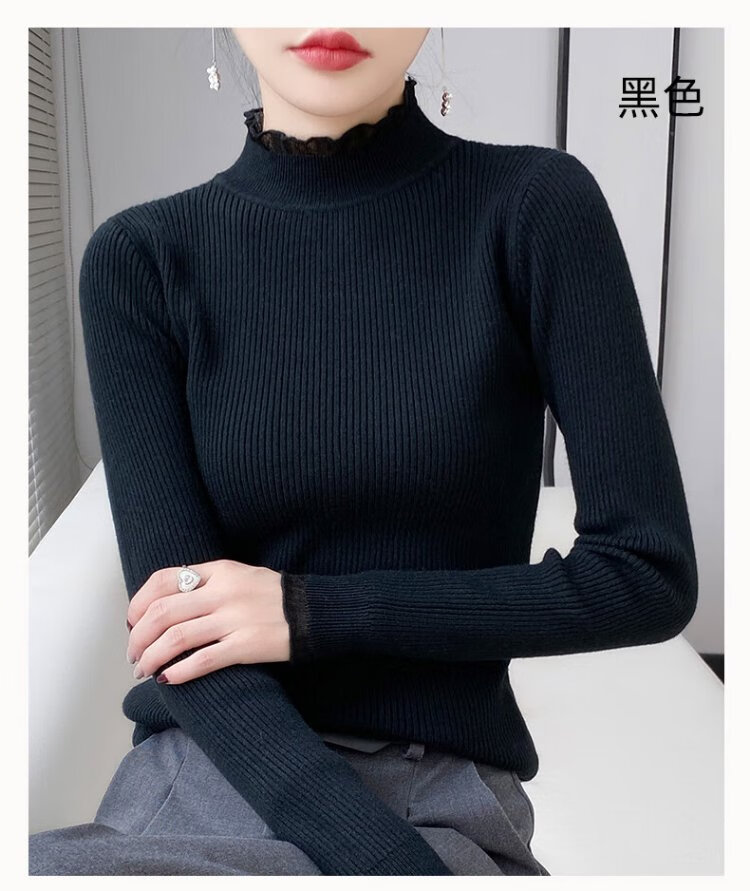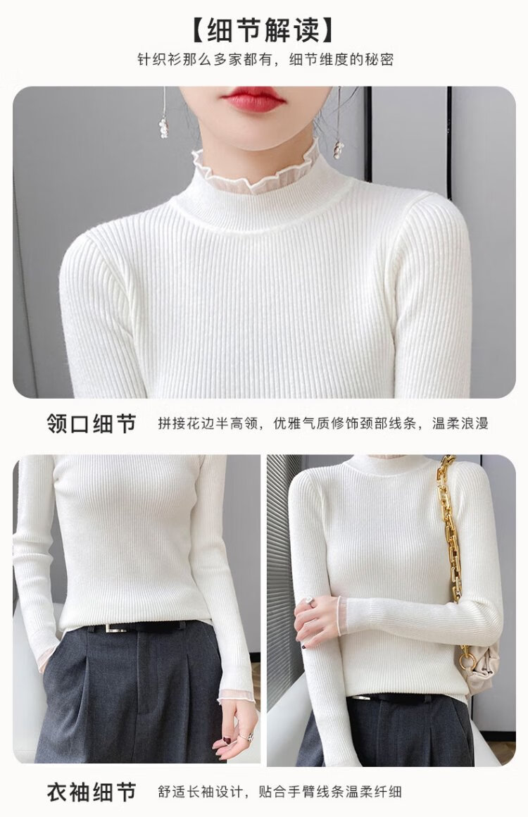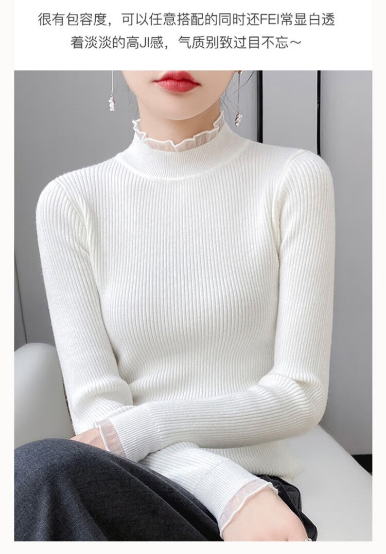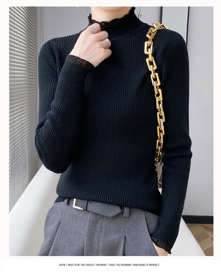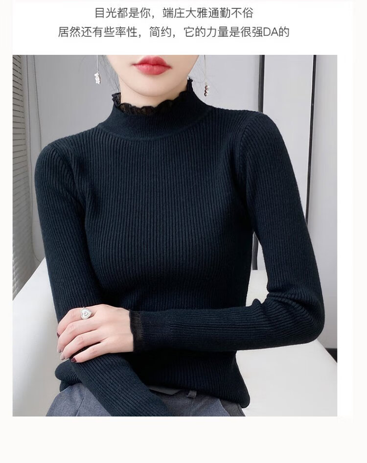 Yu Zhaolin (YUZHAOLIN) lace half turtleneck bottoming shirt for women in autumn and winter with knitted sweater, slim, unique and chic sweater long-sleeved top