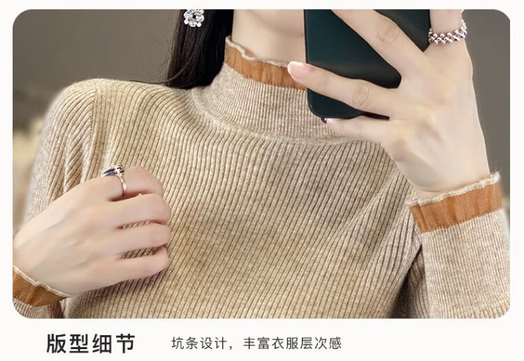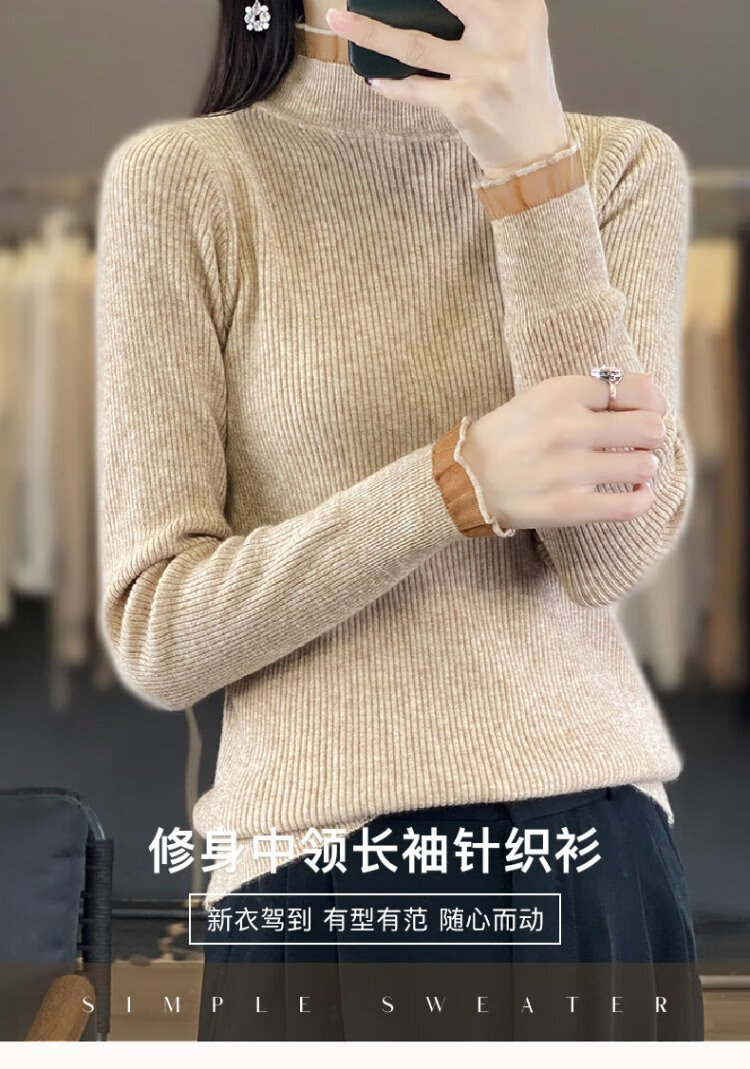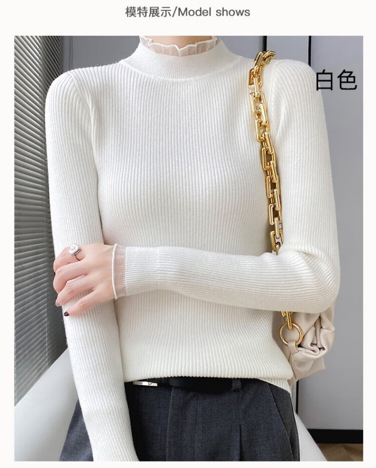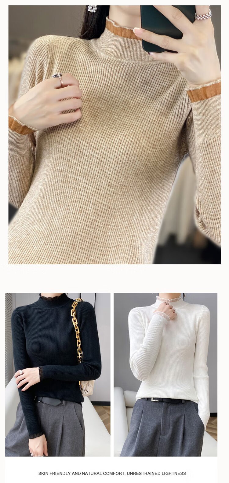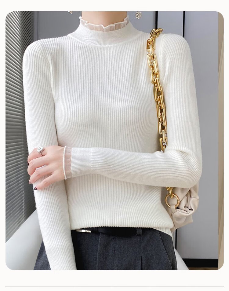 Yu Zhaolin (YUZHAOLIN) lace half turtleneck bottoming shirt for women in autumn and winter with knitted sweater, slim, unique and chic sweater long-sleeved top
