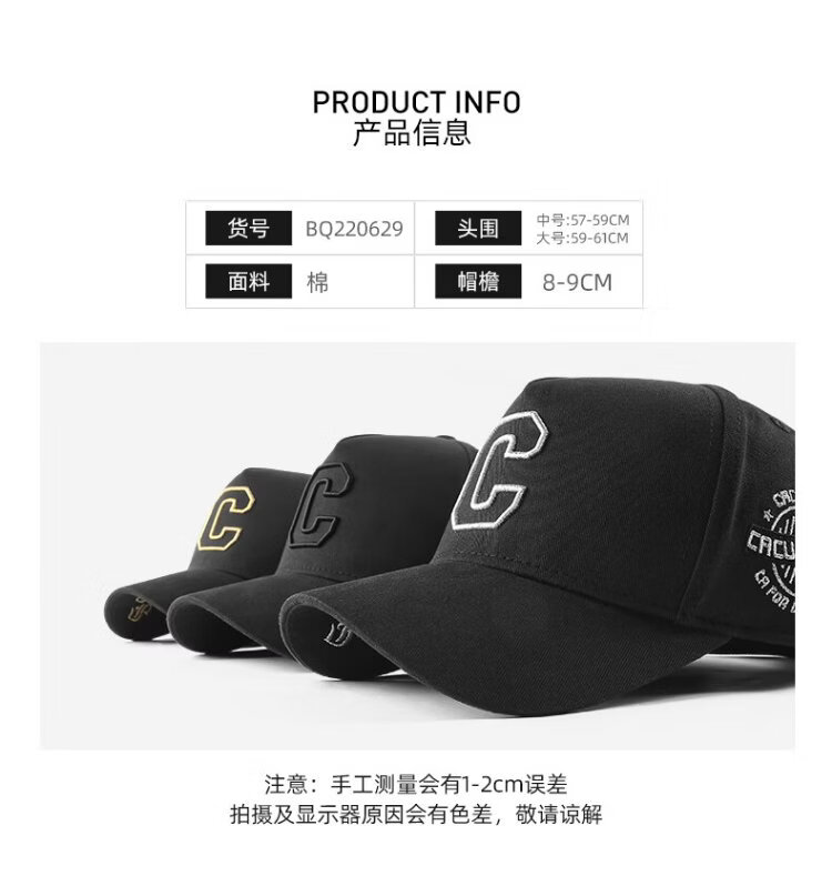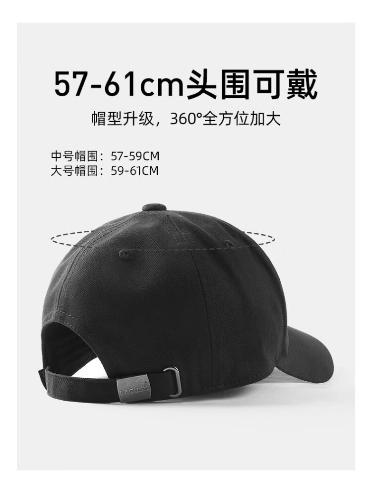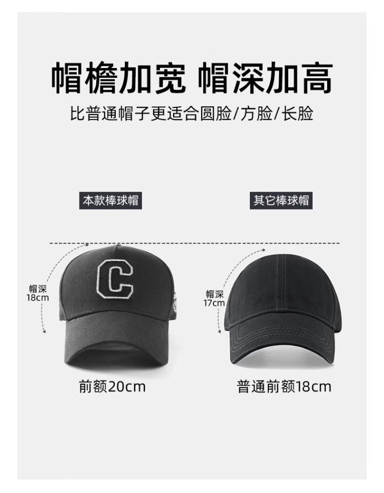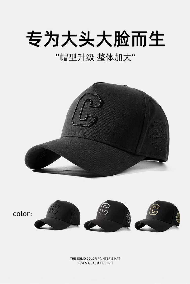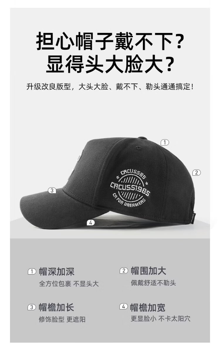 CACUSS wool baseball hat men's winter large head circumference high peaked cap outdoor casual hat gray L
