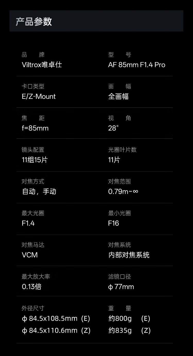 VILTROX AF 85mm F1.4 Pro Z Nikon port full-frame autofocus large aperture mid-telephoto fixed focus portrait lens suitable for ZF Z6III Z5II mirrorless cameras