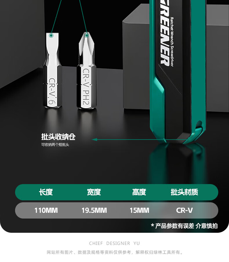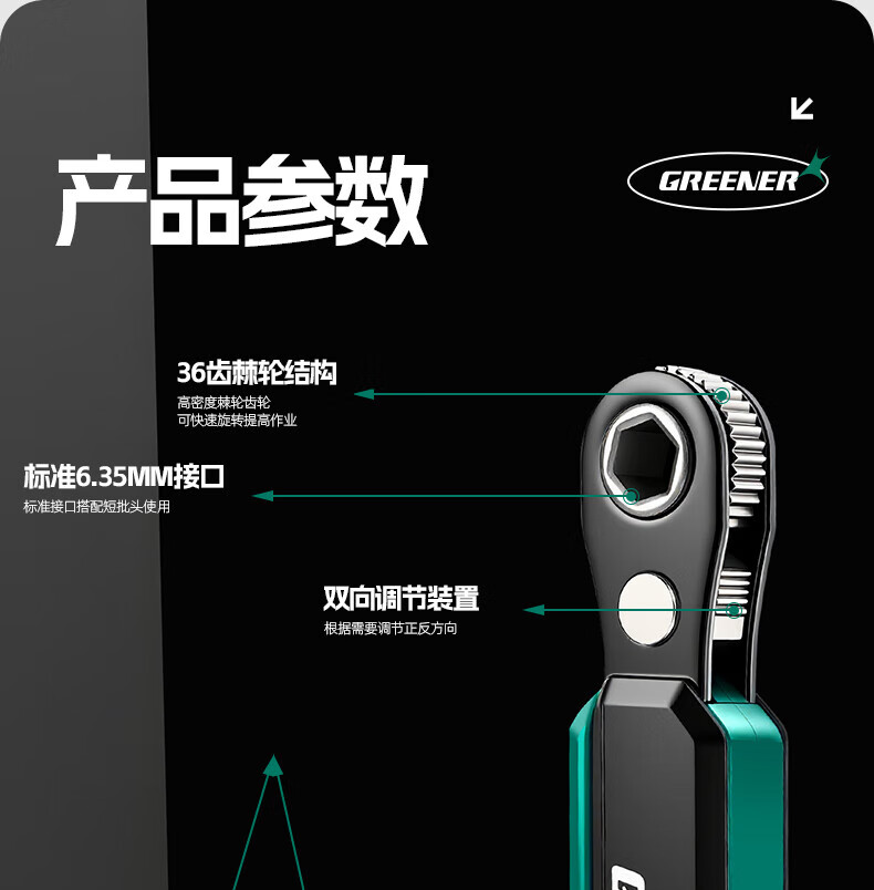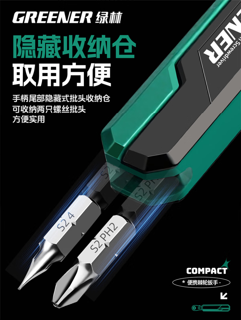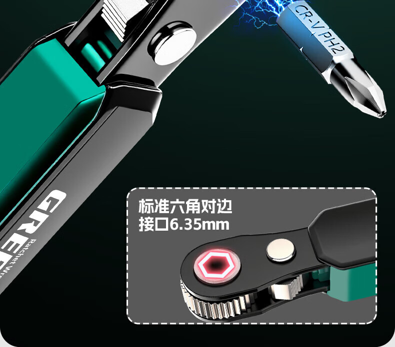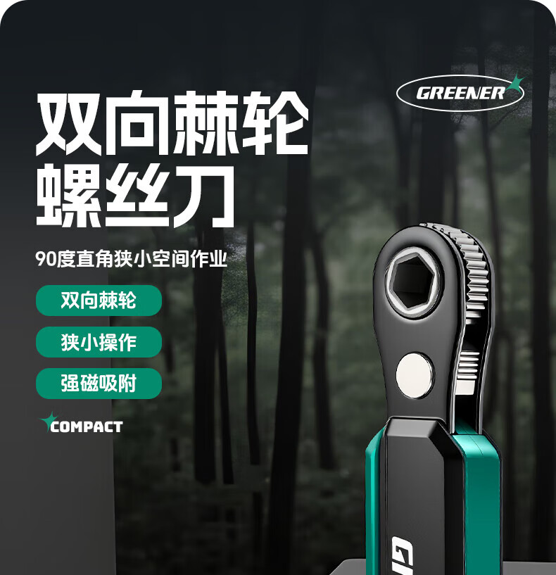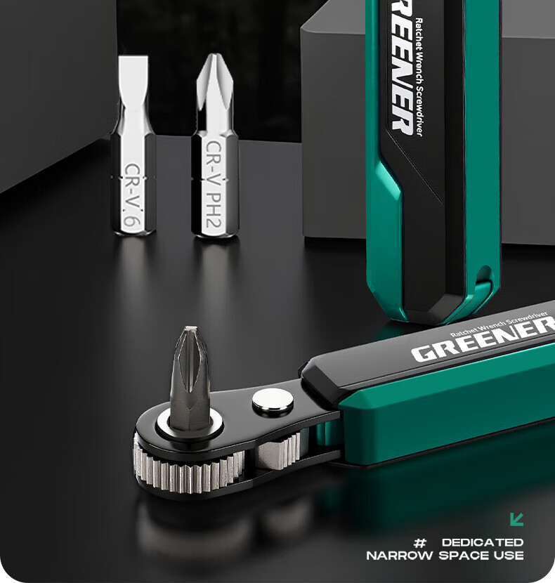 GREENER two-way forward and reverse ratchet screwdriver, right-angle bender, elbow wrench, cross-shaped screwdriver bit set