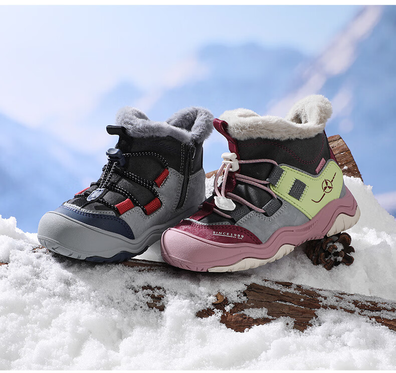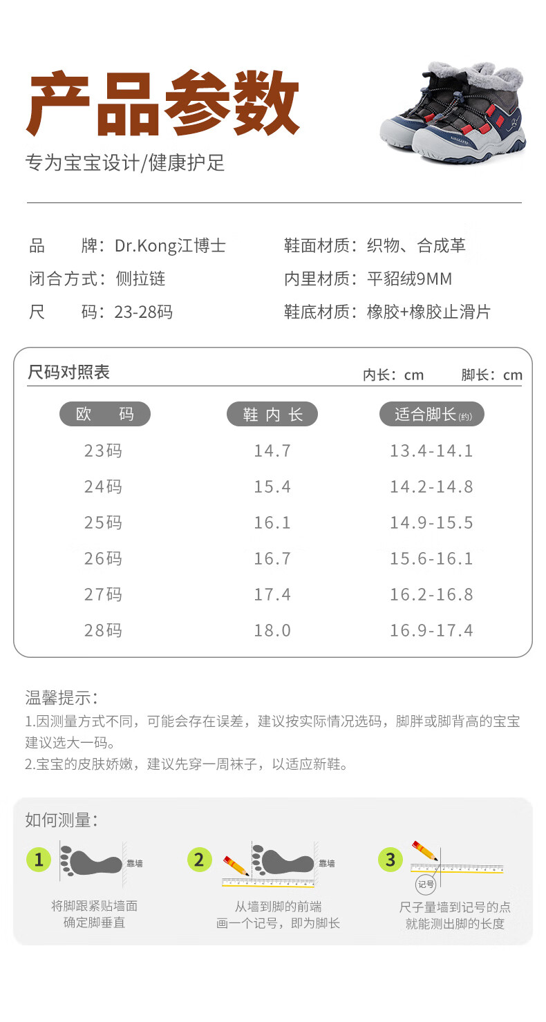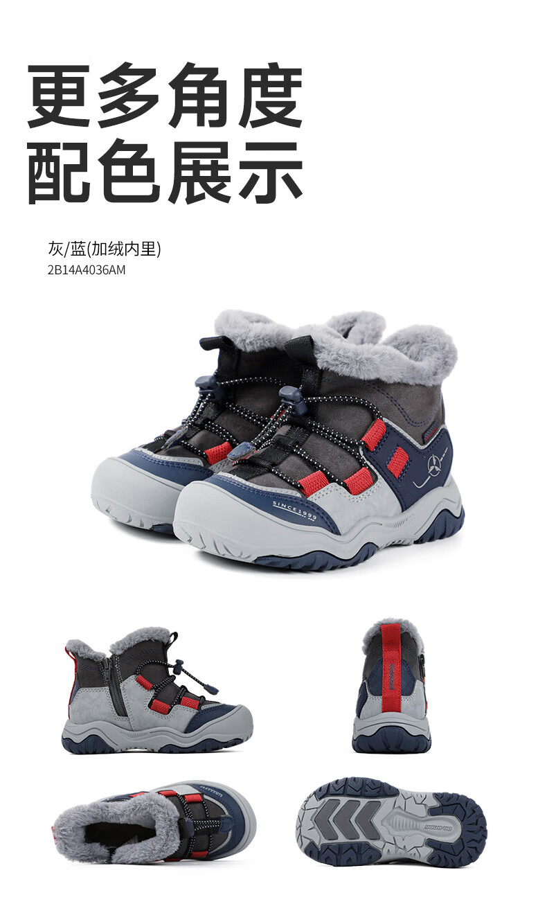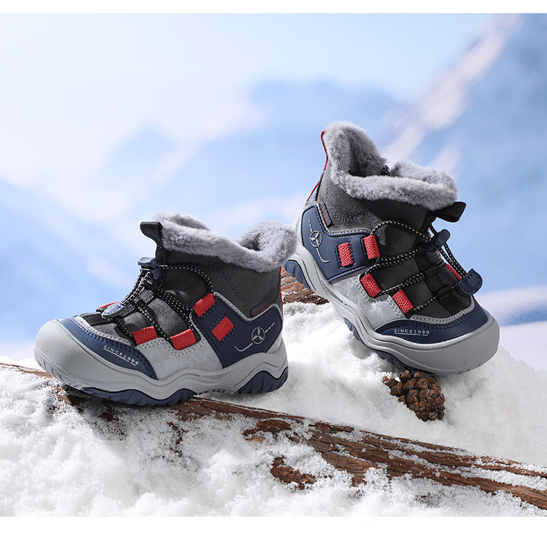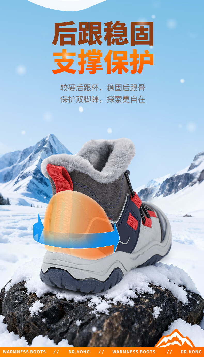 DR KONG Toddler Shoes Sports Shoes Winter Boys and Girls Plus Velvet Warm Children's Cotton Boots 2B14A4036AM Gray/Blue 26 Size