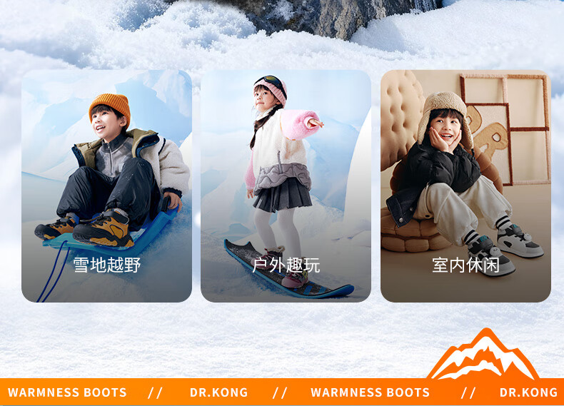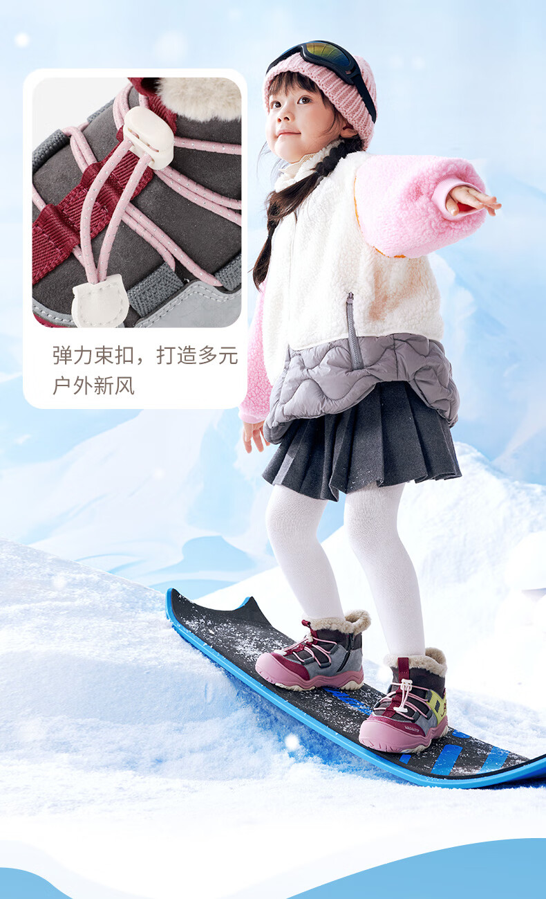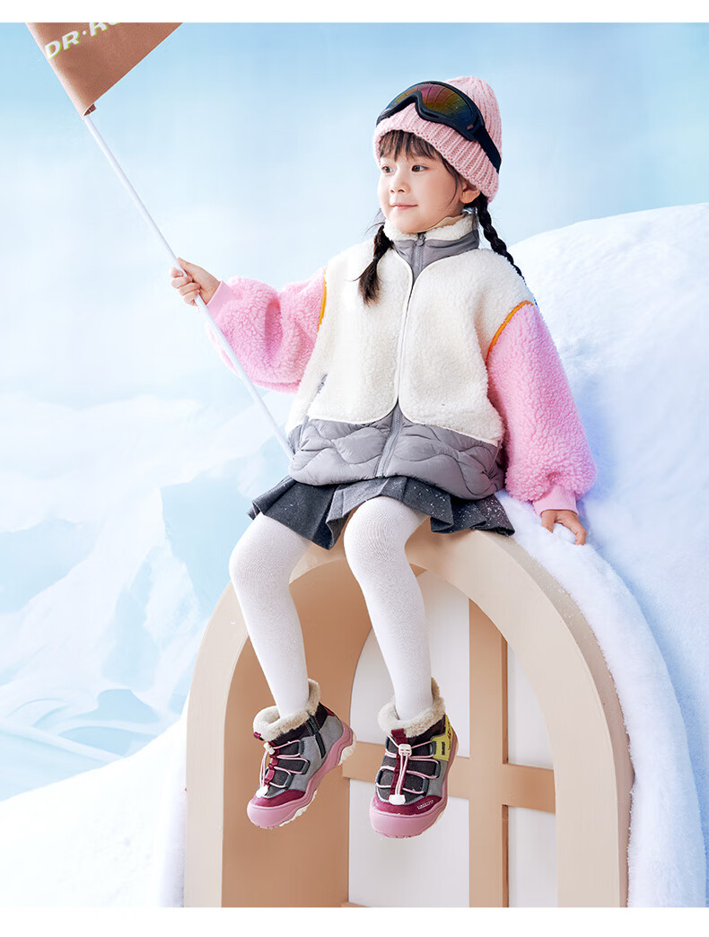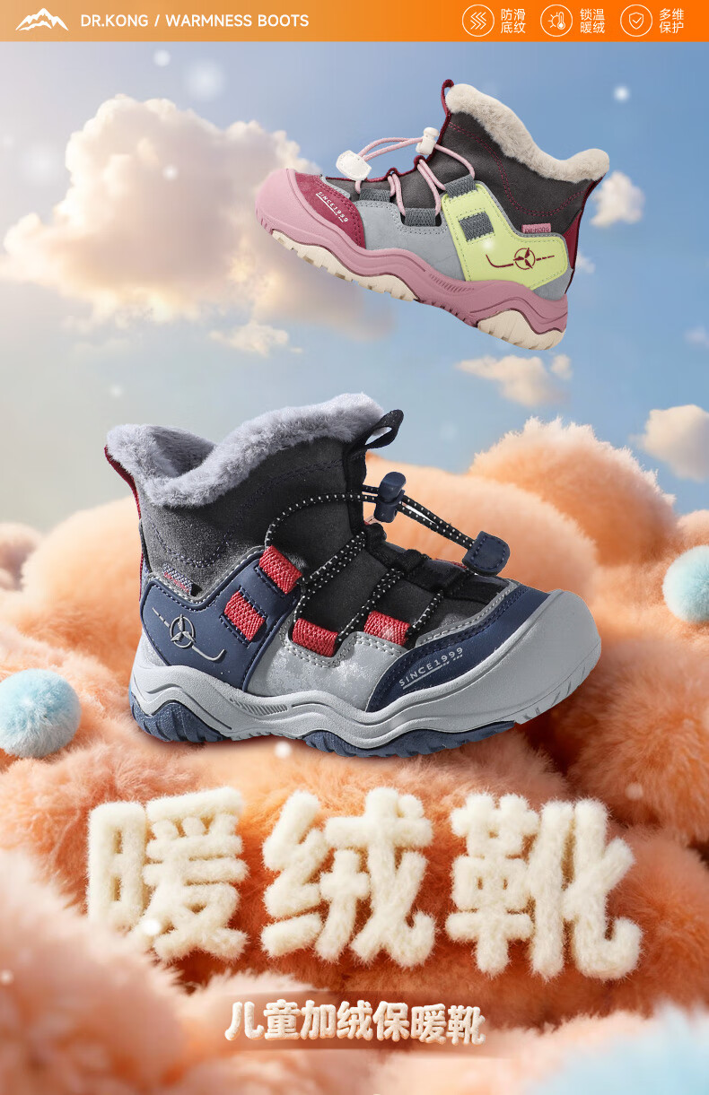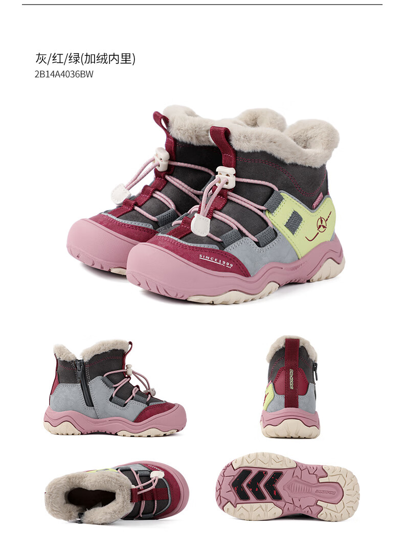 DR KONG Toddler Shoes Sports Shoes Winter Boys and Girls Plus Velvet Warm Children's Cotton Boots 2B14A4036AM Gray/Blue 26 Size