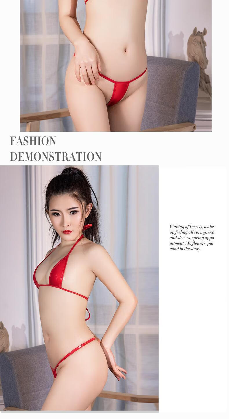 Ye Zimei sexy sexy underwear women's three-point outfit transparent swimsuit patent leather lace-up swimsuit private temptation underwear underwear bikini set black one size
