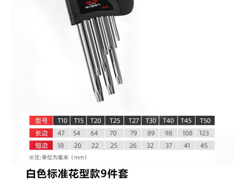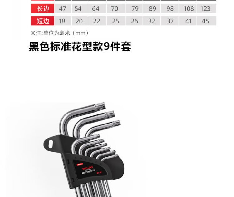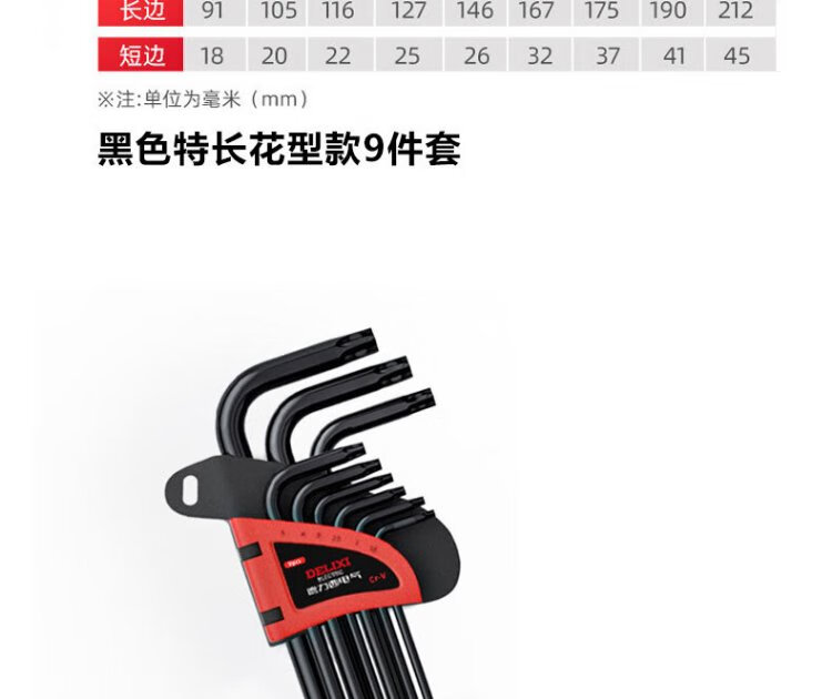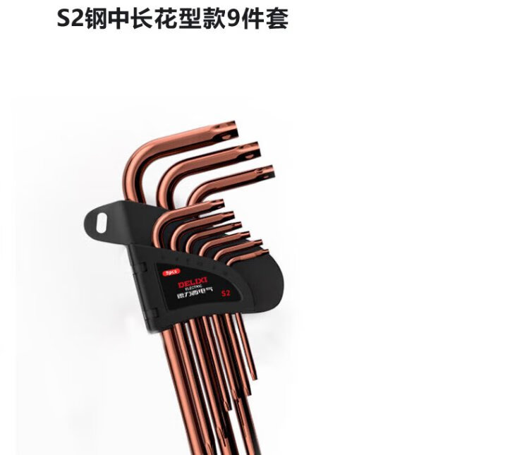 Delixi Electric Hexagonal Wrench Set Hardware Repair Tools Hexagonal Screwdriver S2 Steel 9-piece Set Standard Plum Blossom