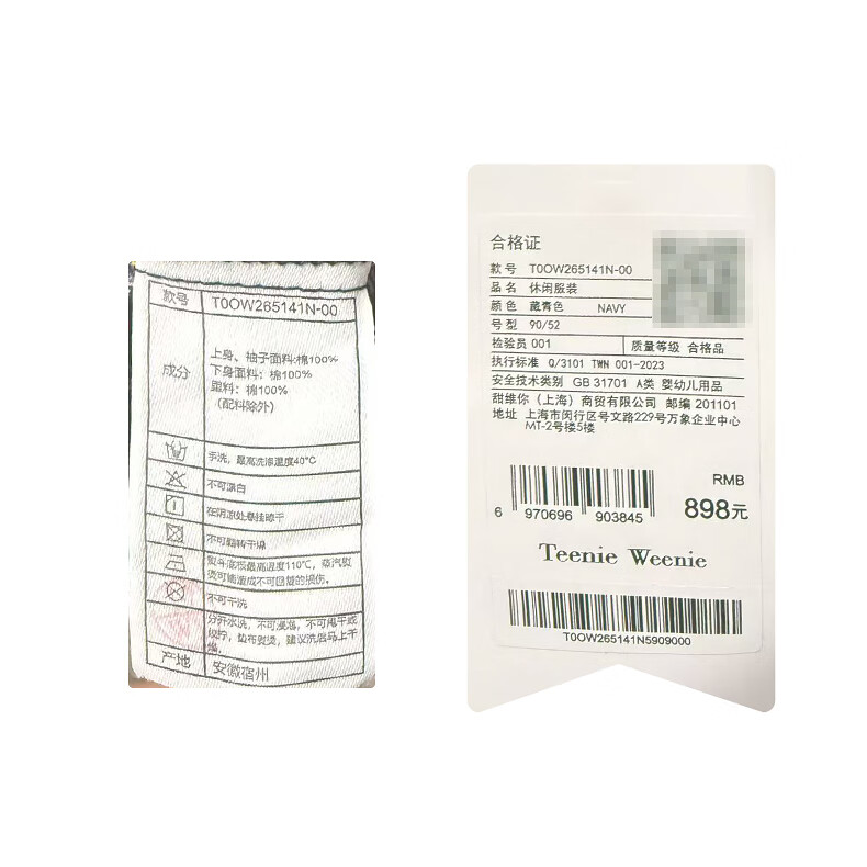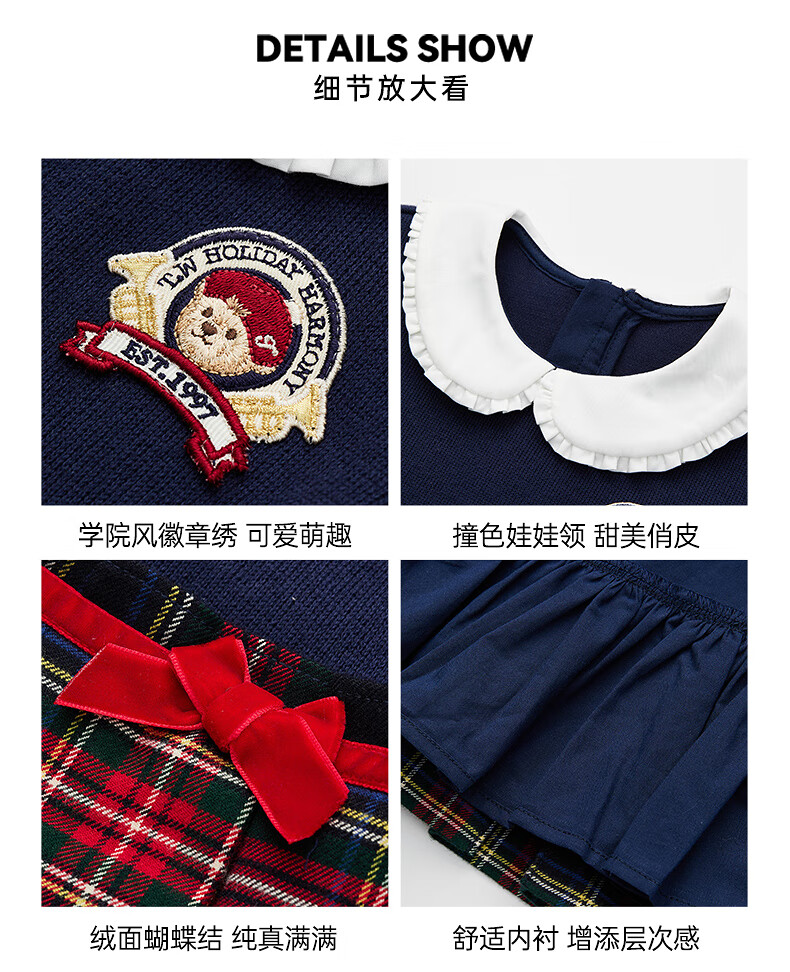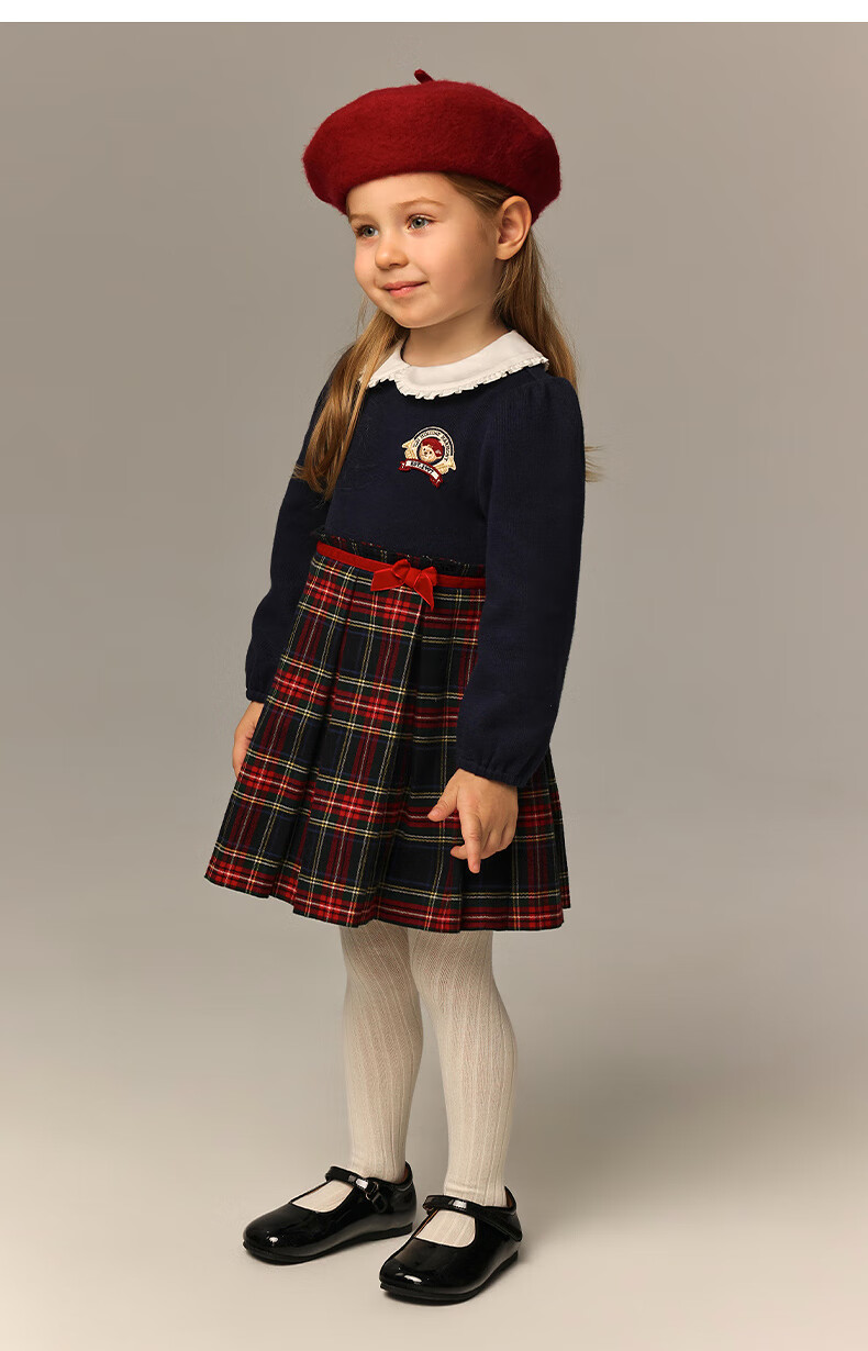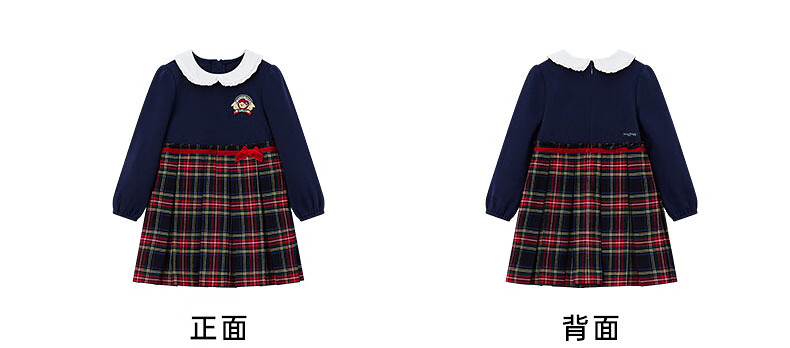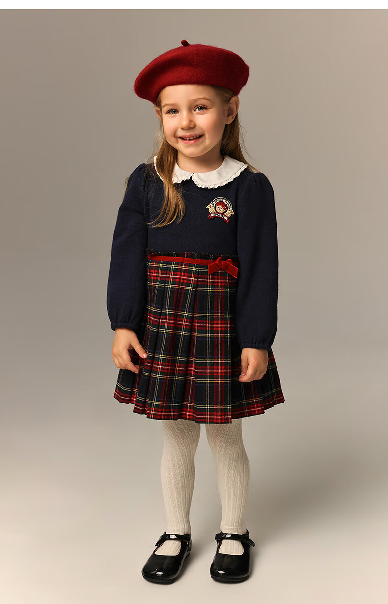 Teenie Weenie Kids 26 years new baby girl patchwork plaid long-sleeved dress navy blue 90cm