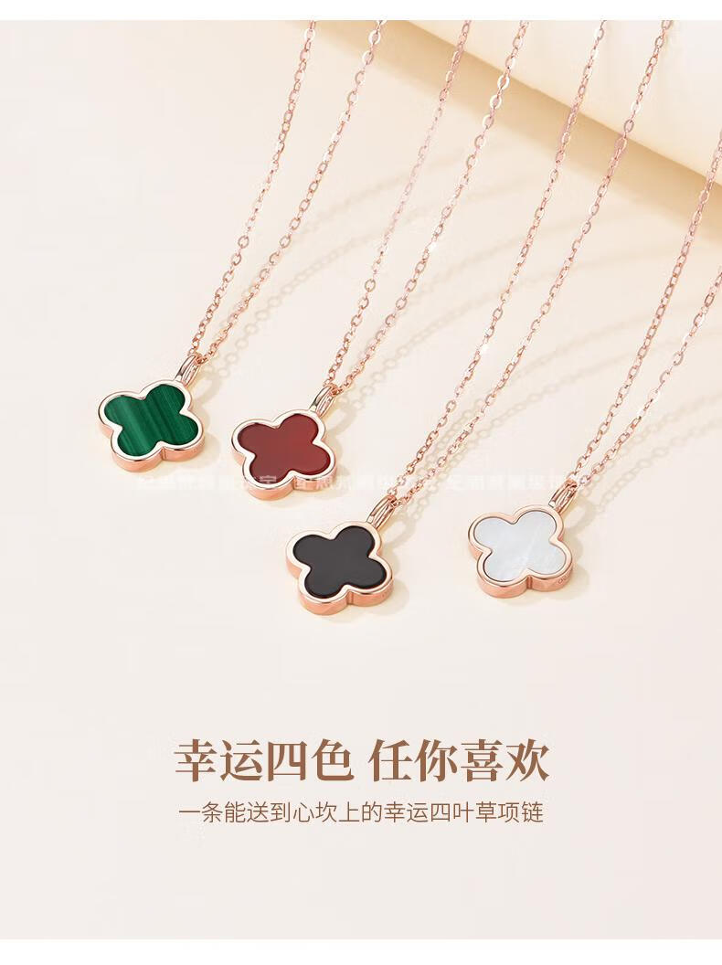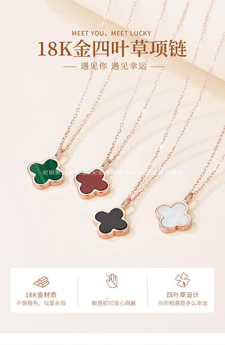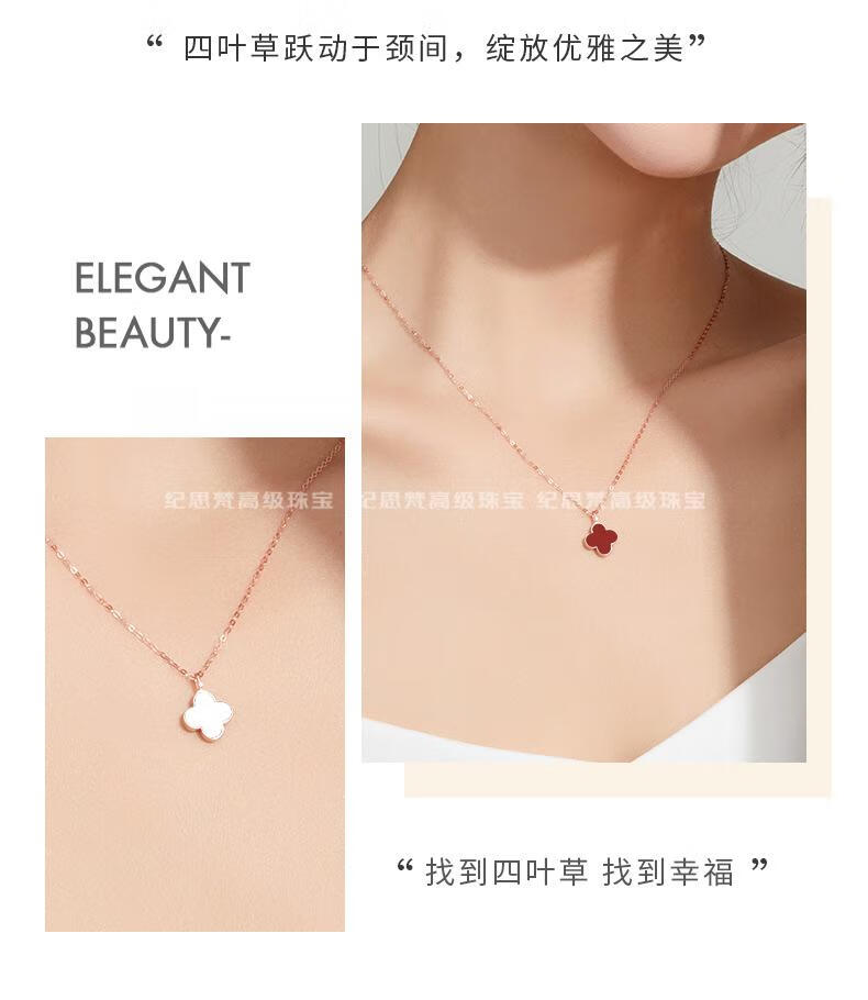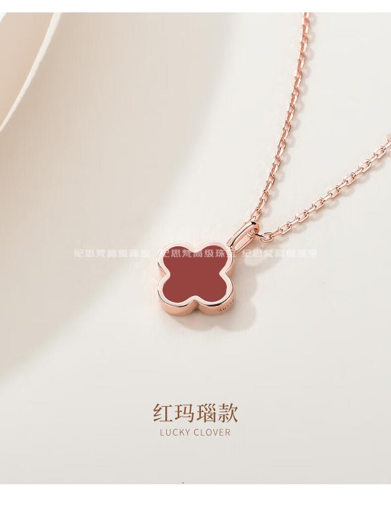 Ji Sifan light luxury color gold four-leaf clover necklace women's clavicle chain rose gold Valentine's Day birthday gift for girlfriend red agate chain