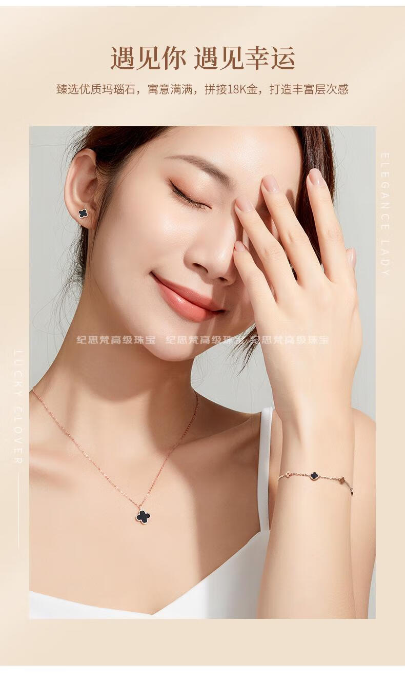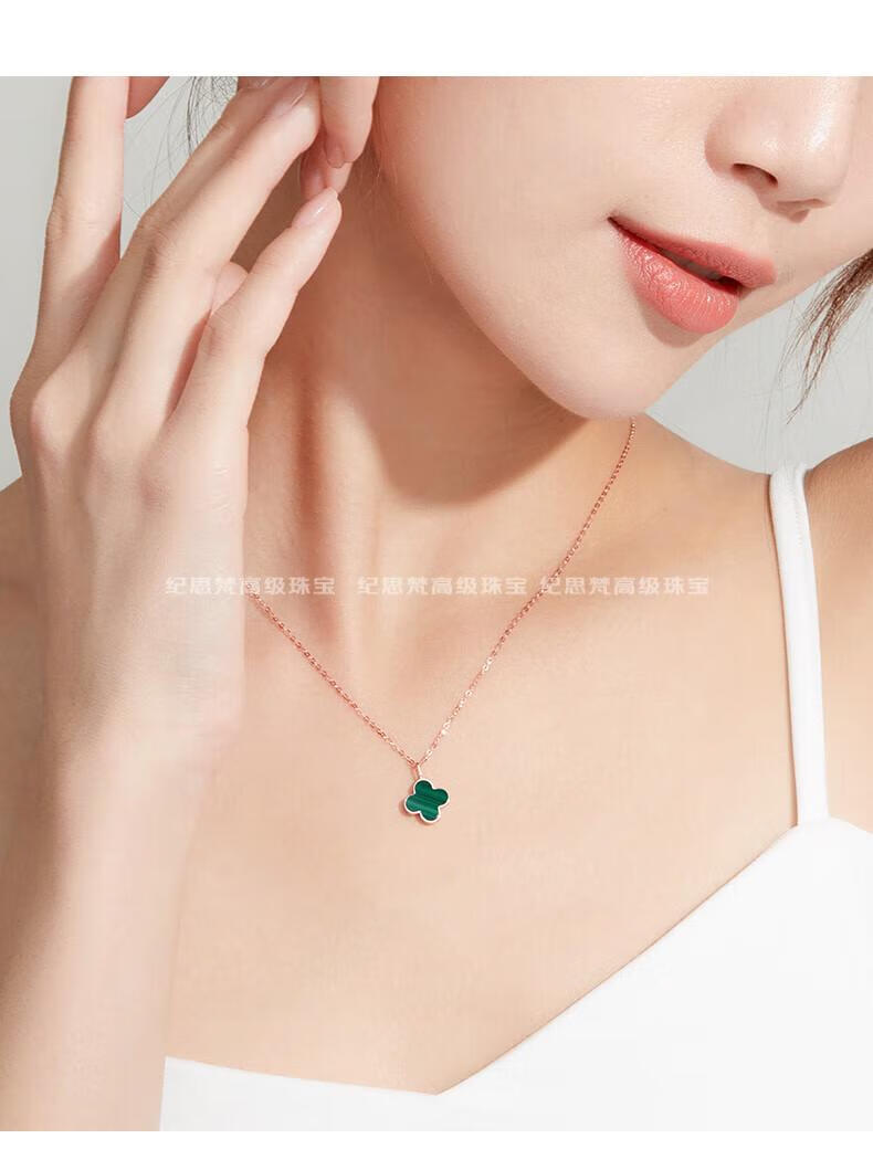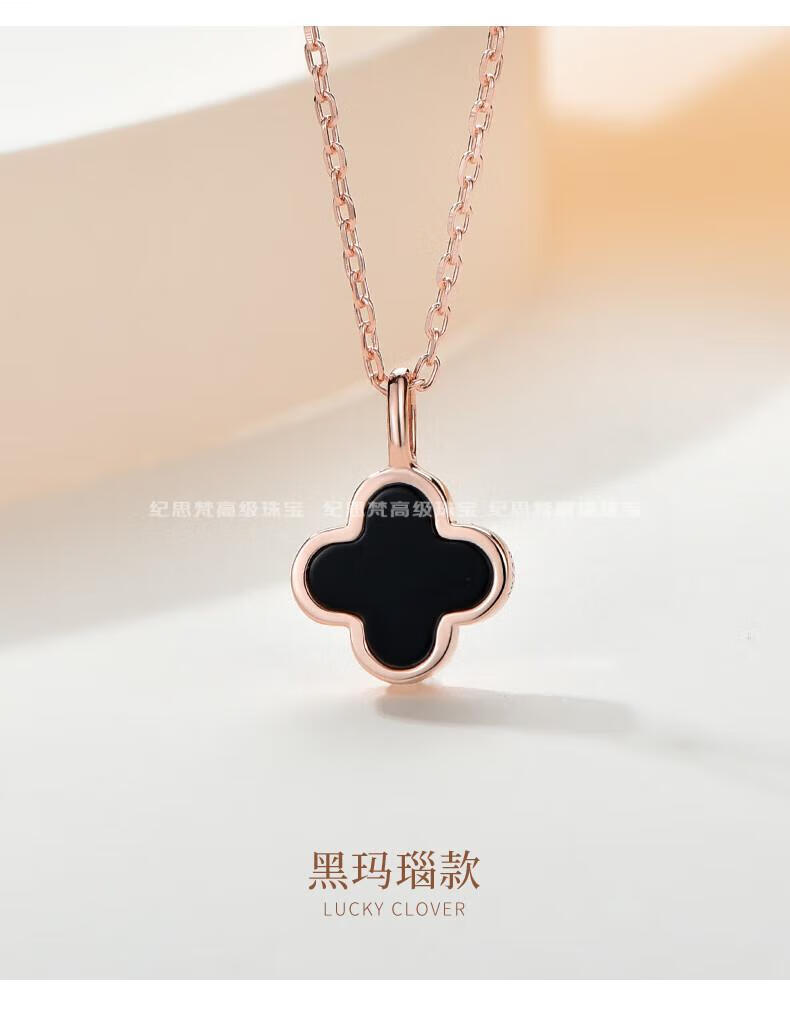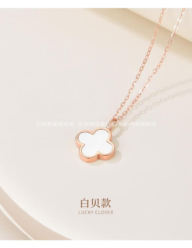 Ji Sifan light luxury color gold four-leaf clover necklace women's clavicle chain rose gold Valentine's Day birthday gift for girlfriend red agate chain