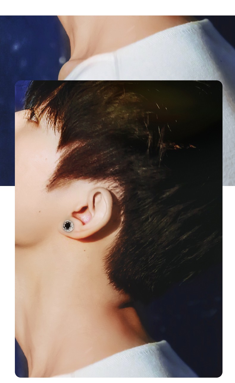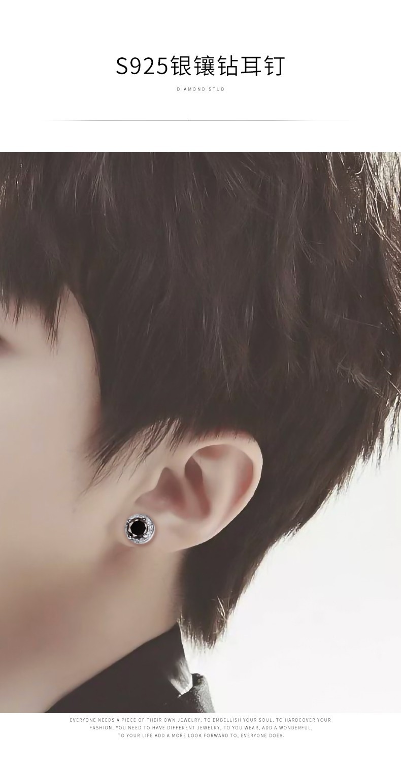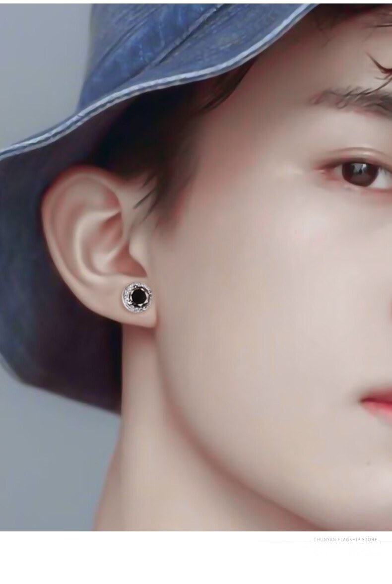 Farcoko brand earrings for men, trendy single, personalized, high-end, temperamental earrings, fashionable jewelry, birthday gift for boyfriend, black diamond style - single