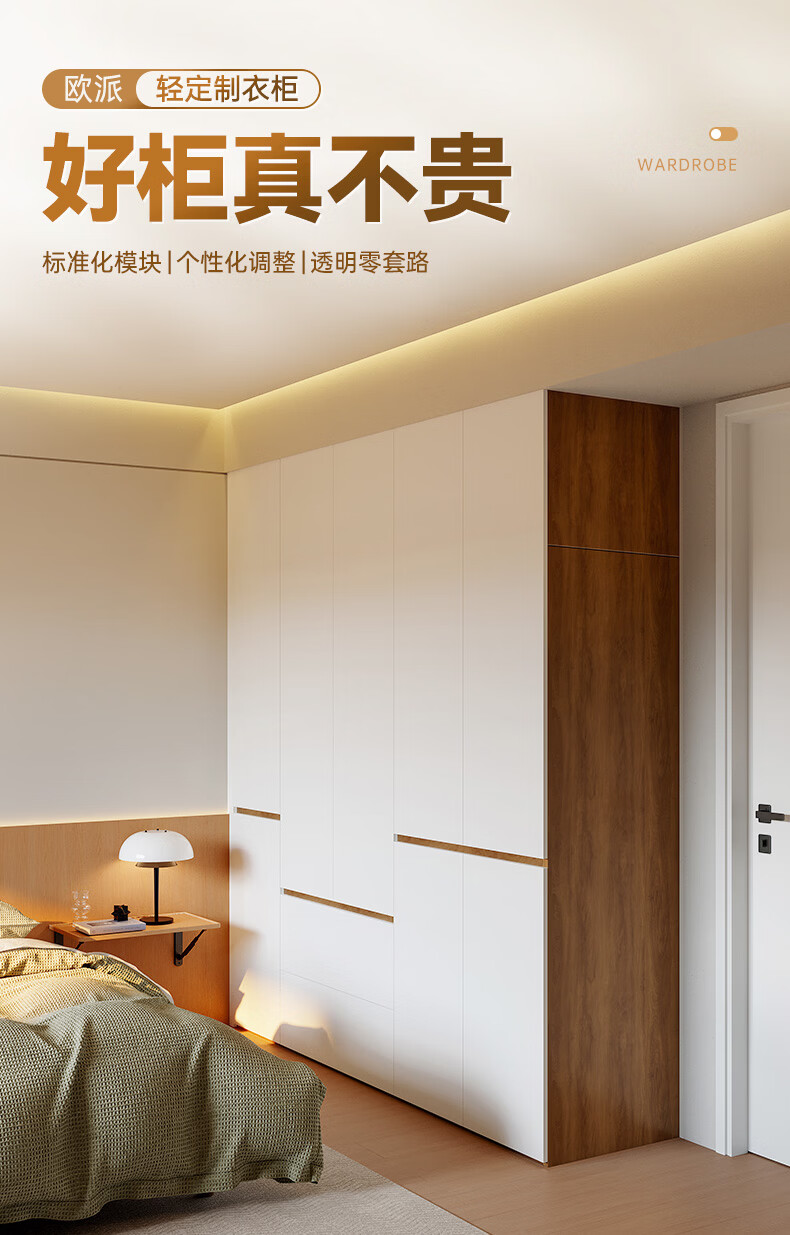 Oppein flat door cabinet master bedroom combination cabinet ENF grade whole house custom wardrobe overall bedroom light custom wardrobe customization
