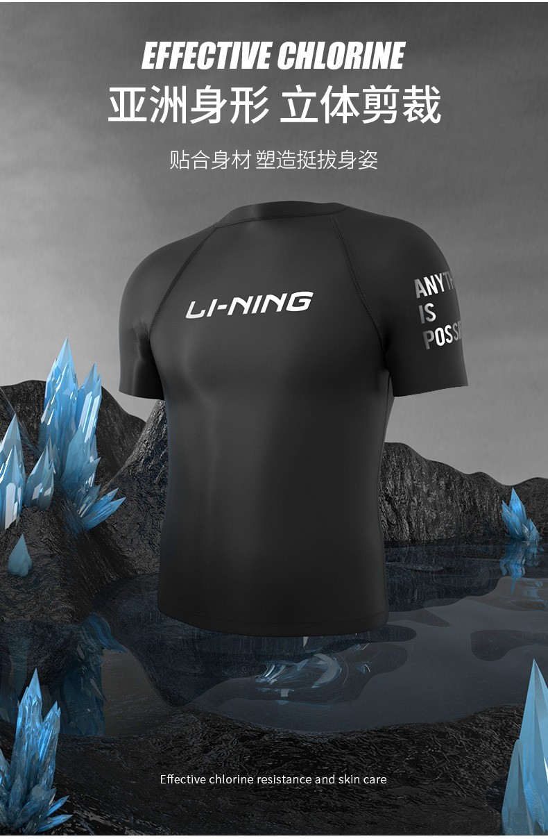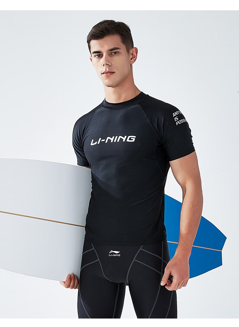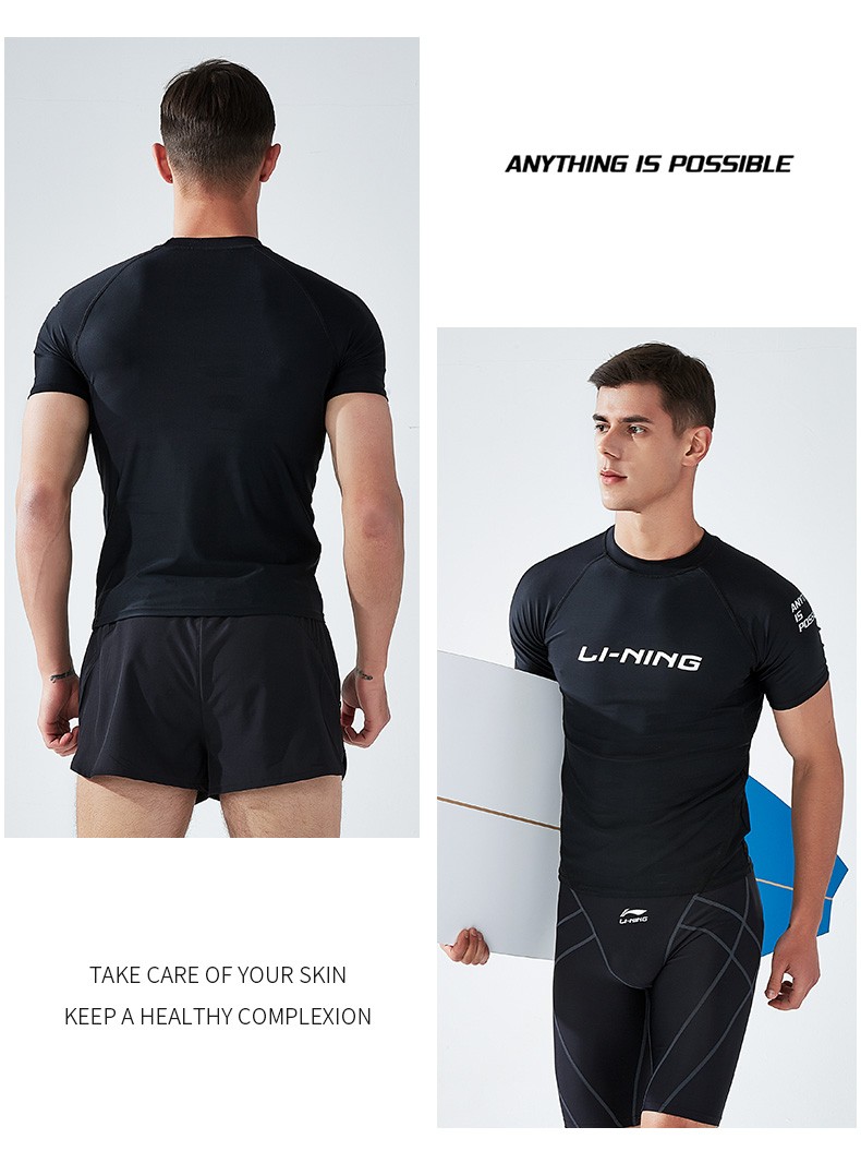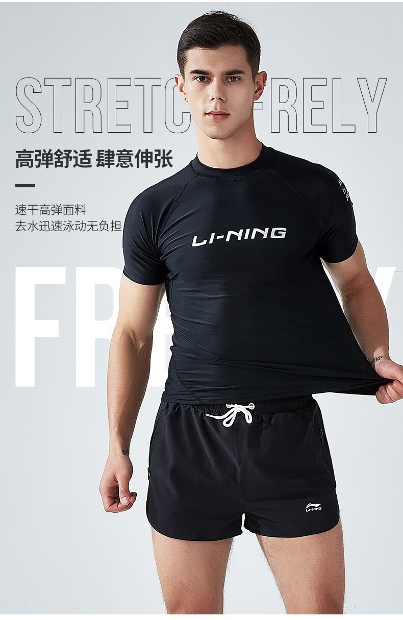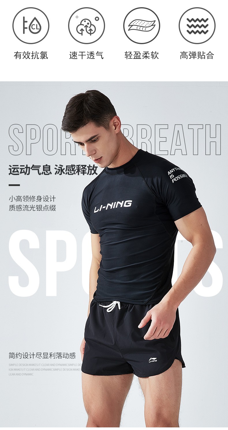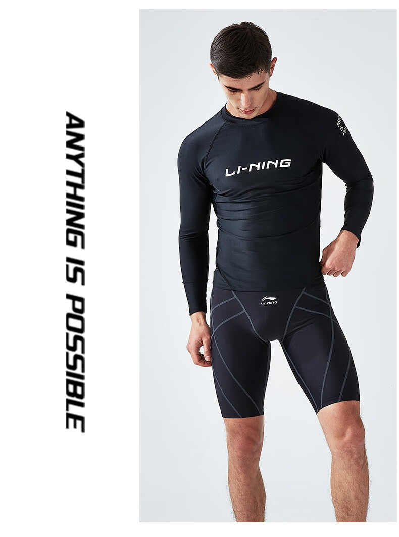 Li Ning (LI-NING) swimsuit men's professional easy-dry swimming trunks hot spring swimsuit suit high elasticity comfortable anti-embarrassment surfing wetsuit suit short-sleeved + 169 swimming trunks XL height 175-180 weight 65-75kg