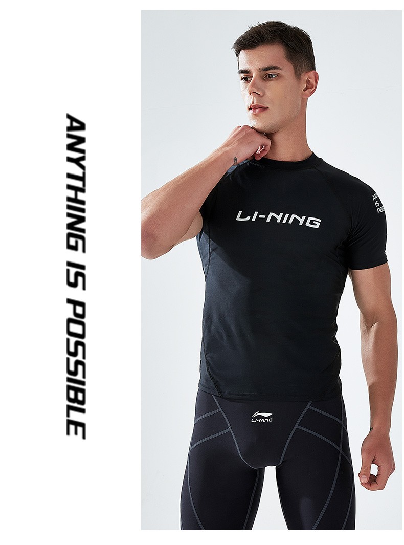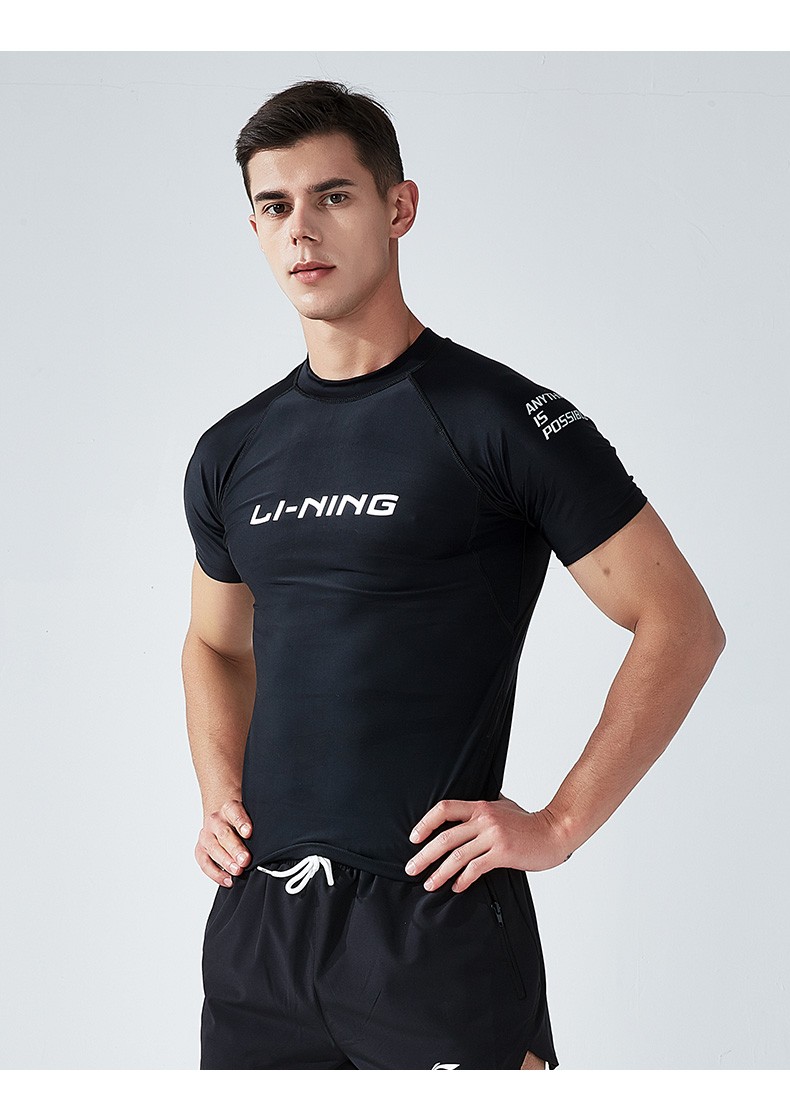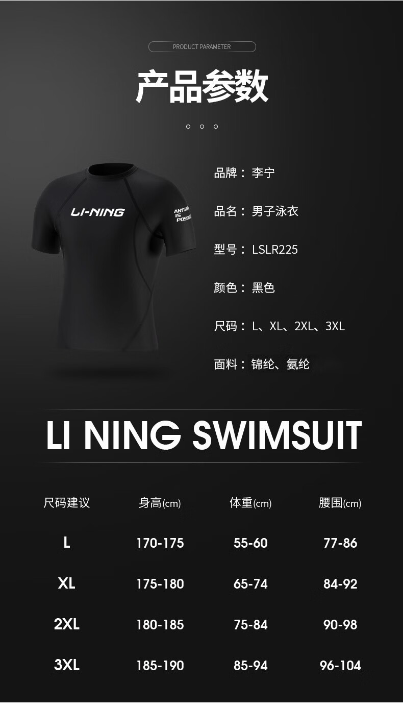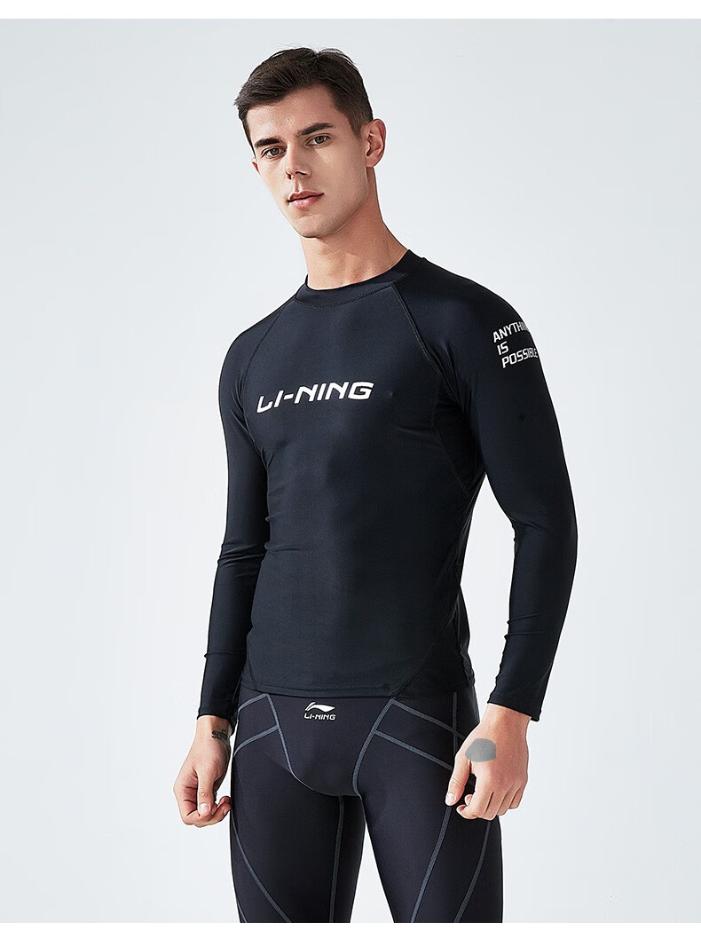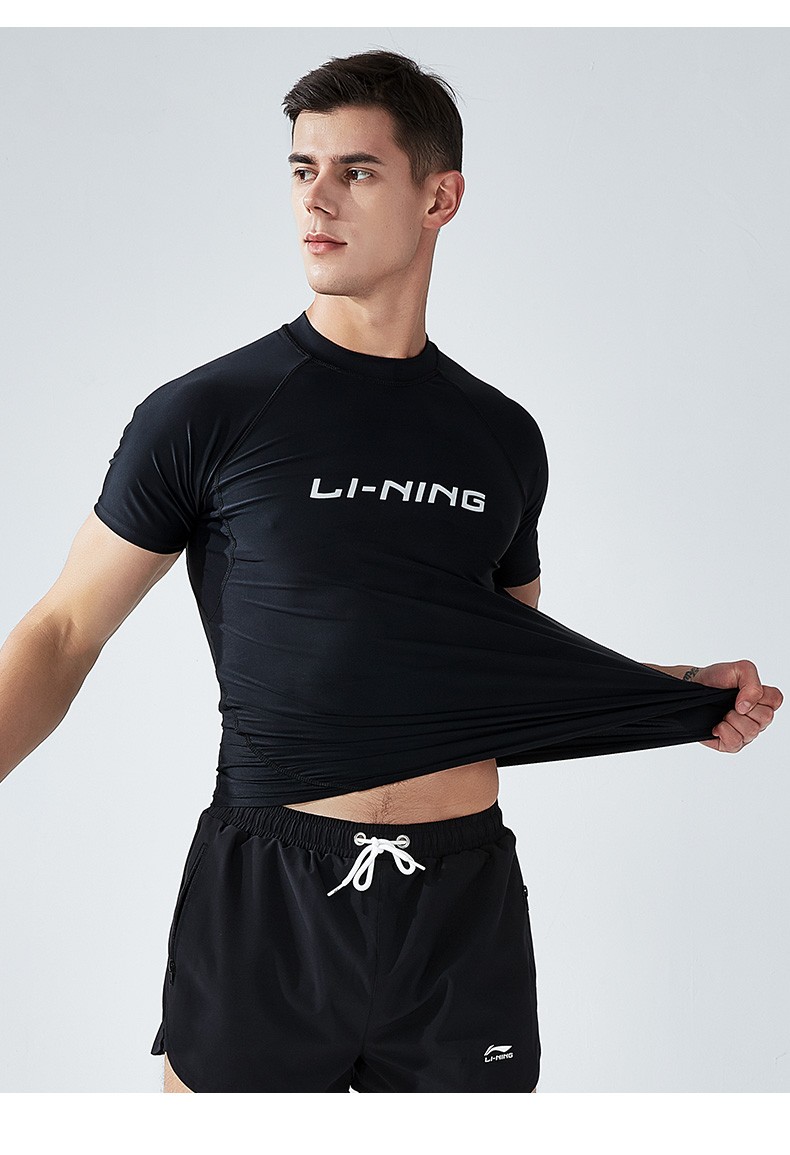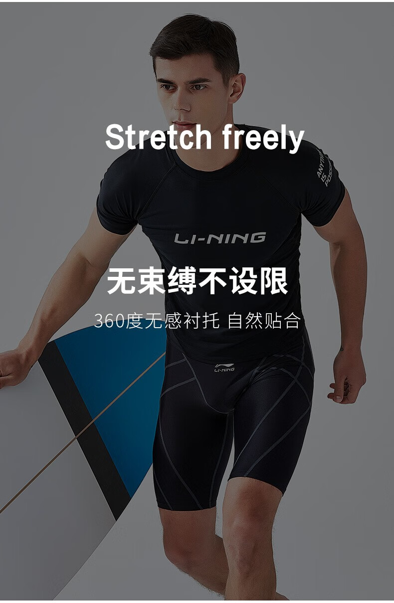 Li Ning (LI-NING) swimsuit men's professional easy-dry swimming trunks hot spring swimsuit suit high elasticity comfortable anti-embarrassment surfing wetsuit suit short-sleeved + 169 swimming trunks XL height 175-180 weight 65-75kg