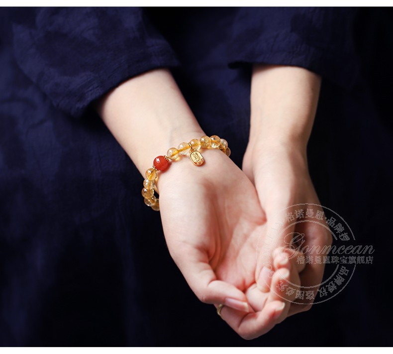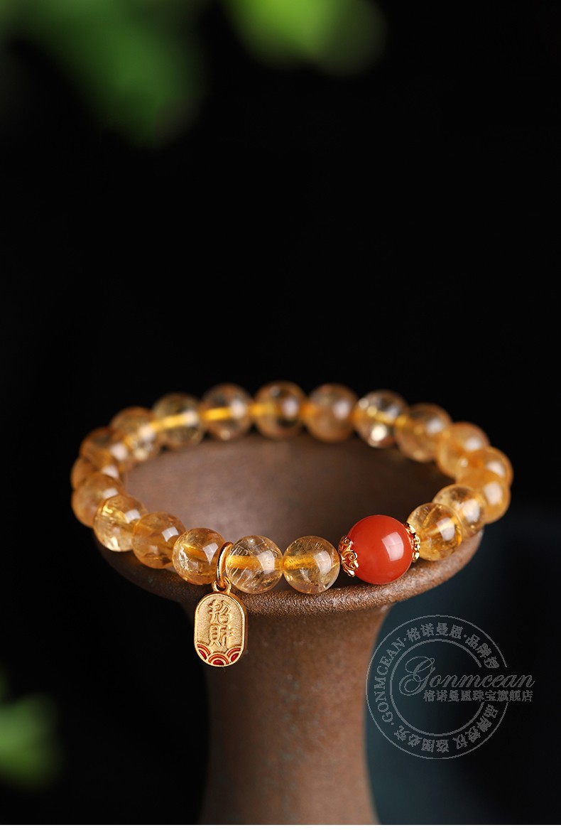 GONMCEAN Brazilian Citrine Bracelet Women's Single Circle Simple Bracelet Buddha Beads South Red Jewelry Gift