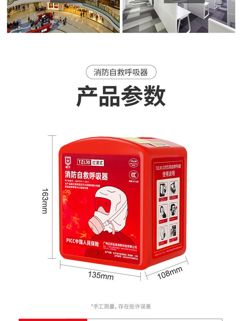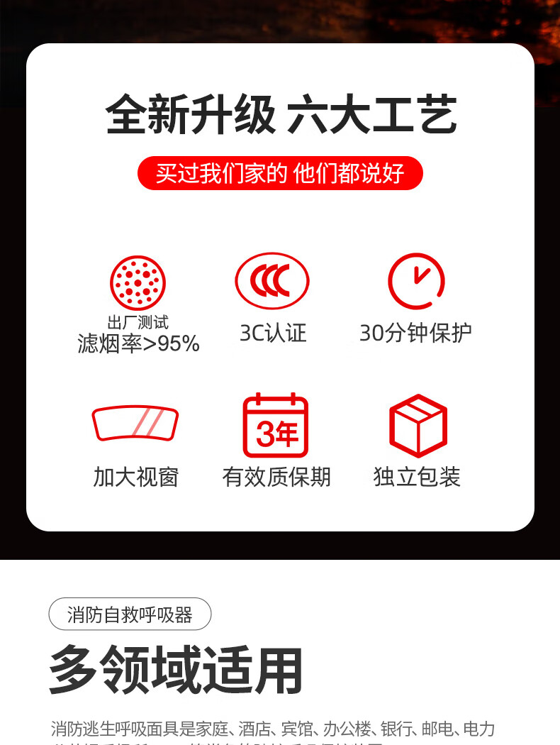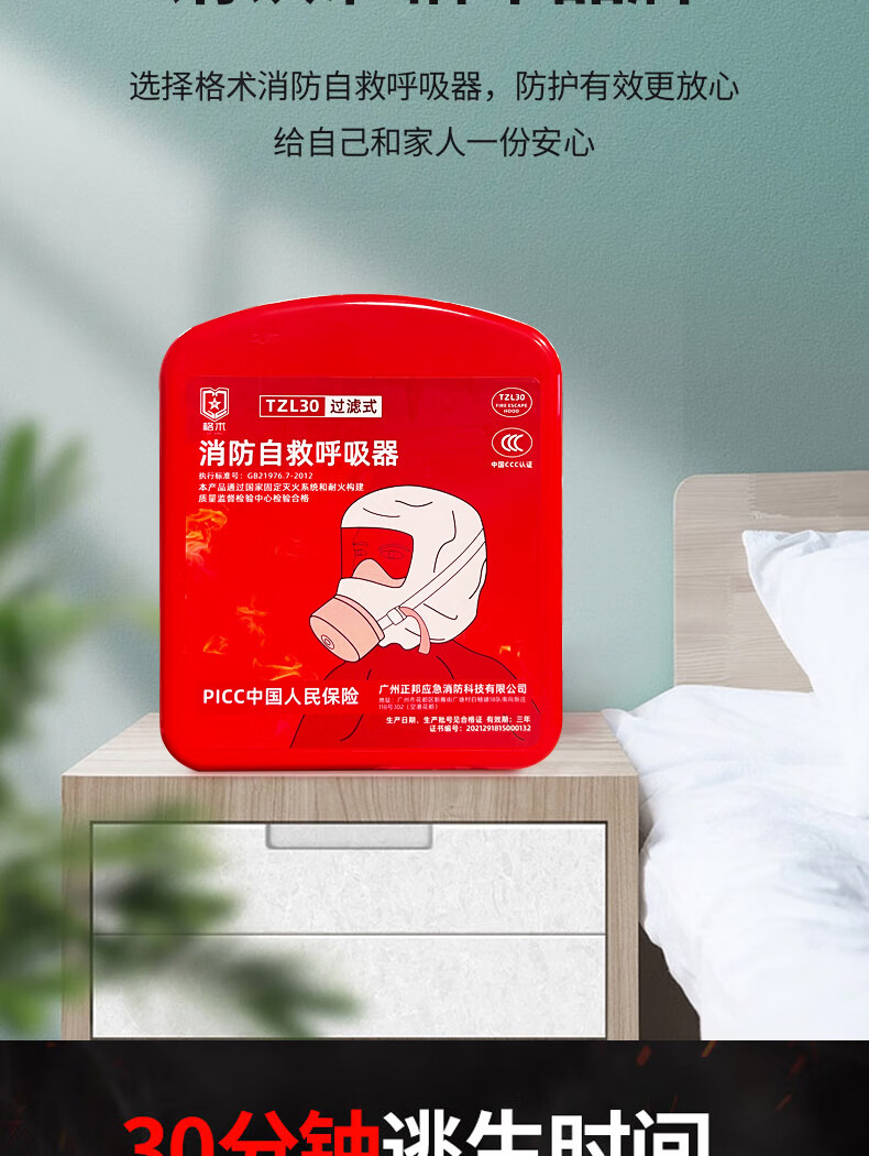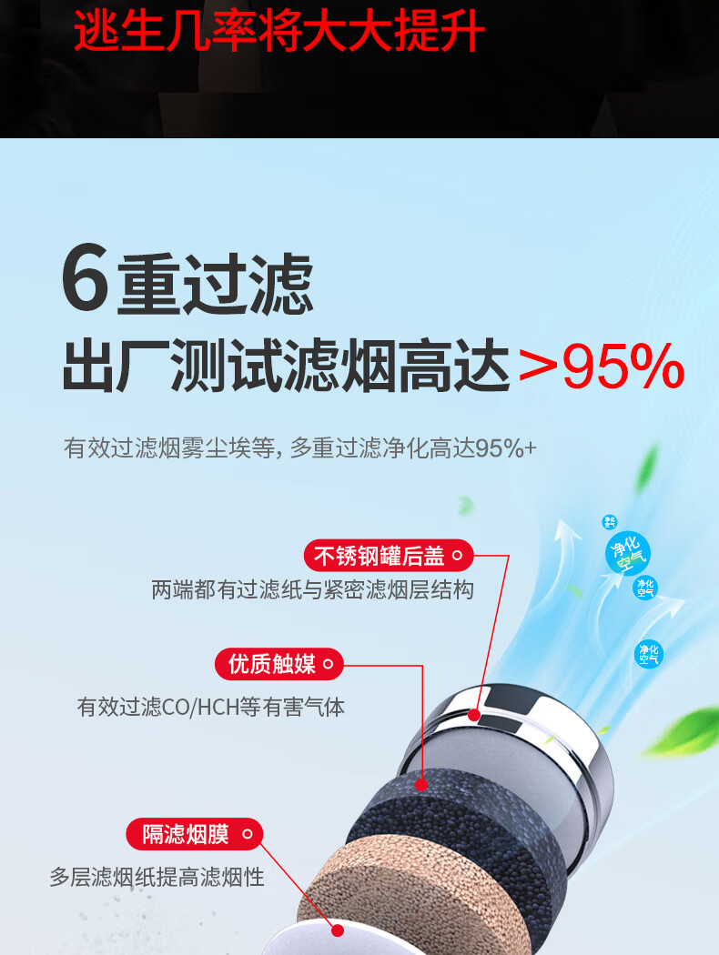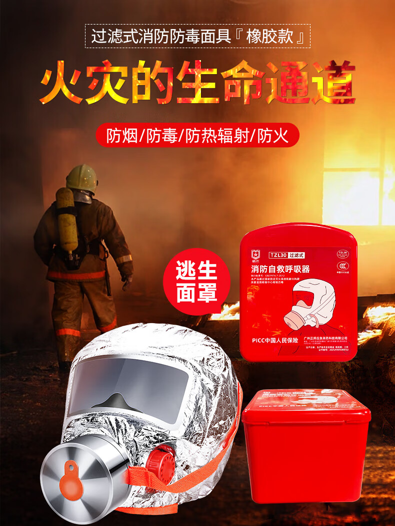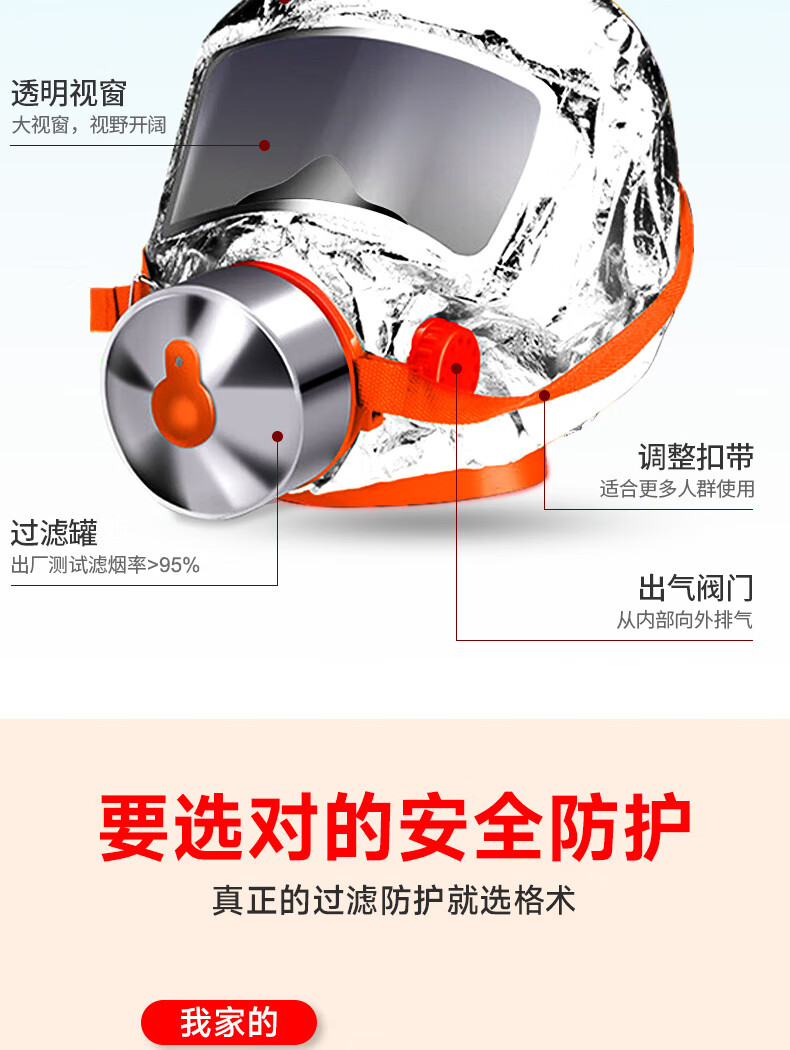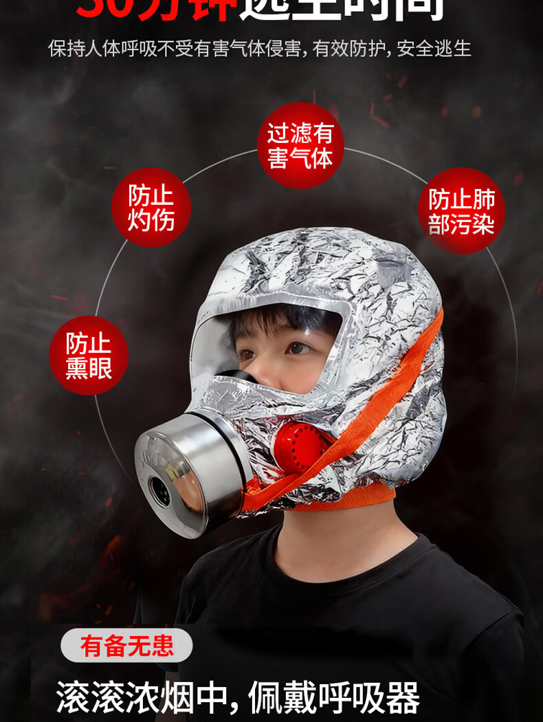 Geshu gas mask fire mask anti-smoke fire mask 3C certified escape filter self-rescue respirator semi-circular style