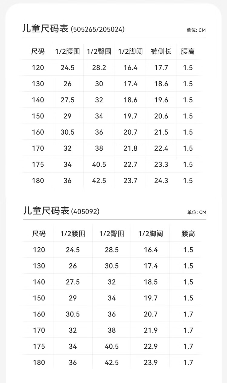 China (cm) 160-165/84-86 165-170 / 88-90 167-172 / 92-96 168-173 / 98-102 170-176 / 106-110