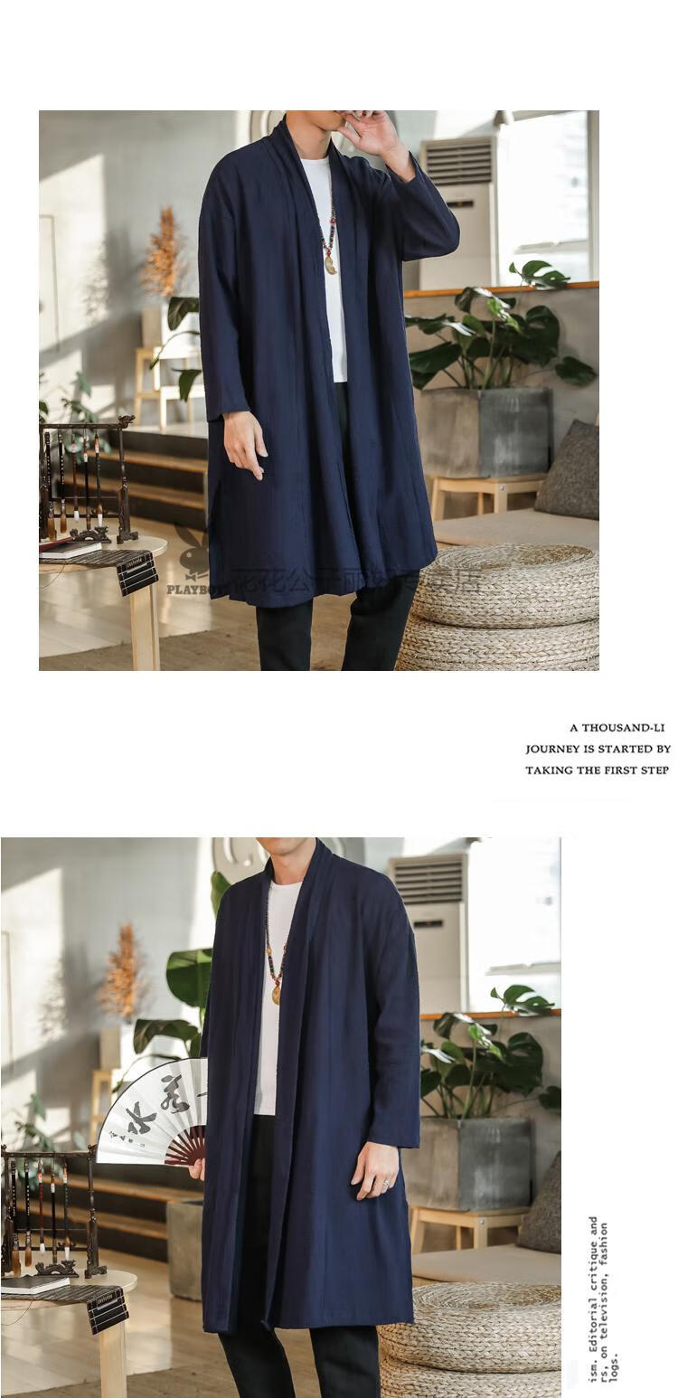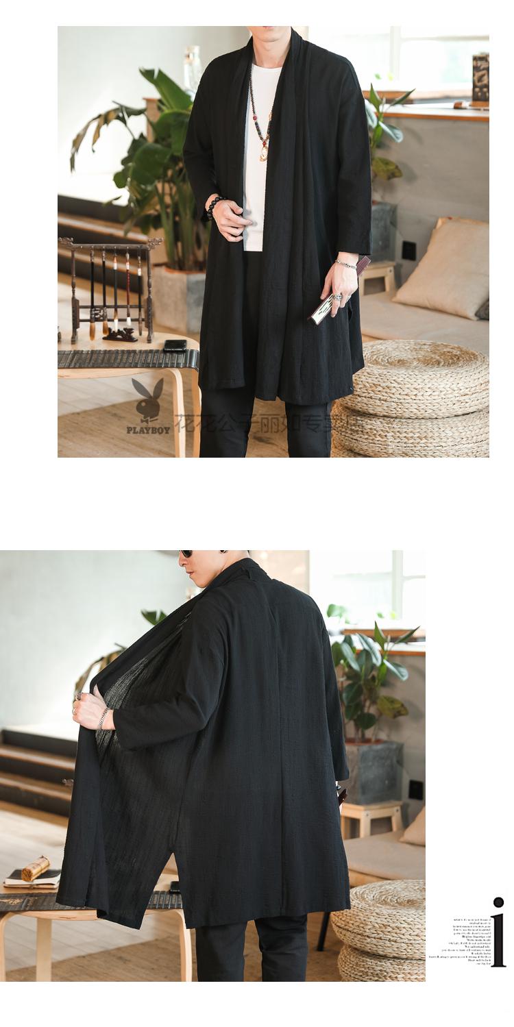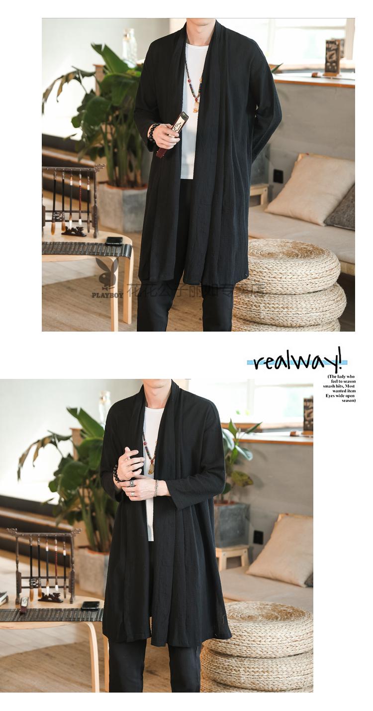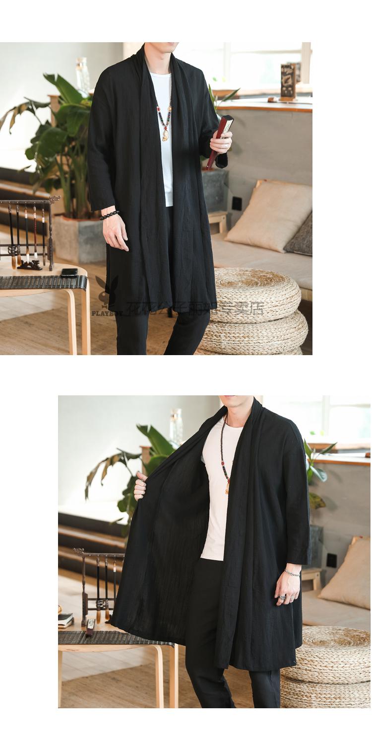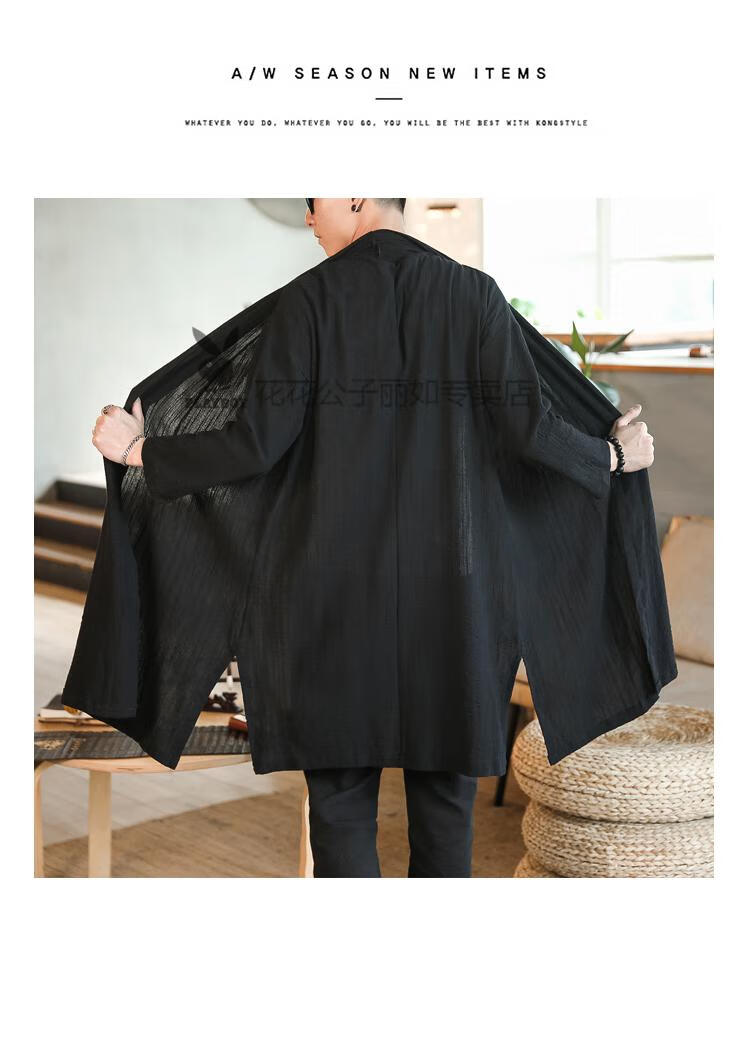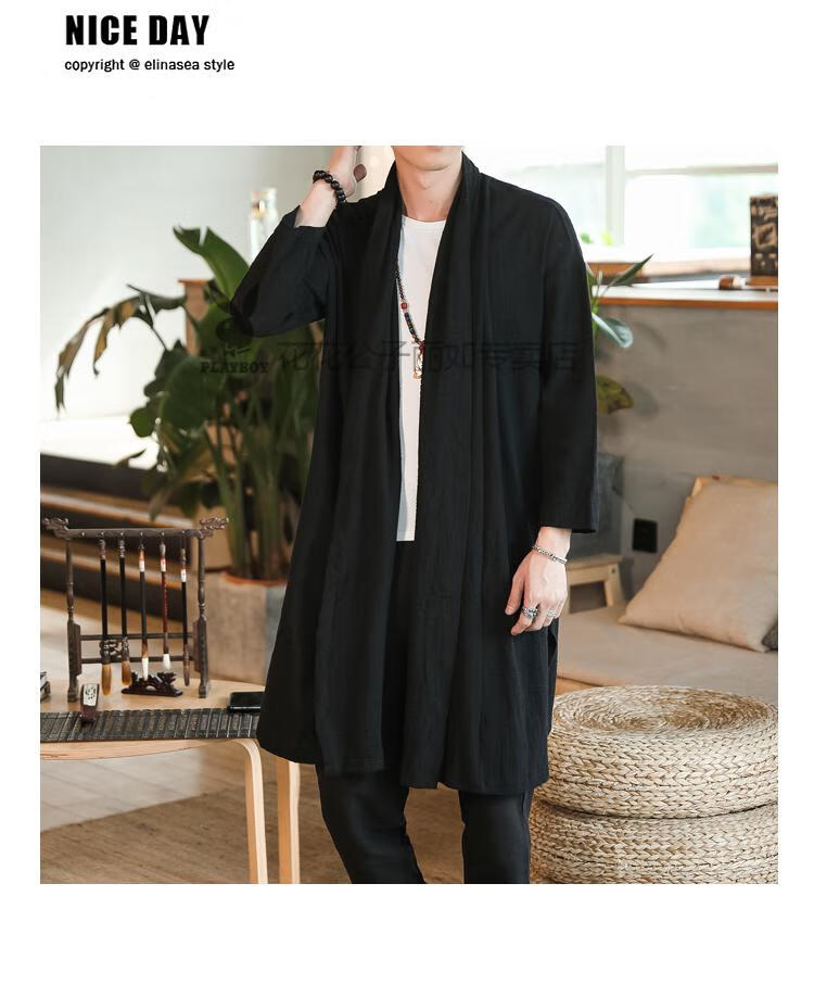 ROMON Chinese Hanfu long cloak youth robe thin Zen style coat cloak retro windbreaker cloak for men black L