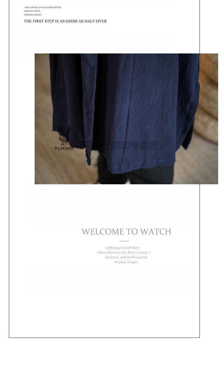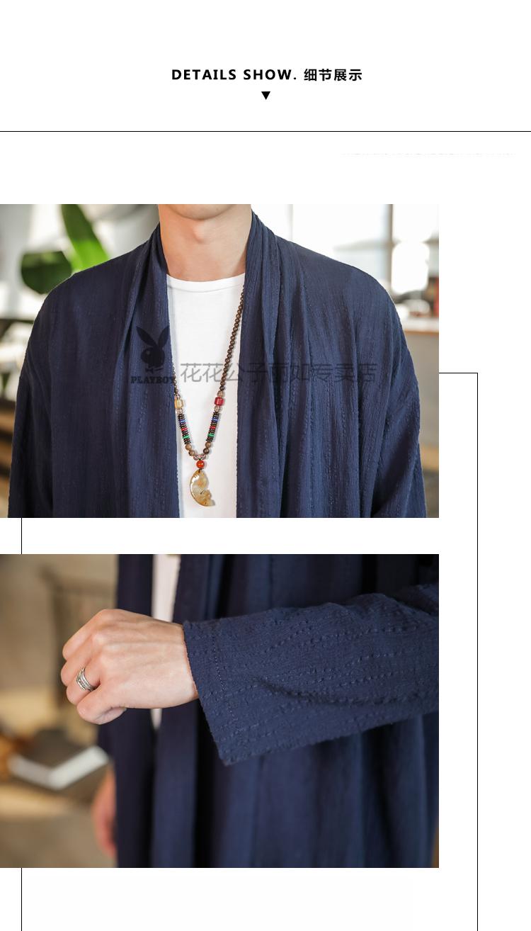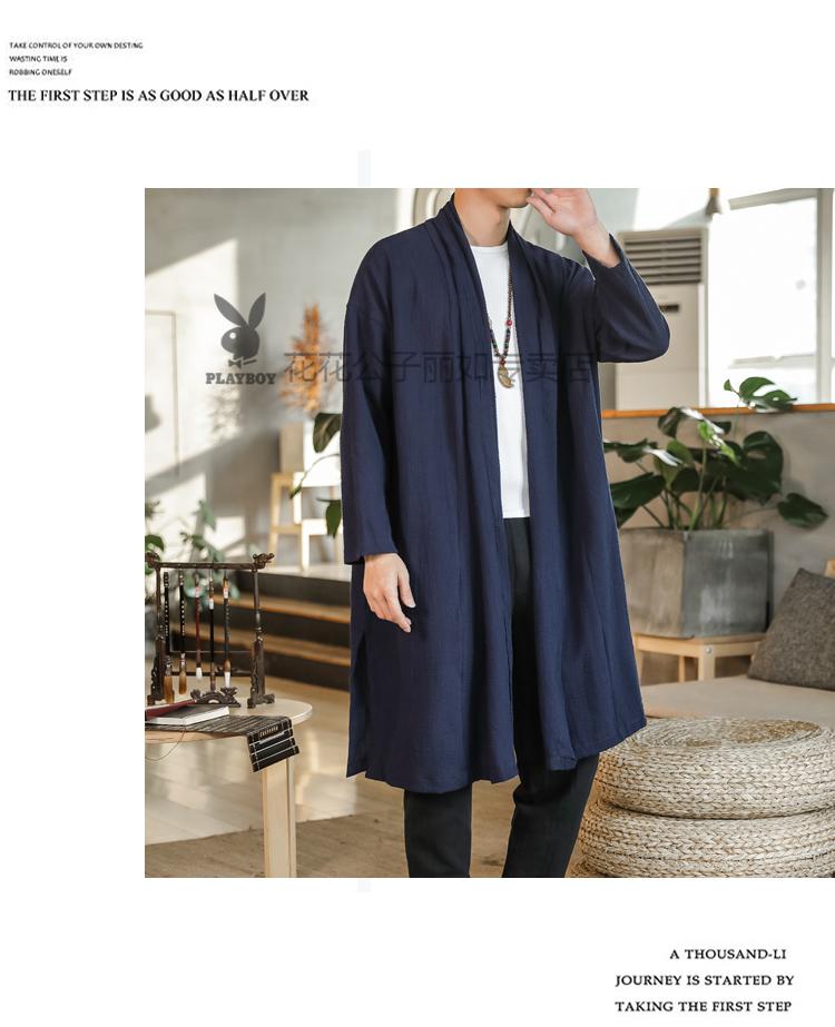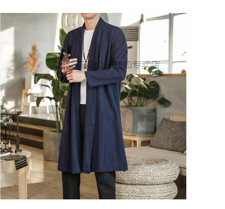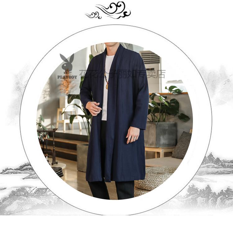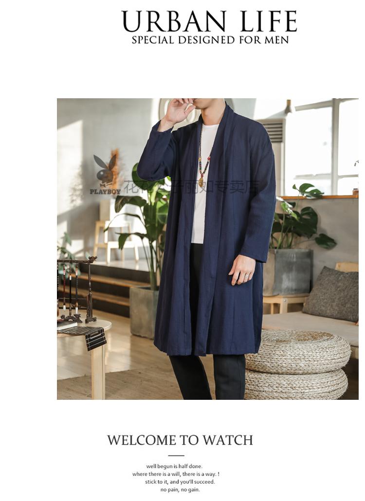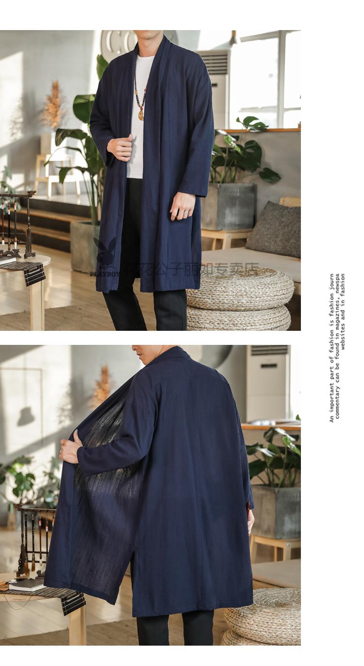ROMON Chinese Hanfu long cloak youth robe thin Zen style coat cloak retro windbreaker cloak for men black L