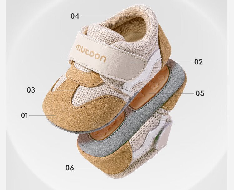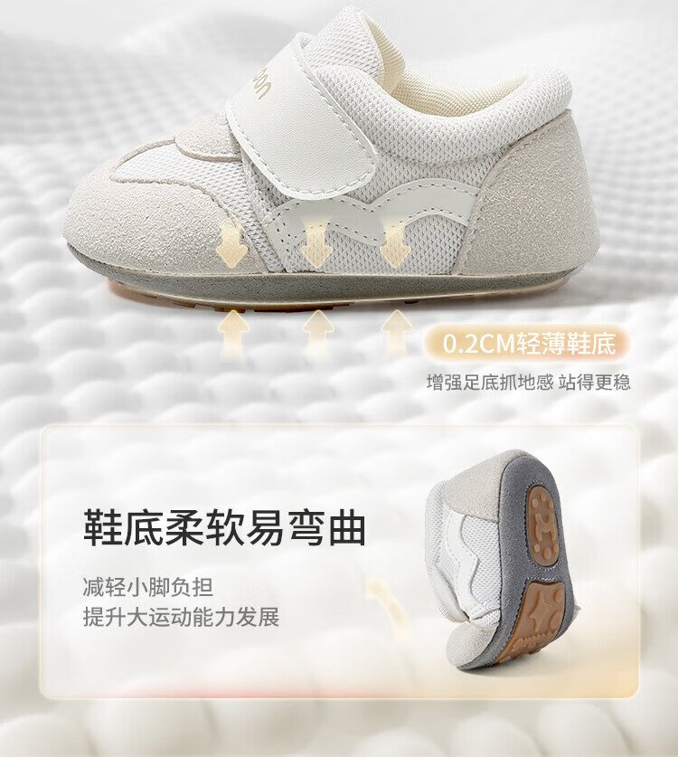 Shepherd's Baby Shoes Spring and Autumn Breathable Mesh Soft Cuddle Shoes Soft Sole Retro Toddler Shoes Cream Gray 16