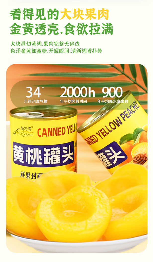 Mexien fresh Dangshan yellow peach canned 425g*6 cans self-operated authentic sugar water baked fruit canned snacks