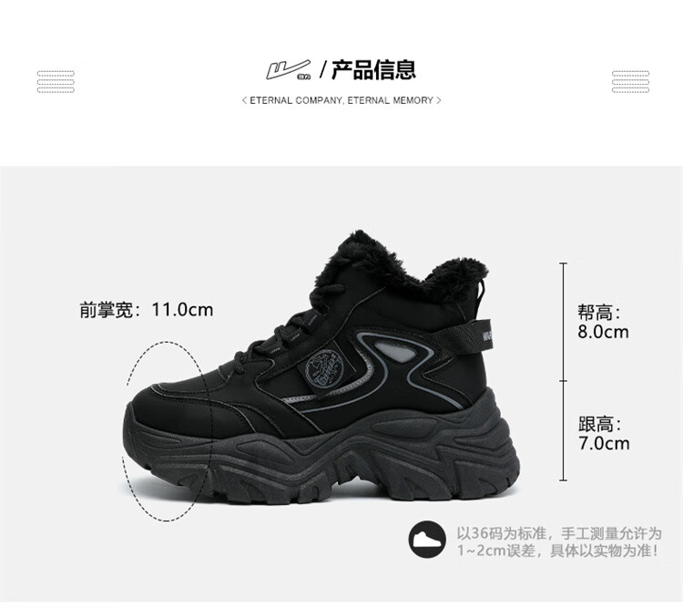 Pull back snow boots women's shoes plus velvet and thickening 2025 winter new style thick soles to increase the cold and warm cotton shoes black 38