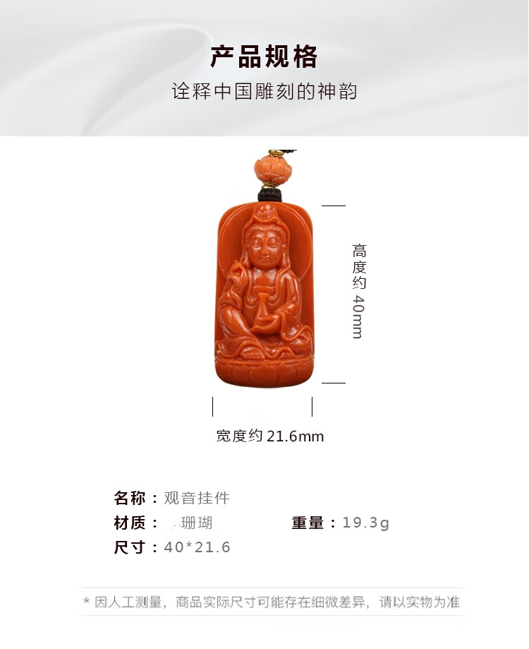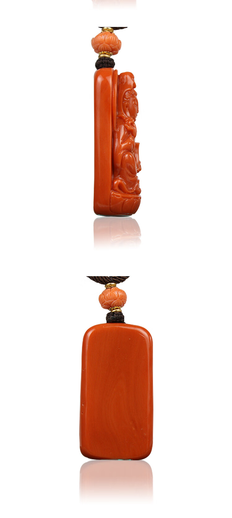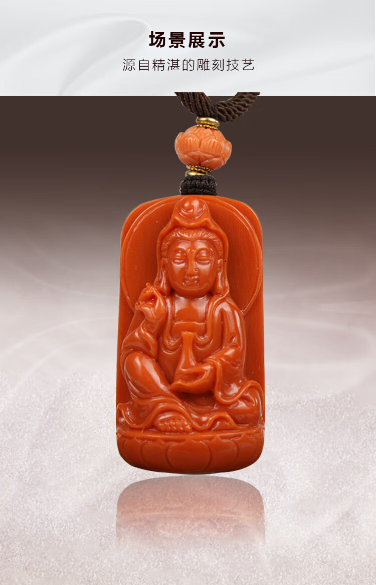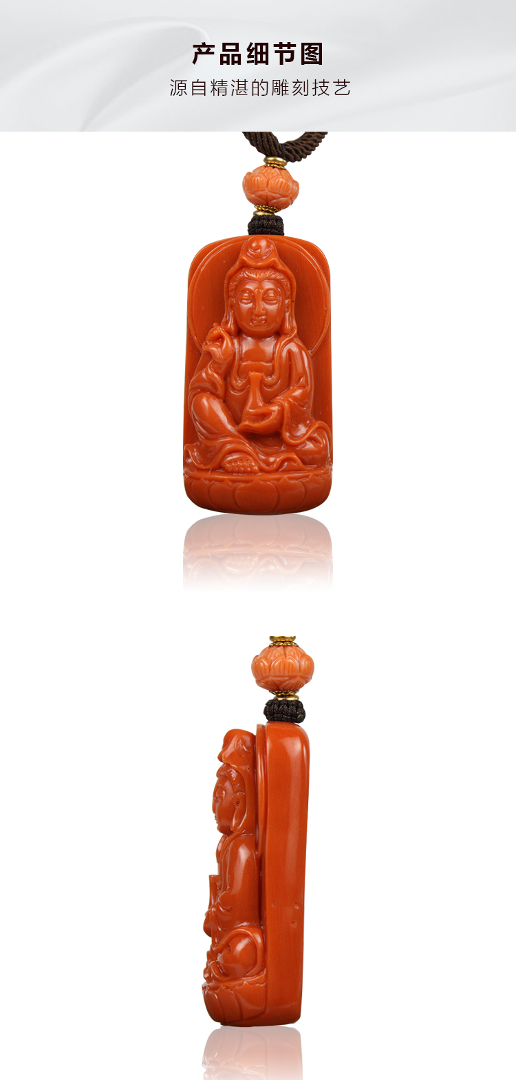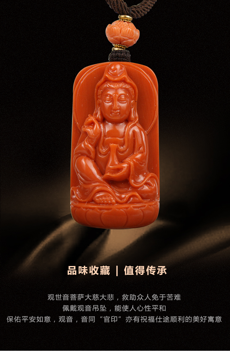 Classic natural deep sea coral organic gemstone exquisitely carved Guanyin pendant