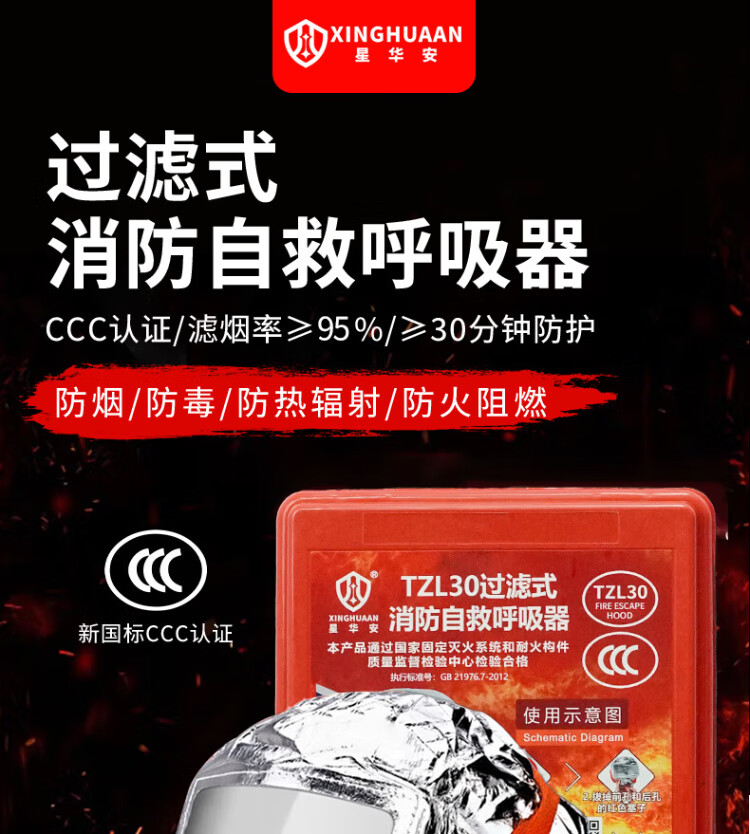 Xinghuaan TZL30 gas mask fire mask fire and smoke mask fire escape filter self-rescue respirator
