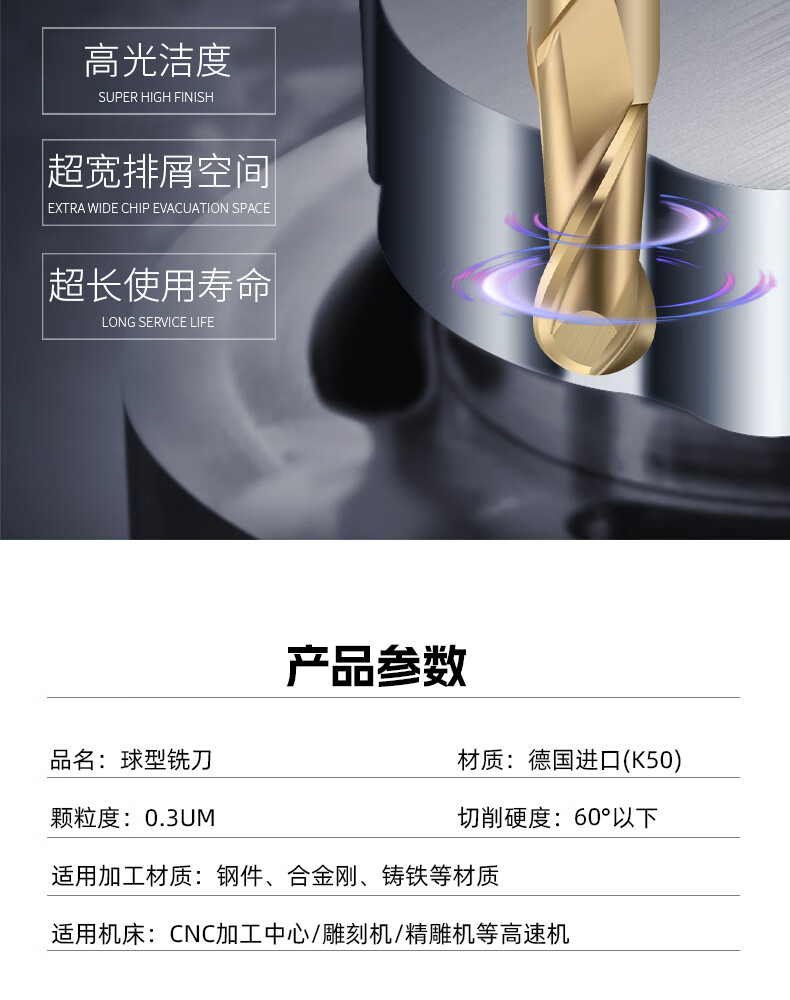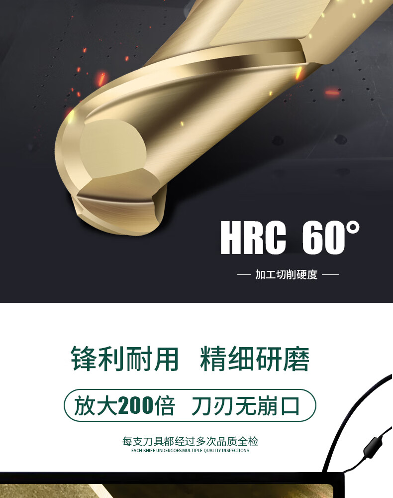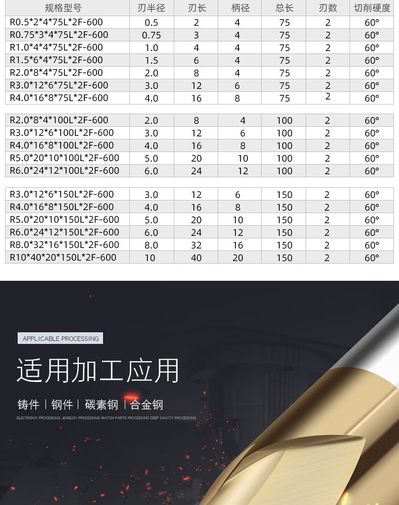 60 degree 2-edge tungsten steel ball end mill extended spherical ball cutter R0.5 2.5 3 4 5 6 steel parts alloy steel cast iron R4*16*8*60*2F*60S steel
