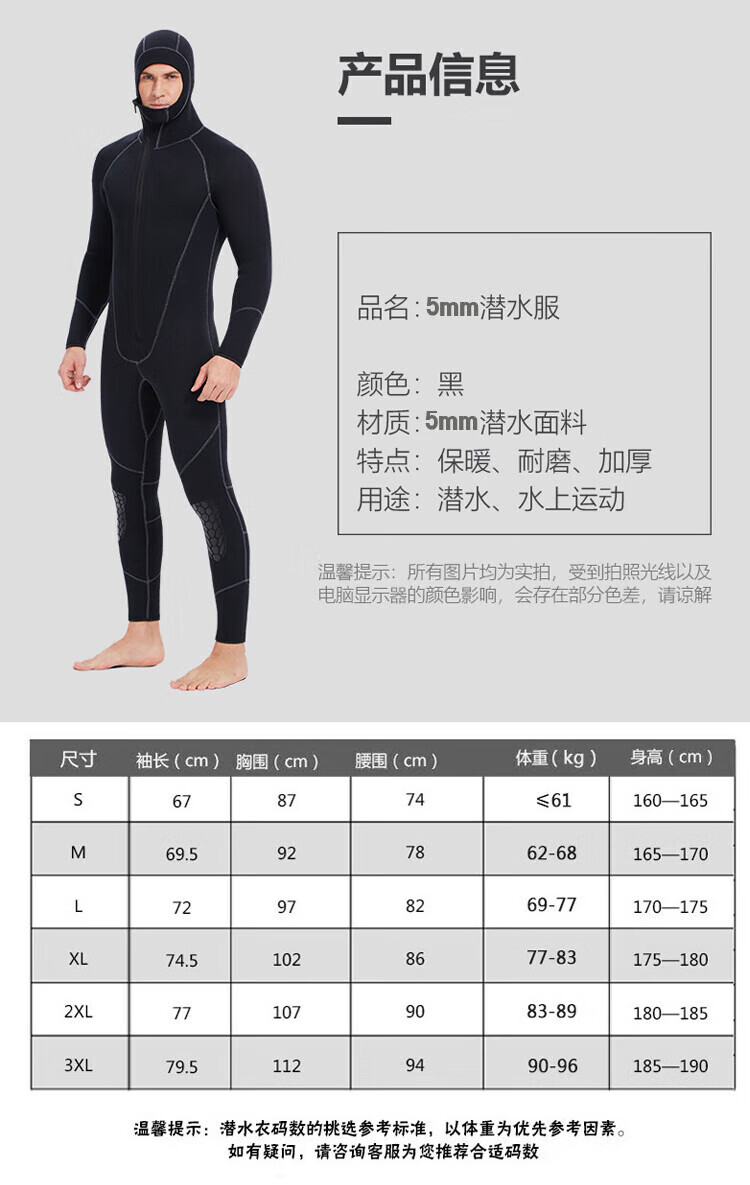 Jingyong 3mm wetsuit, men's warm and cold-proof wet winter swimming one-piece snorkeling and surfing suit (please note the size when placing an order)-DZ