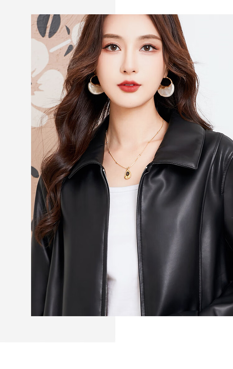 KAISER Kaiser Leather Jacket Women's Genuine Leather Lapel Waist Lambskin Single Leather Jacket Autumn Leather Jacket Women's Brown M
