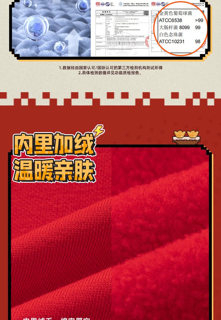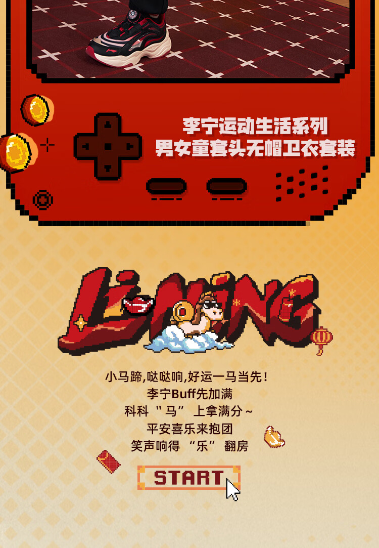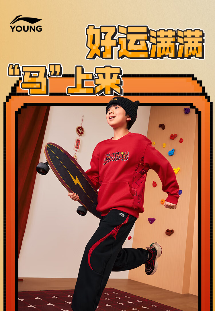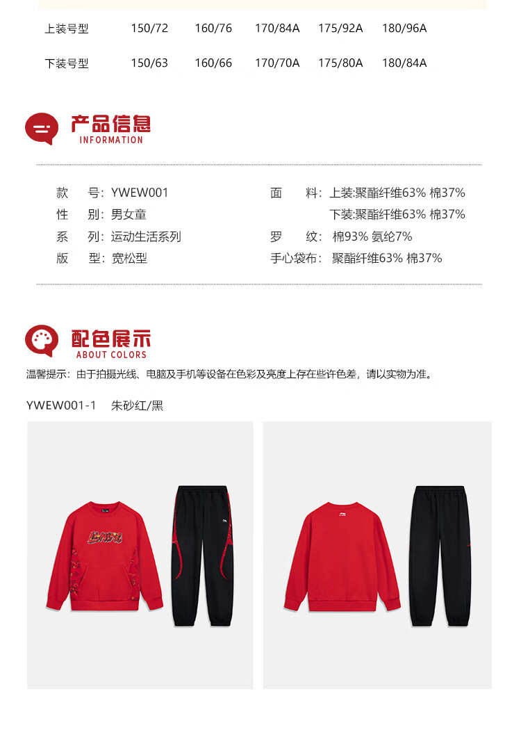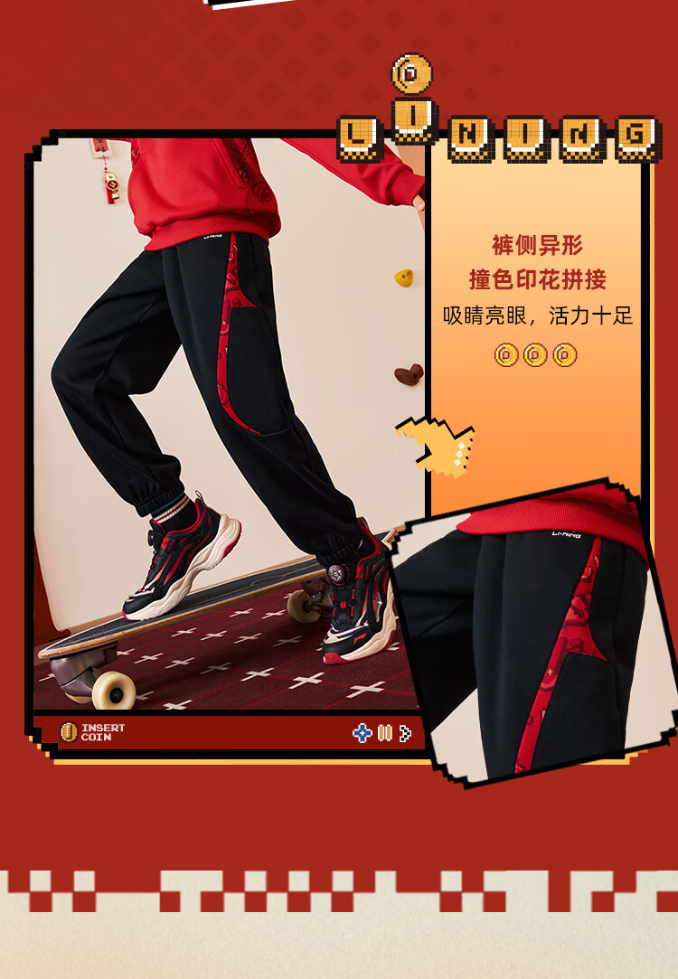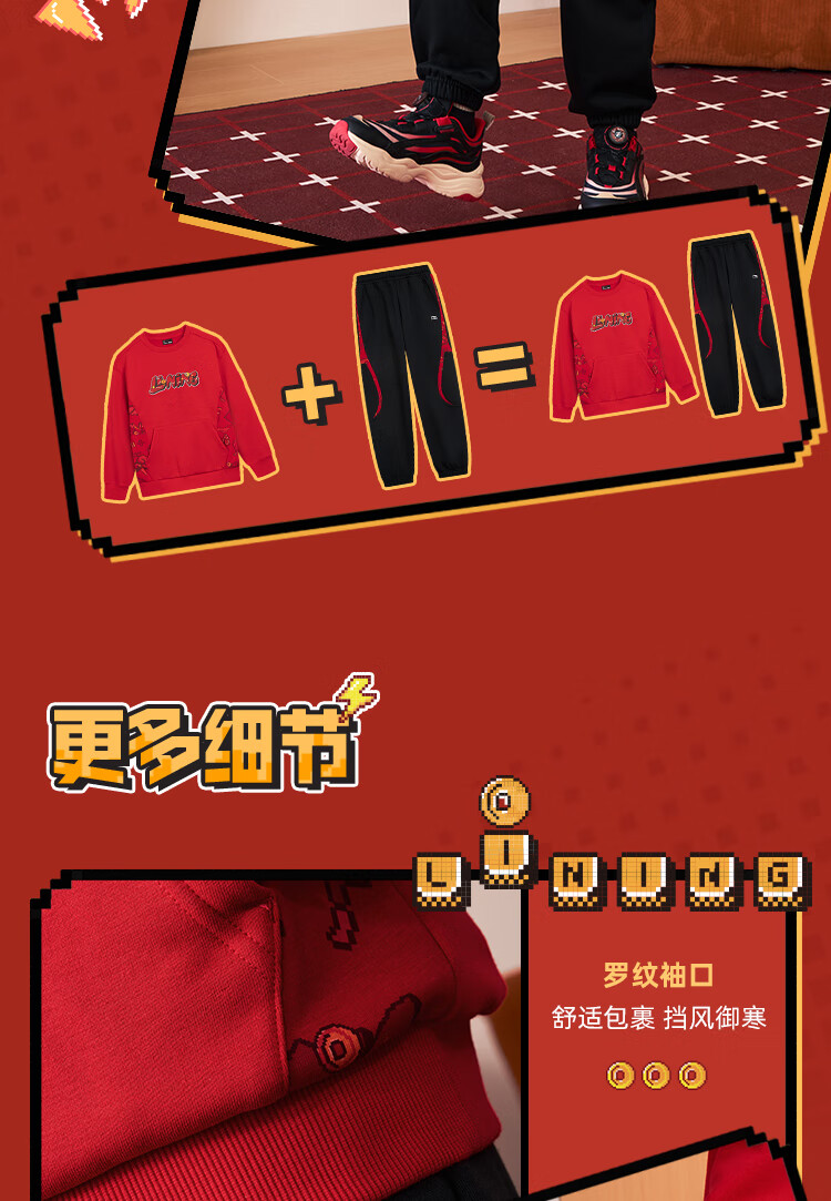 Li Ning (LI-NING) children's clothing children's sports suits for men and women, small and big children, New Year's style velvet antibacterial sweatshirt suit 160YWEW001-1