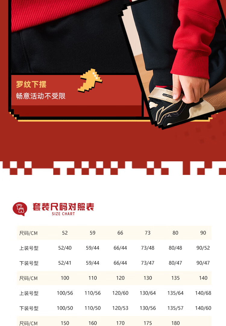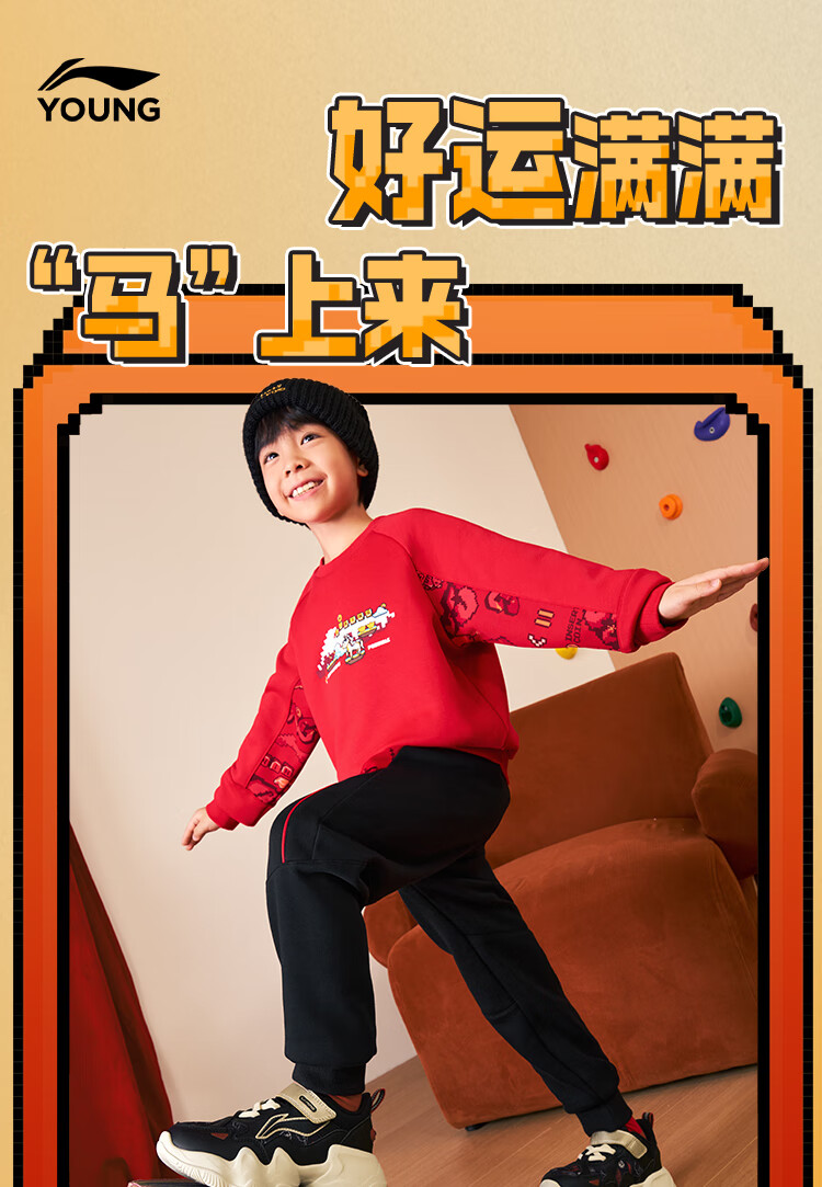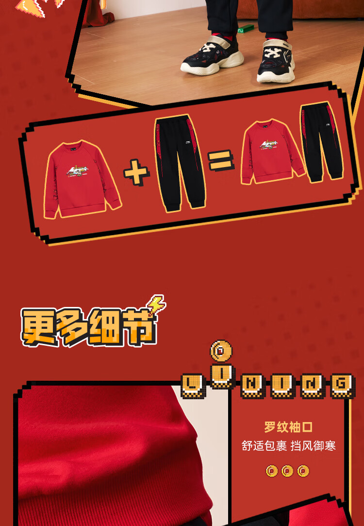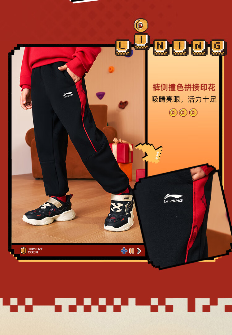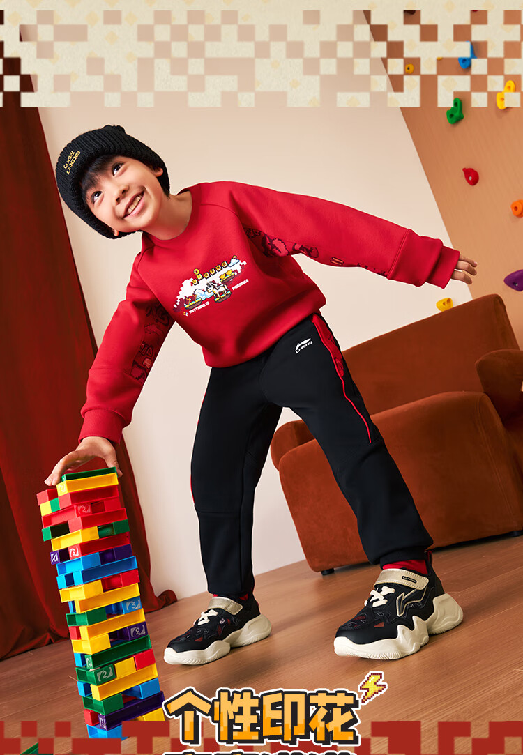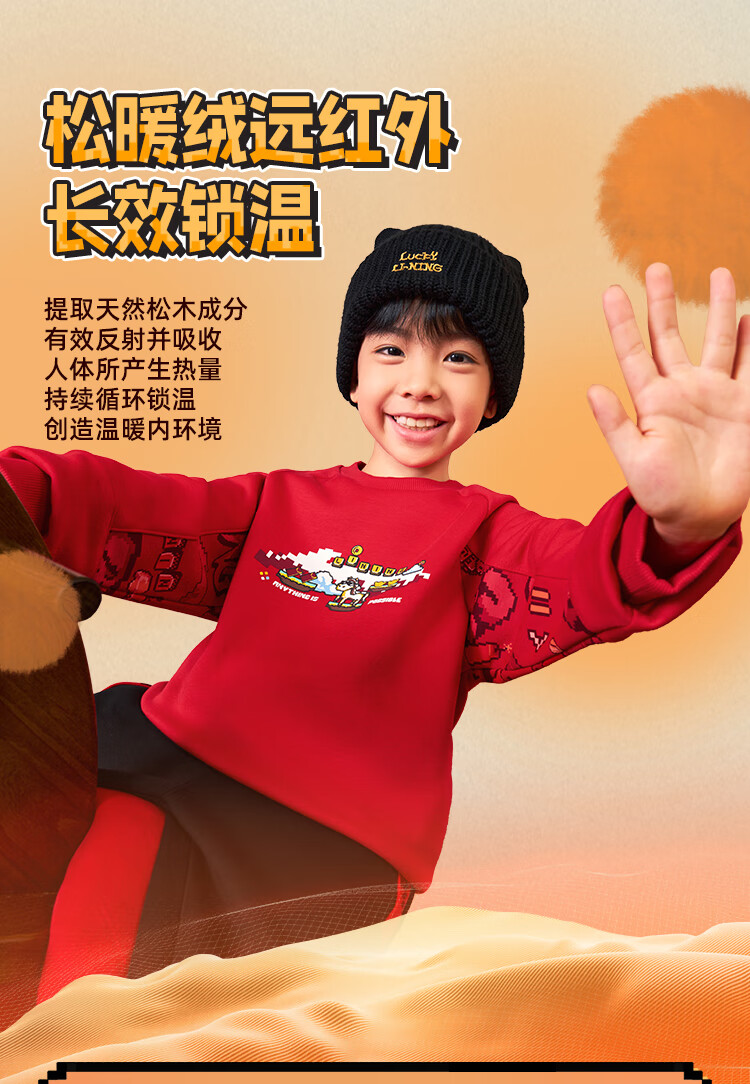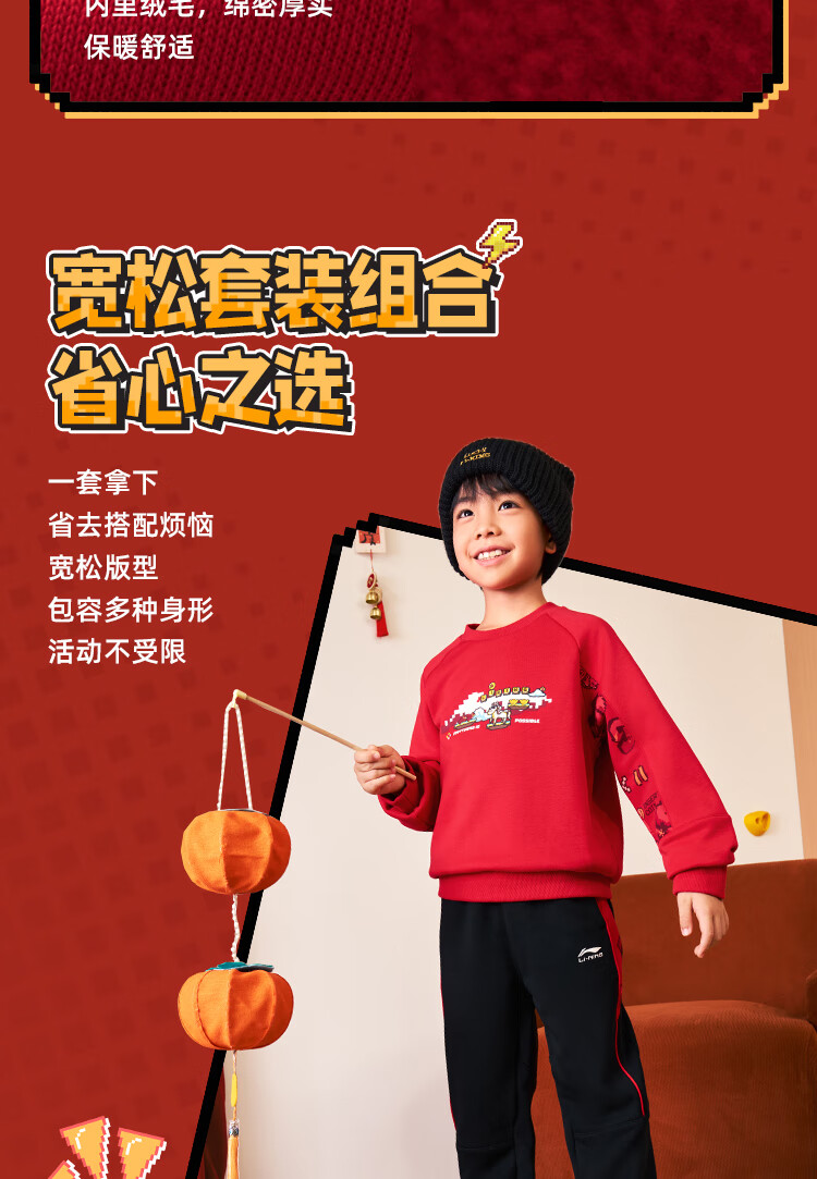 Li Ning (LI-NING) children's clothing children's sports suits for boys and girls New Year's plus velvet warm antibacterial sweatshirt suit 130YWEW005-1